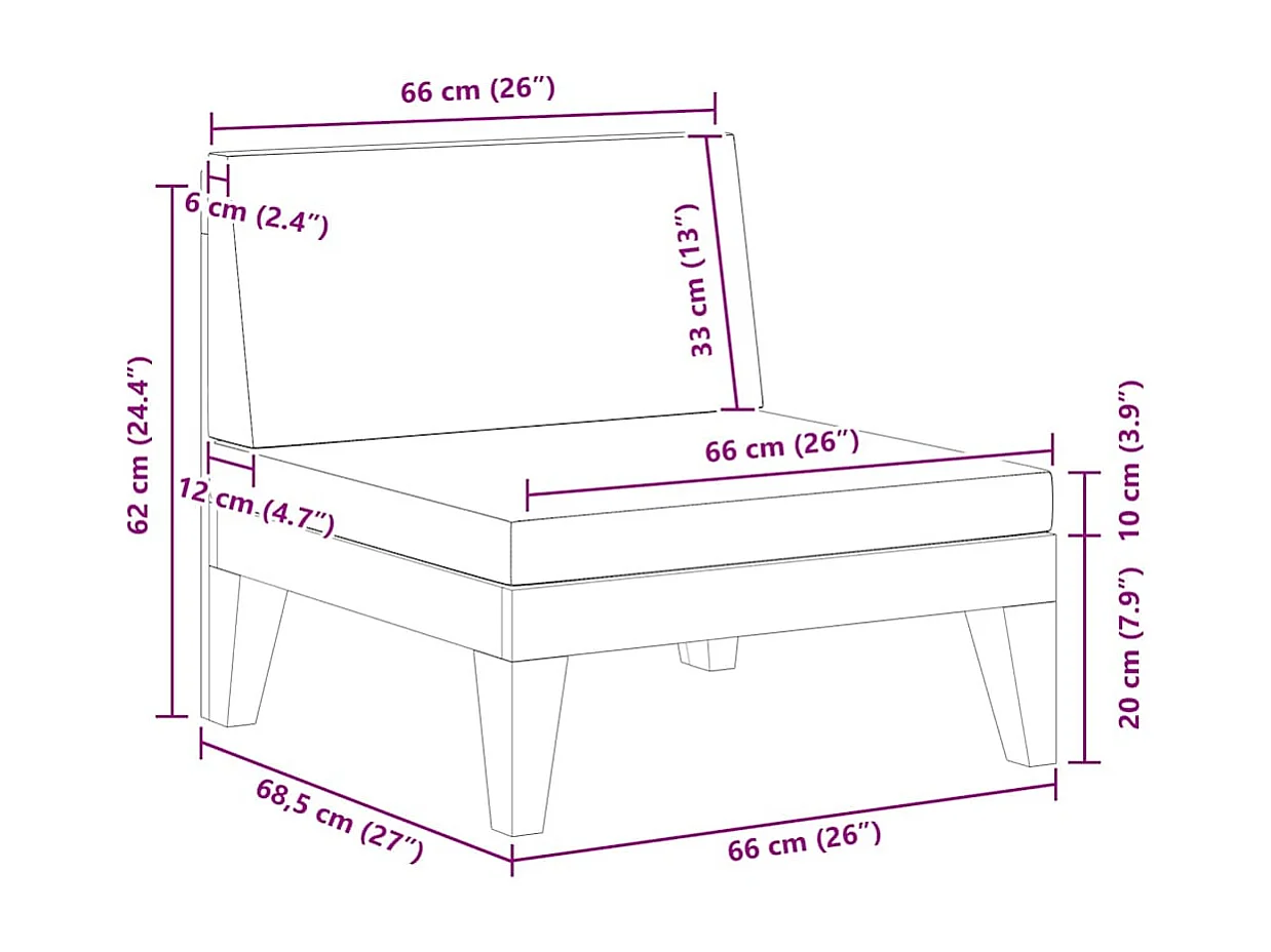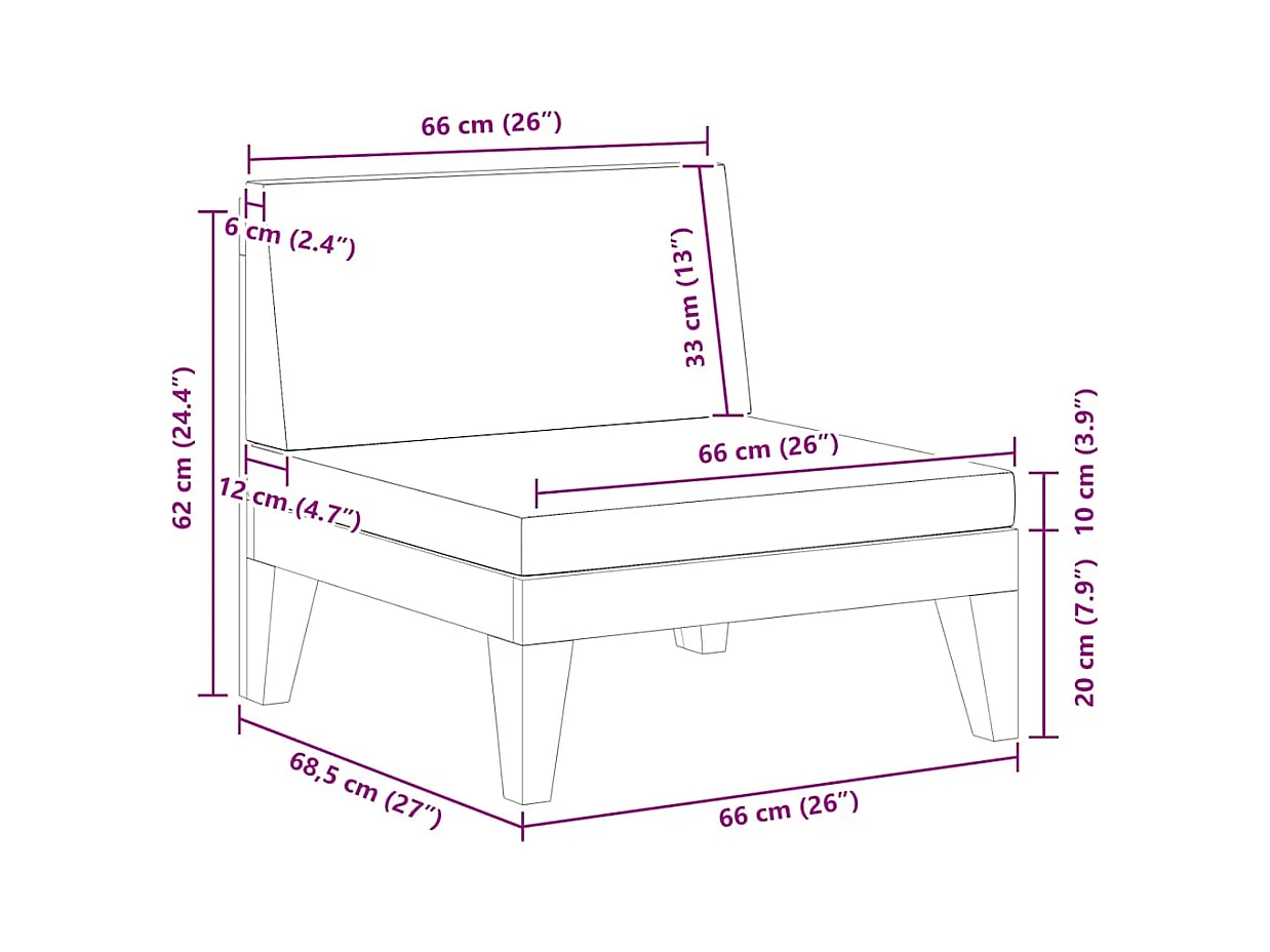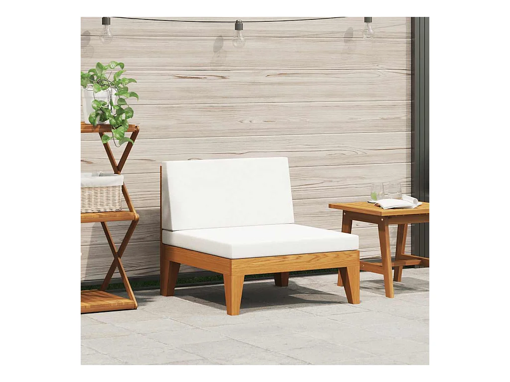 Canapé central sectionnel et coussins blanc crème Bois d'acacia