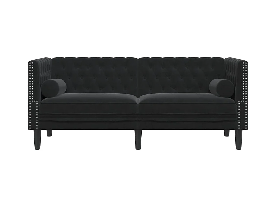 Canapé Chesterfield 2 places | Sofa pour Salon avec traversins noir velours