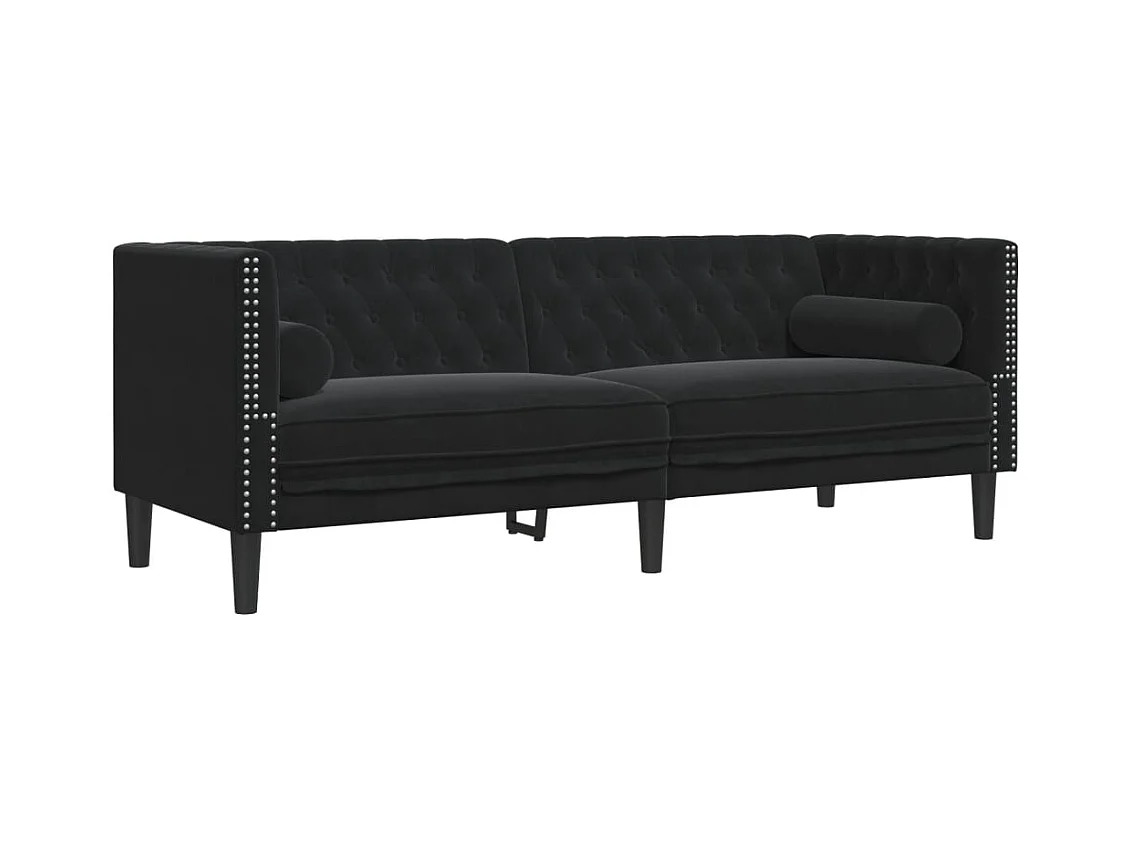 Canapé Chesterfield 3 places | Sofa pour Salon avec traversins noir velours