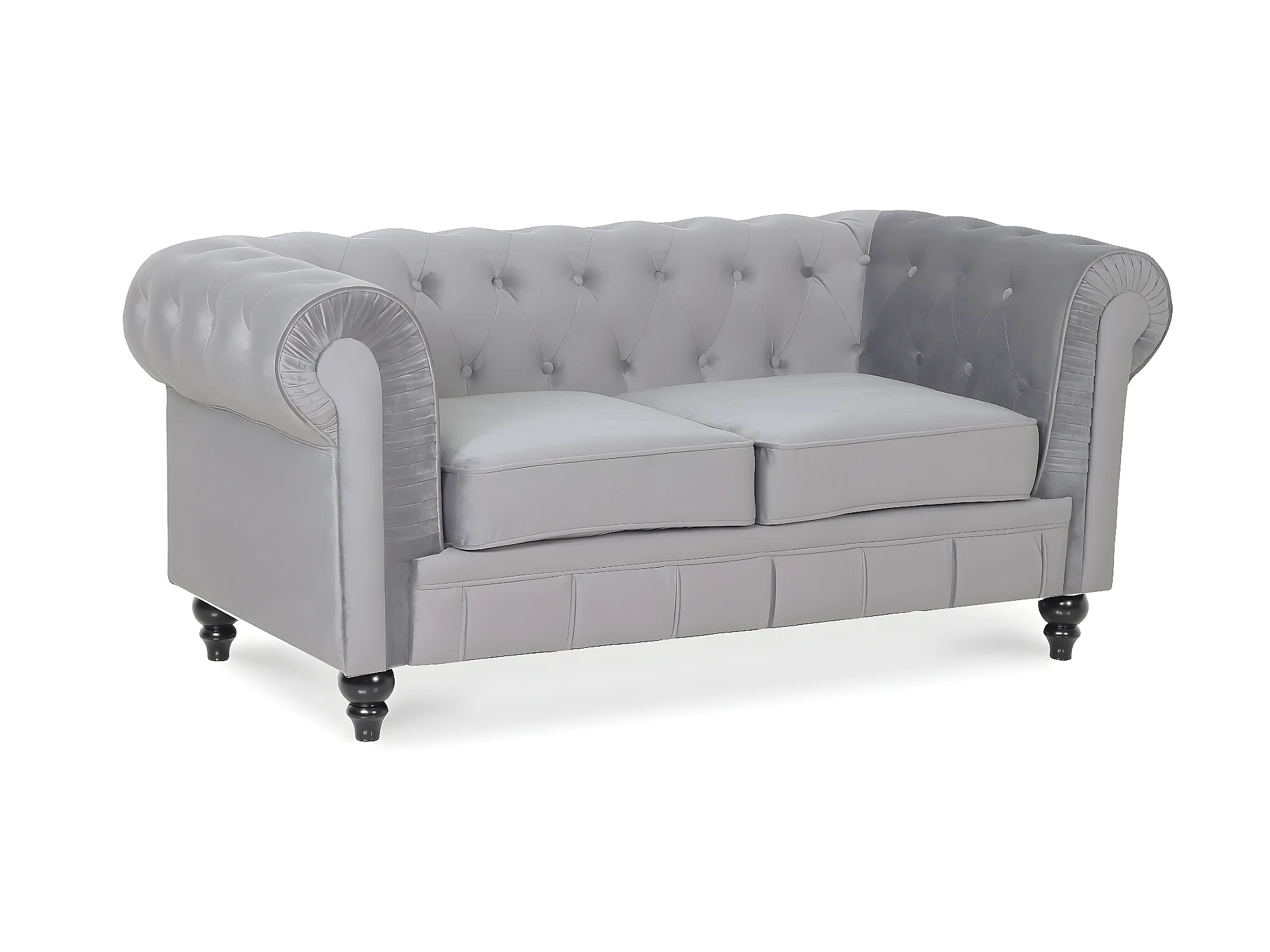 Canapé Chesterfield Velours 2 Places Altesse Argent