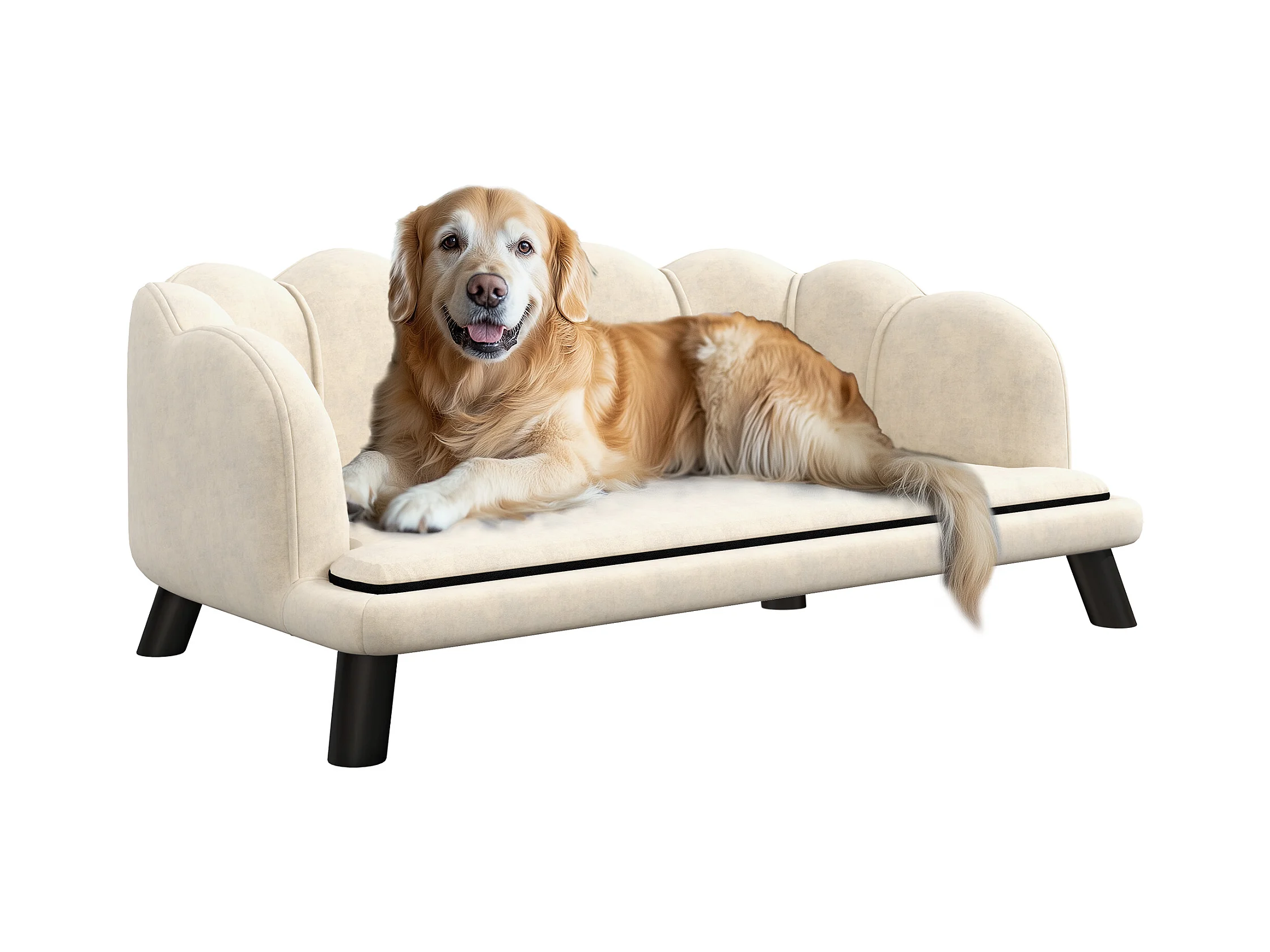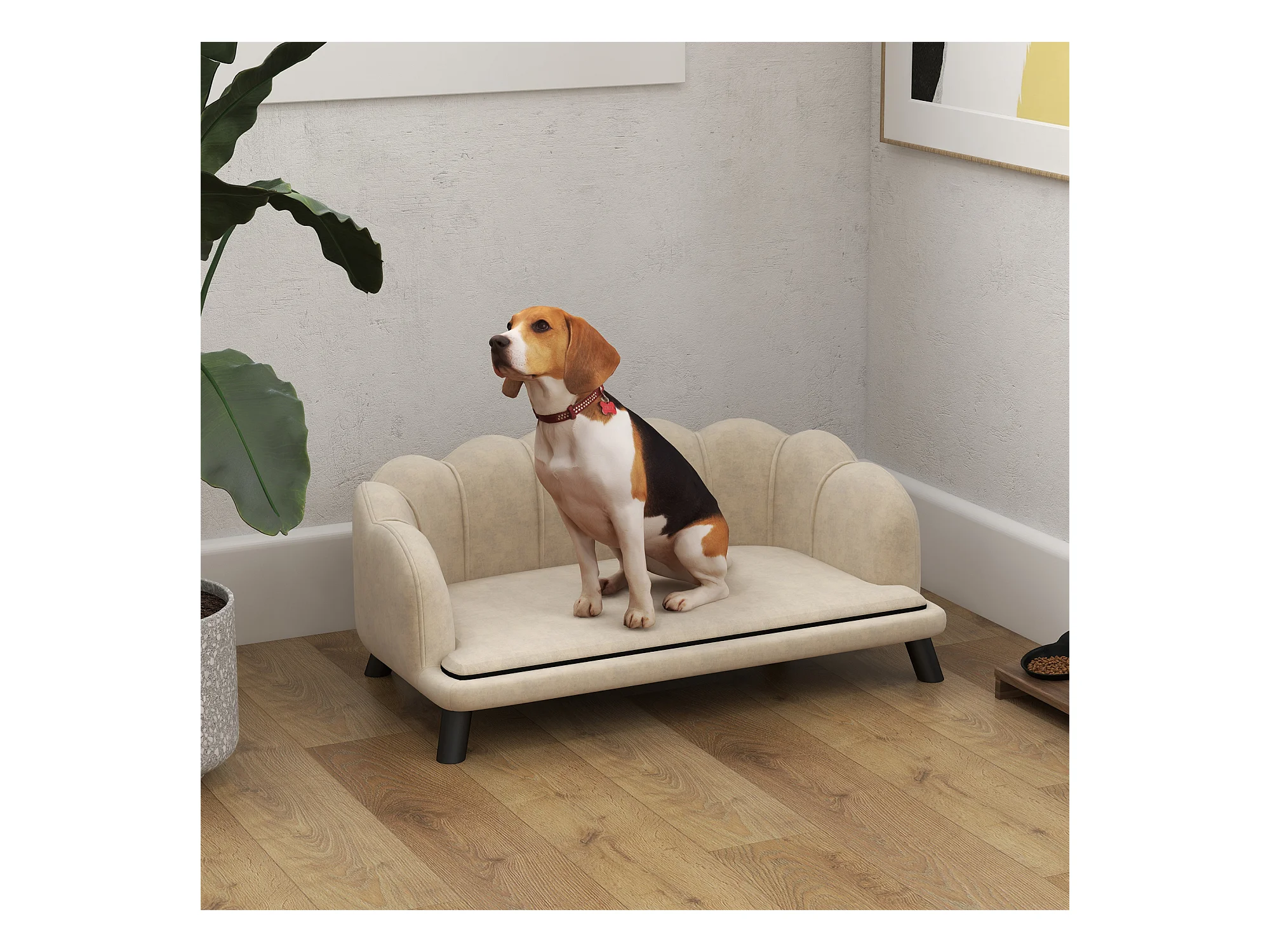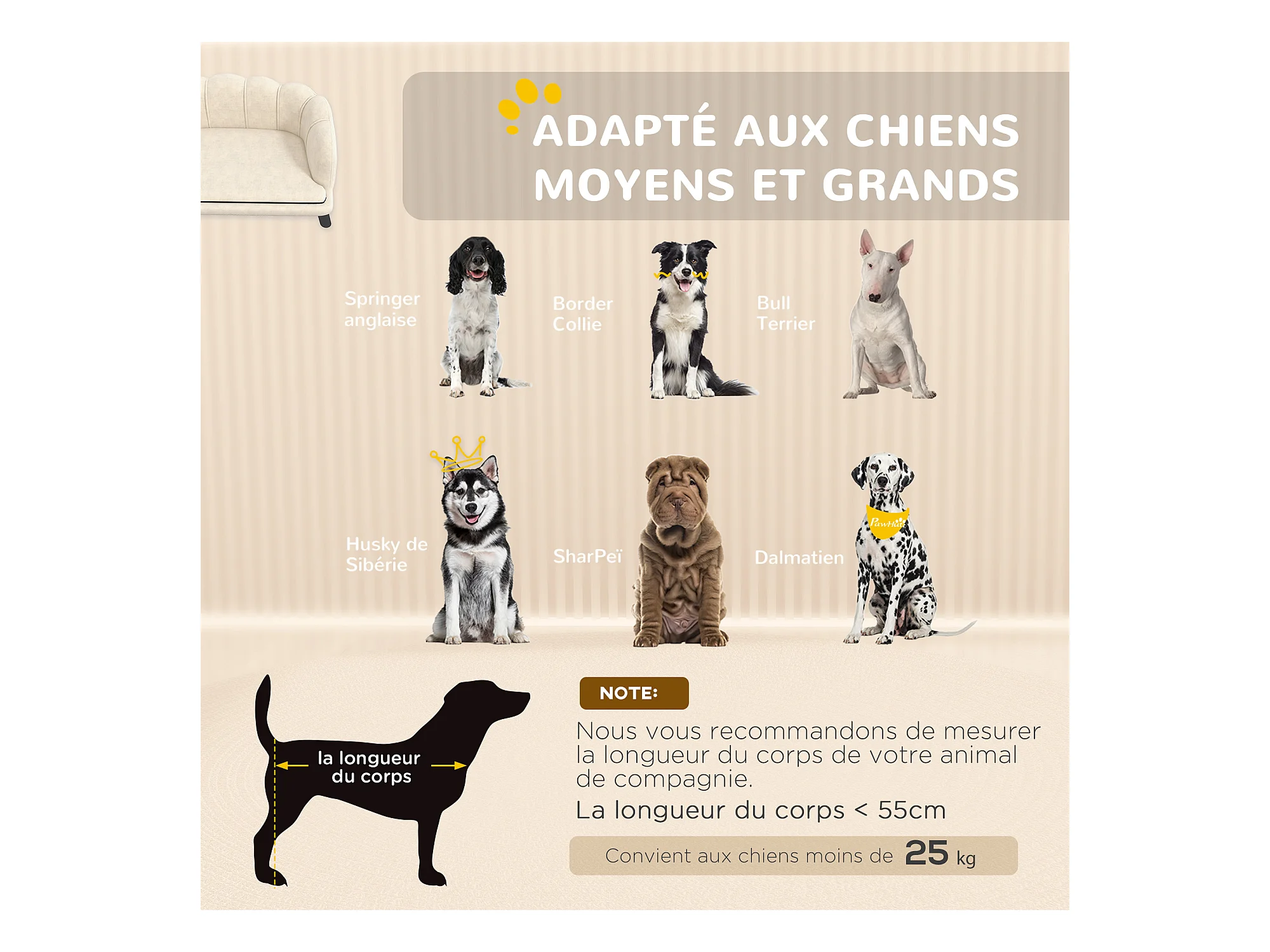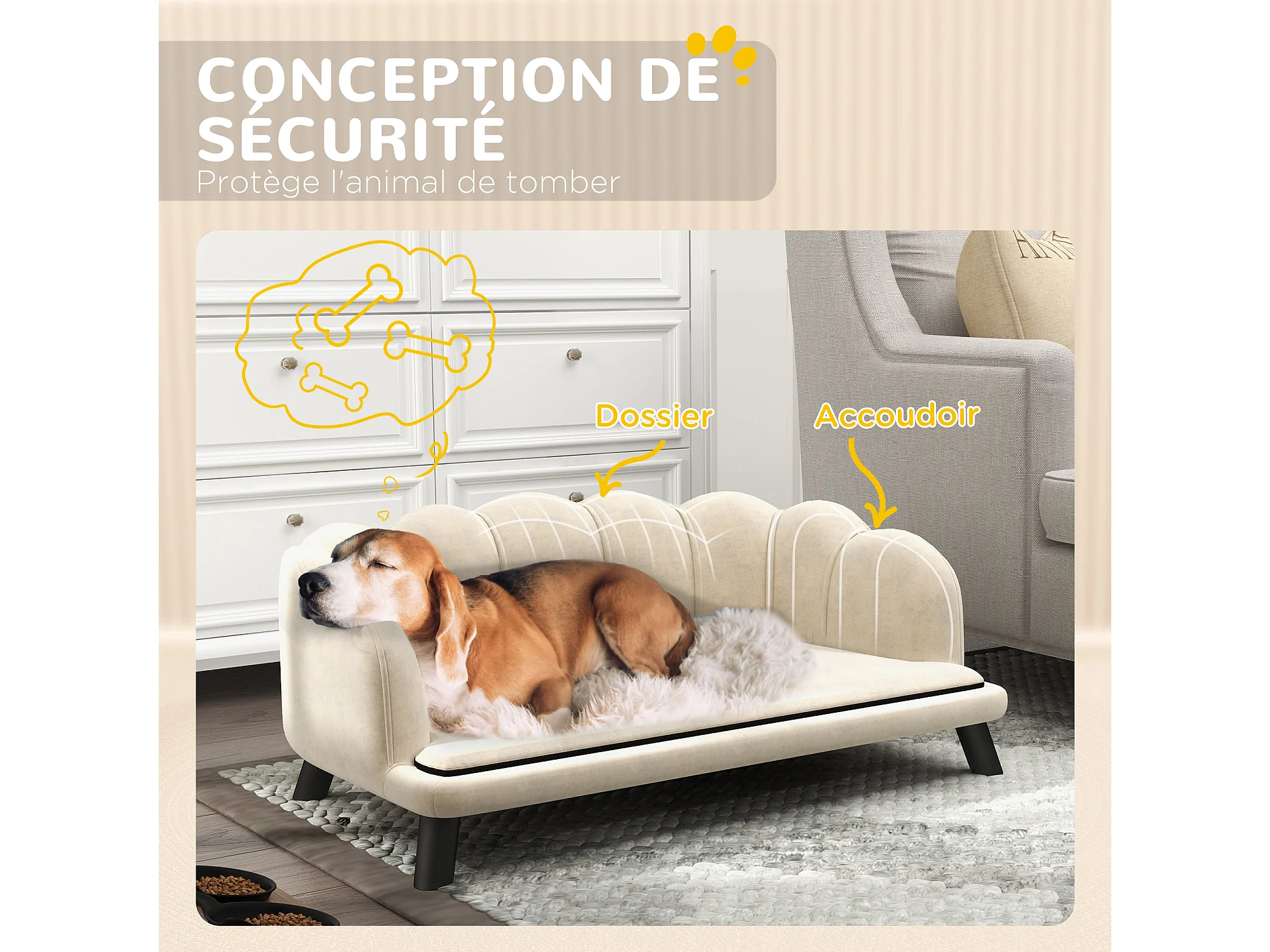 Canapé chien lit pour chien design scandinave coussin moelleux piètement bois dim. 100L x 62l x 32H cm polyester beige