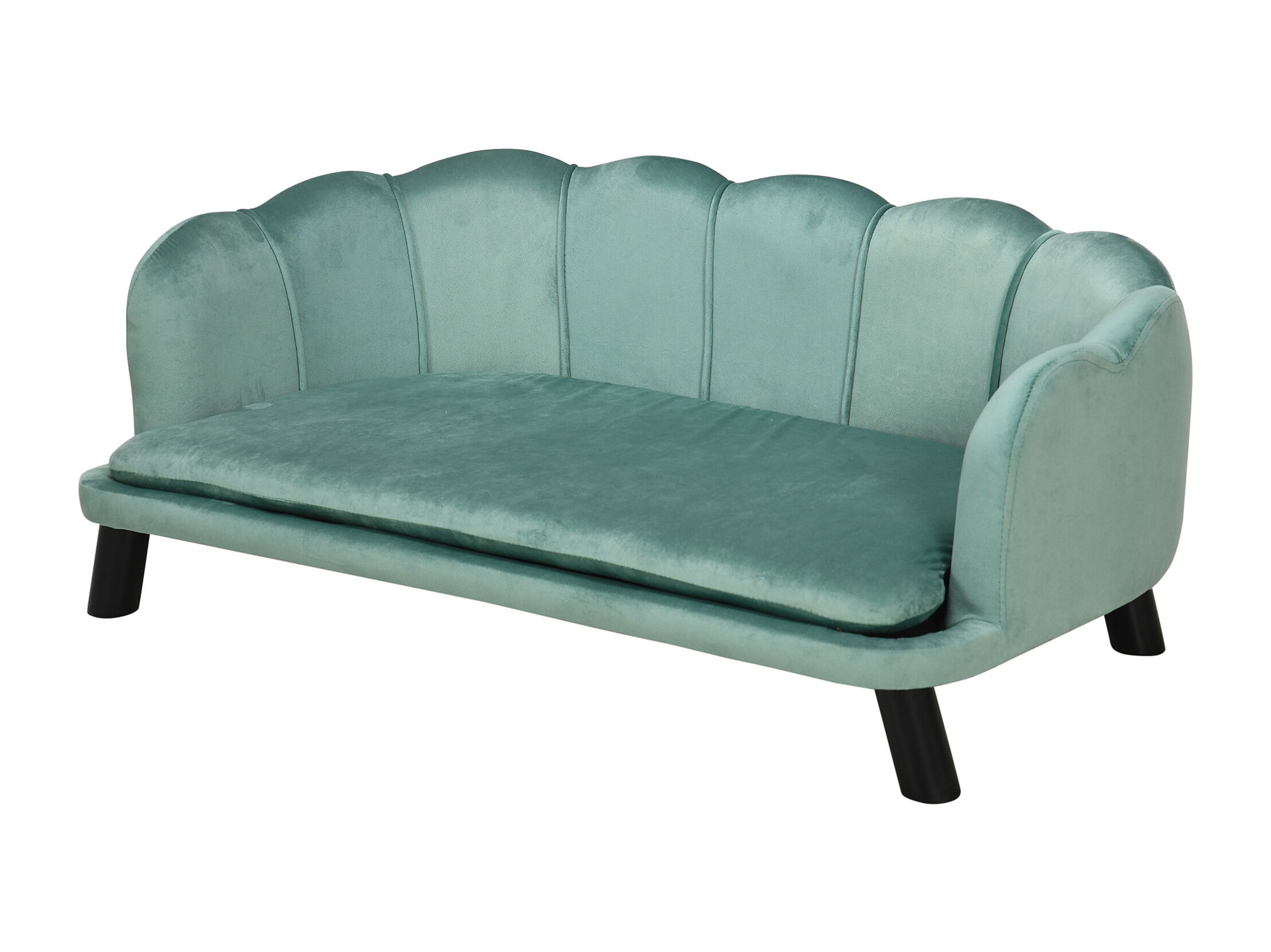 Canapé chien lit pour chien chat design contemporain coquillage dim. 98L x 60l x 35H cm coussin moelleux velours vert