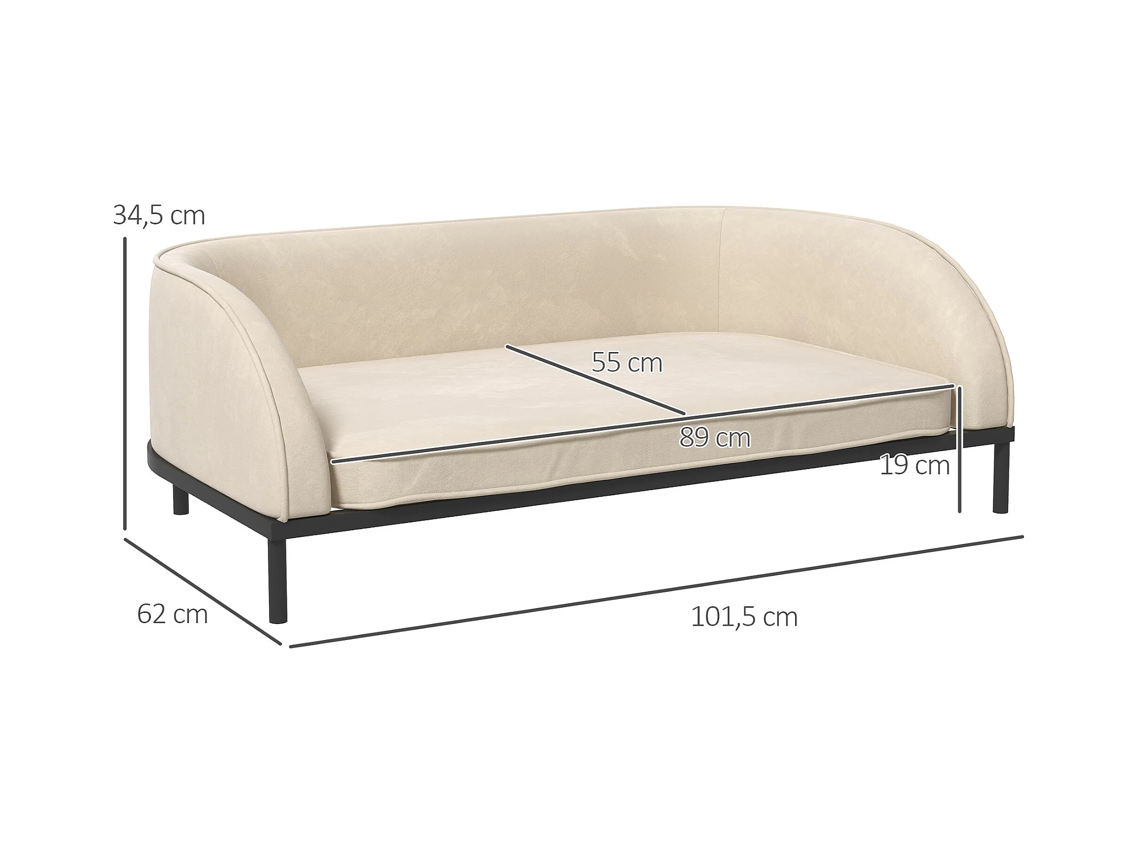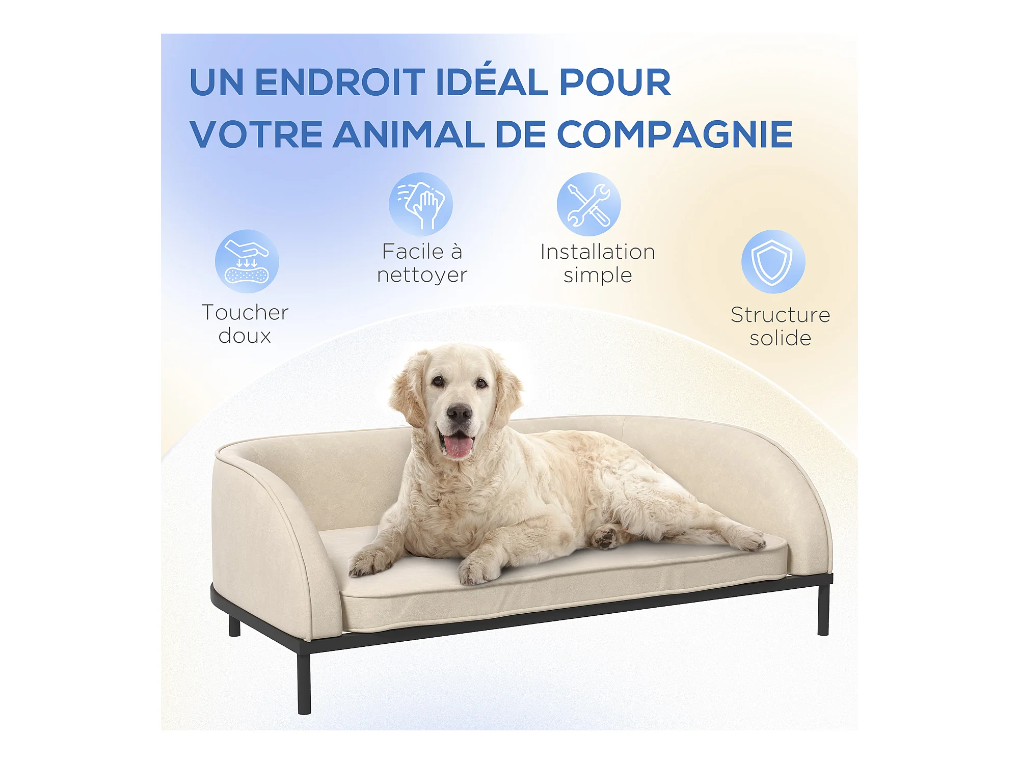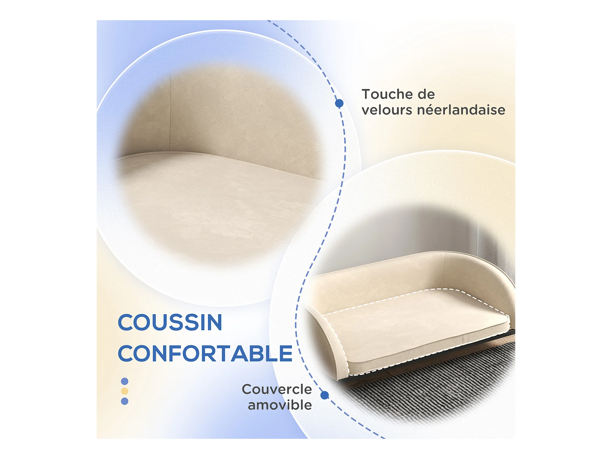 Canapé chien lit pour chien chat design contemporain dim. 101L x 62P x 34H cm coussin moelleux velours beige
