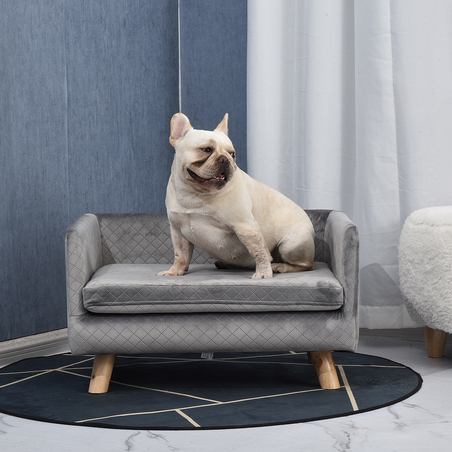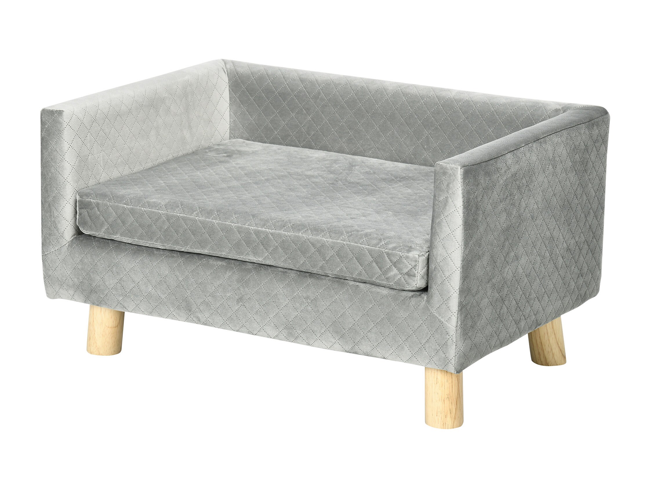 Canapé chien lit pour chien design scandinave coussin moelleux pieds bois massif dim. 87 x 61 x 36 cm polyester gris