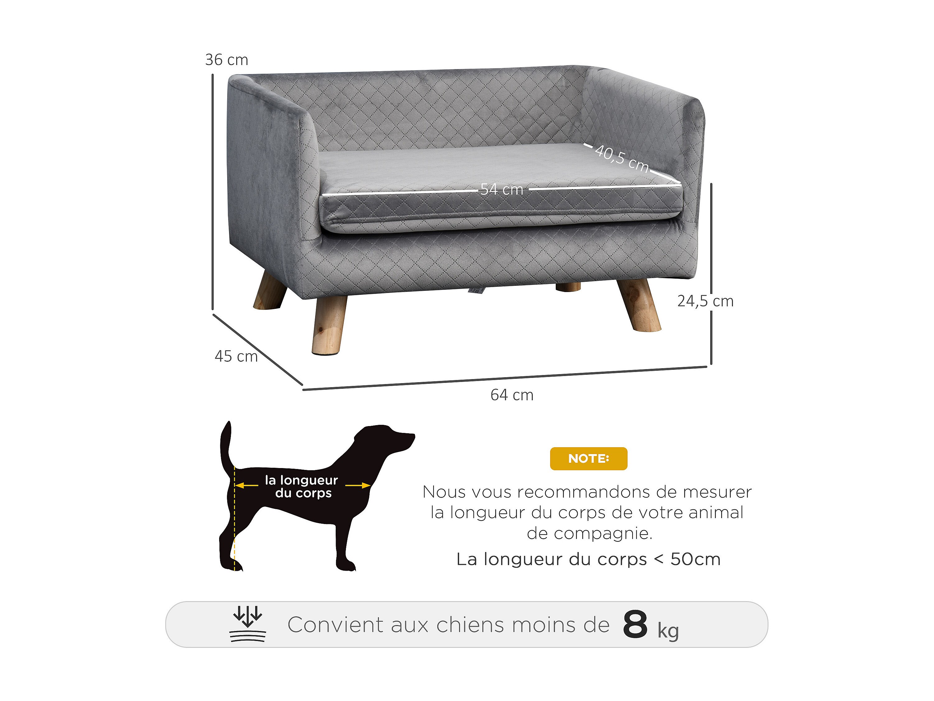 Canapé chien lit pour chien design scandinave coussin moelleux pieds bois massif dim. 64 x 45 x 36 cm velours gris