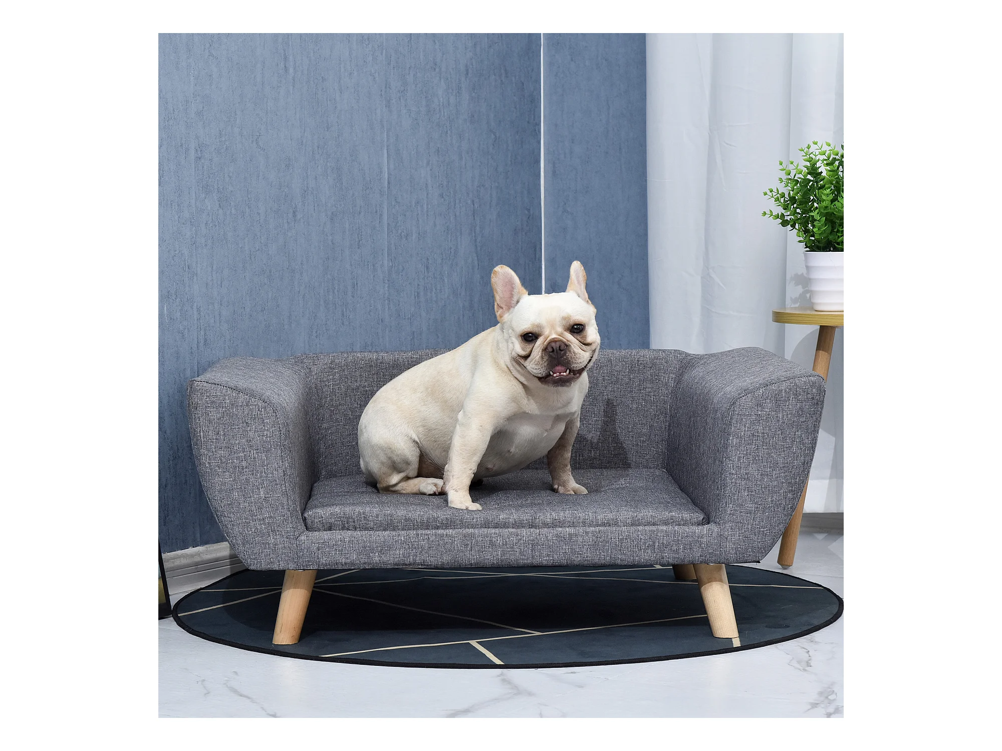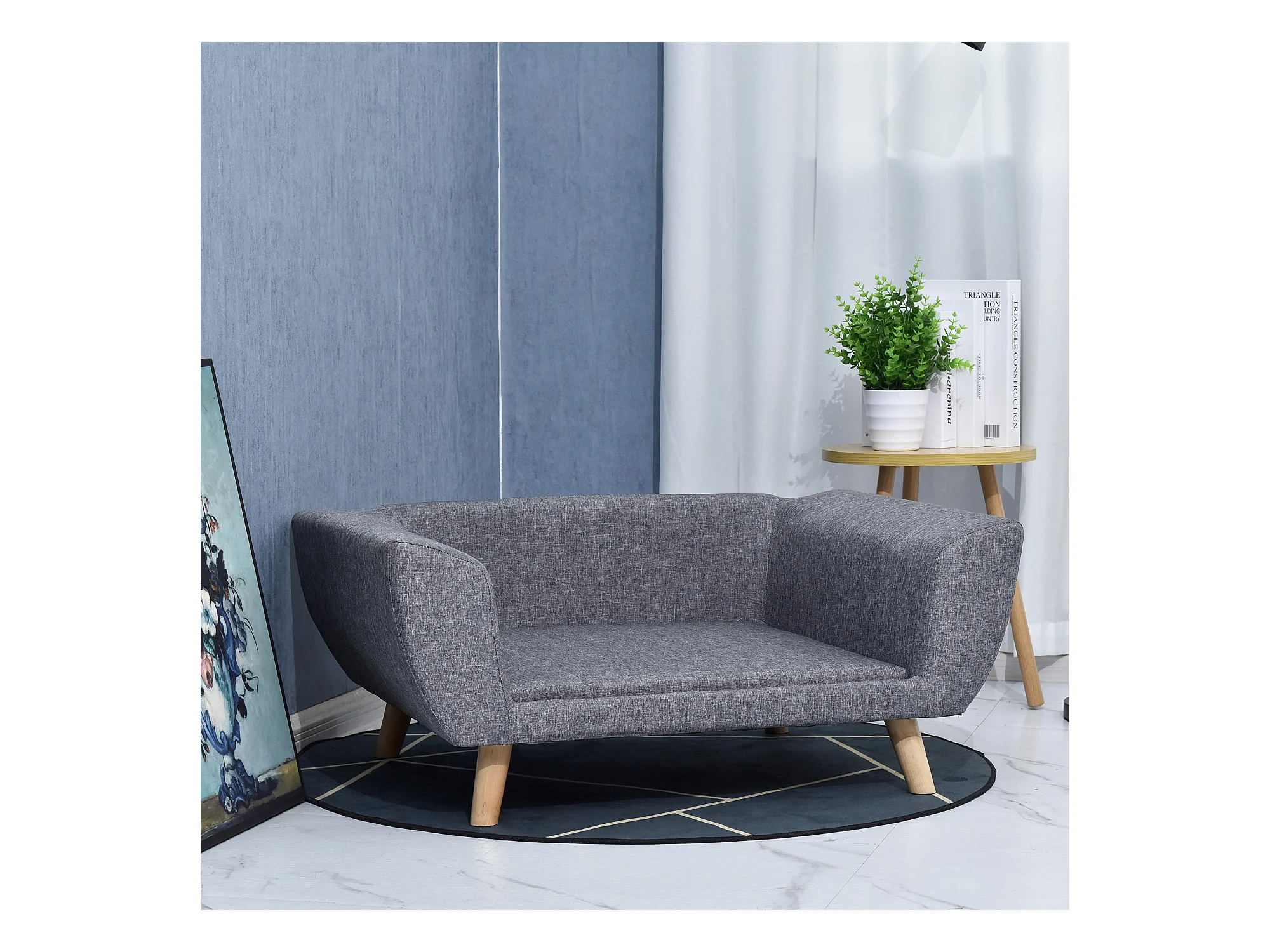 Canapé chien lit pour chien design scandinave coussin moelleux pieds bois massif dim. 87 x 61 x 36 cm polyester gris