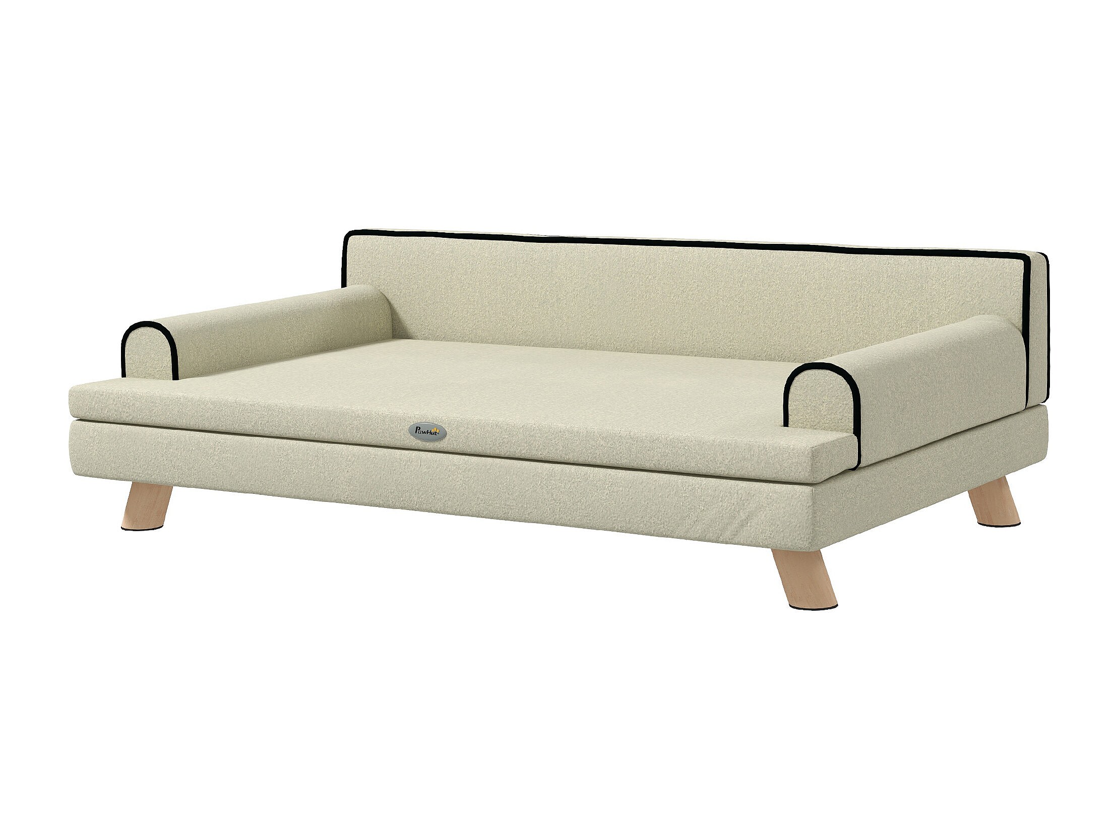 Canapé chien lit pour chien design scandinave coussin moelleux piètement bois dim. 100L x 62l x 32H cm polyester beige