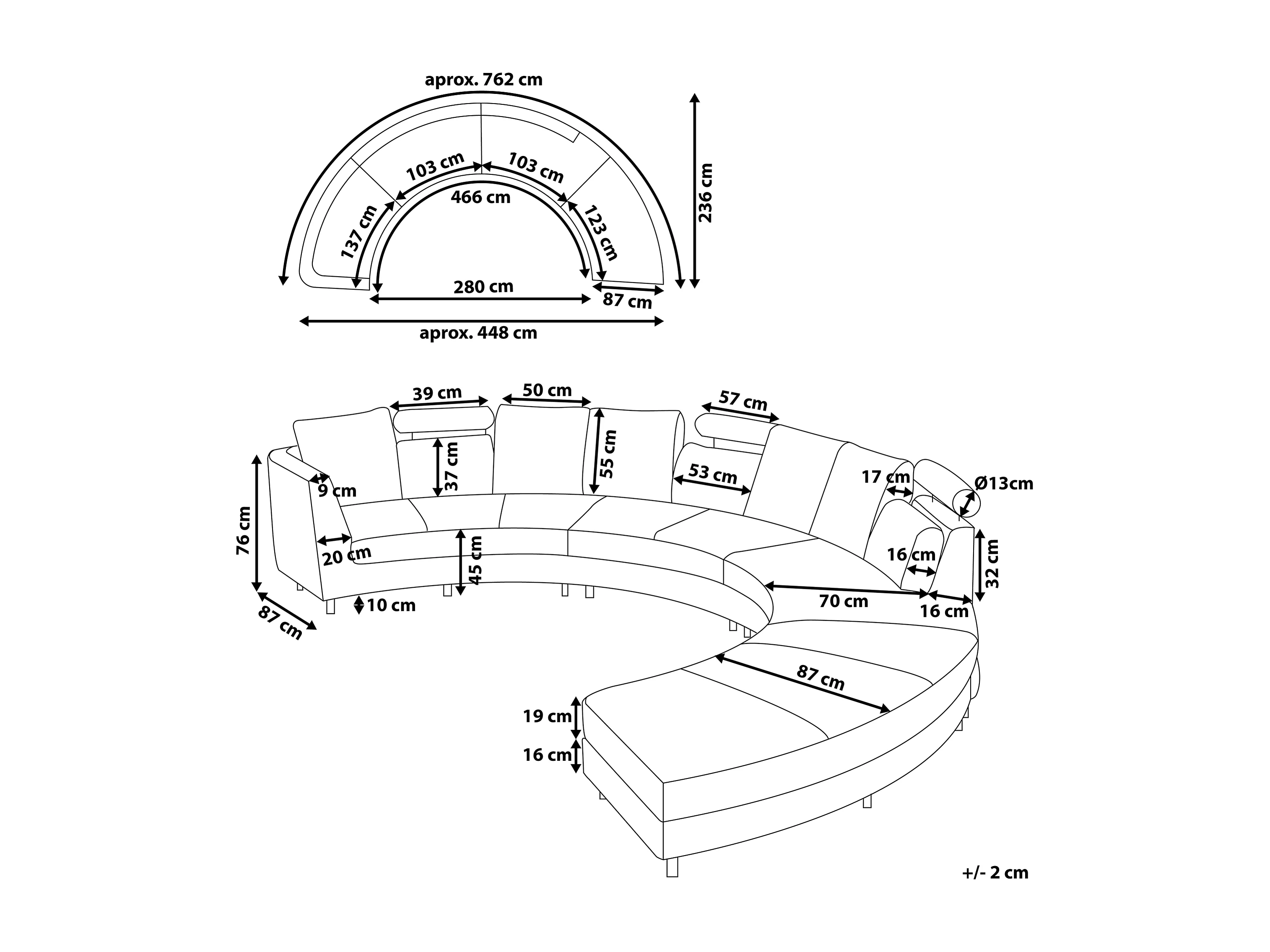 Canapé arrondi 7 places ROTUNDE Tissu Beige