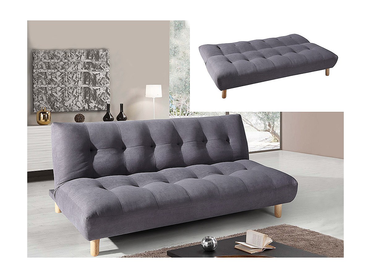 Canapé clic-clac 3 places en tissu VINCENT II - Gris