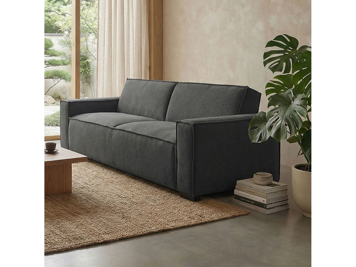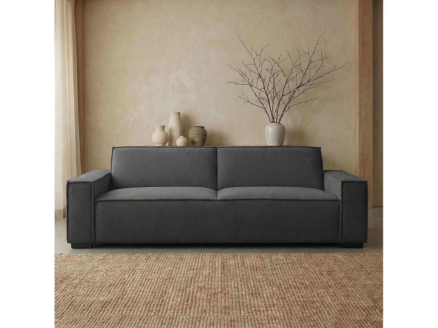 Canapé clic-clac 3 places Roger Tissu bouclette Gris