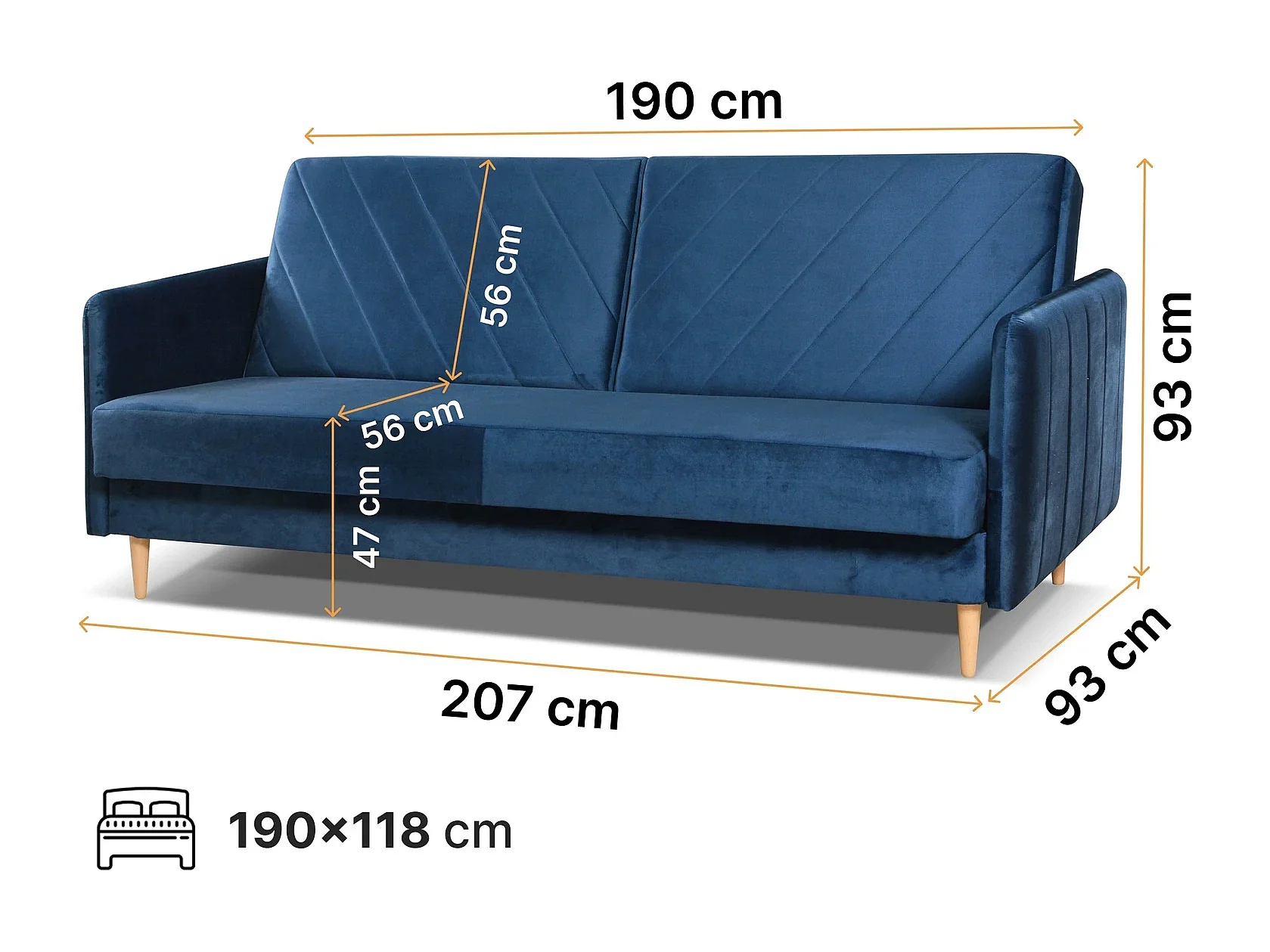 Canapé Clic-Clac Vesto - Velours Bleu Monolith 77 - Coffre de Rangement