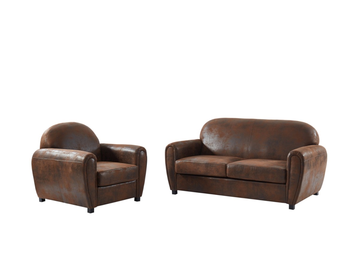 Canapé club 3+1 places microfibre aspect cuir vieilli MARTHE