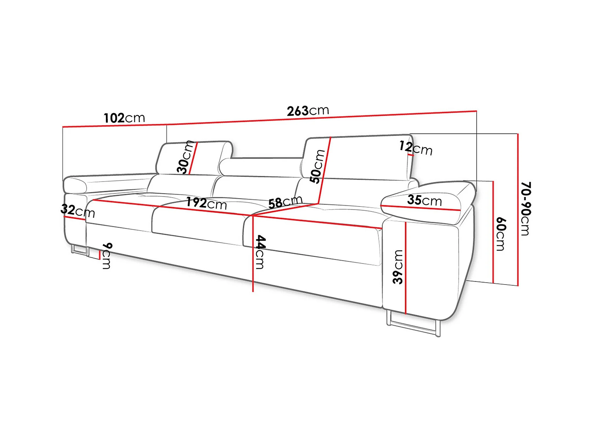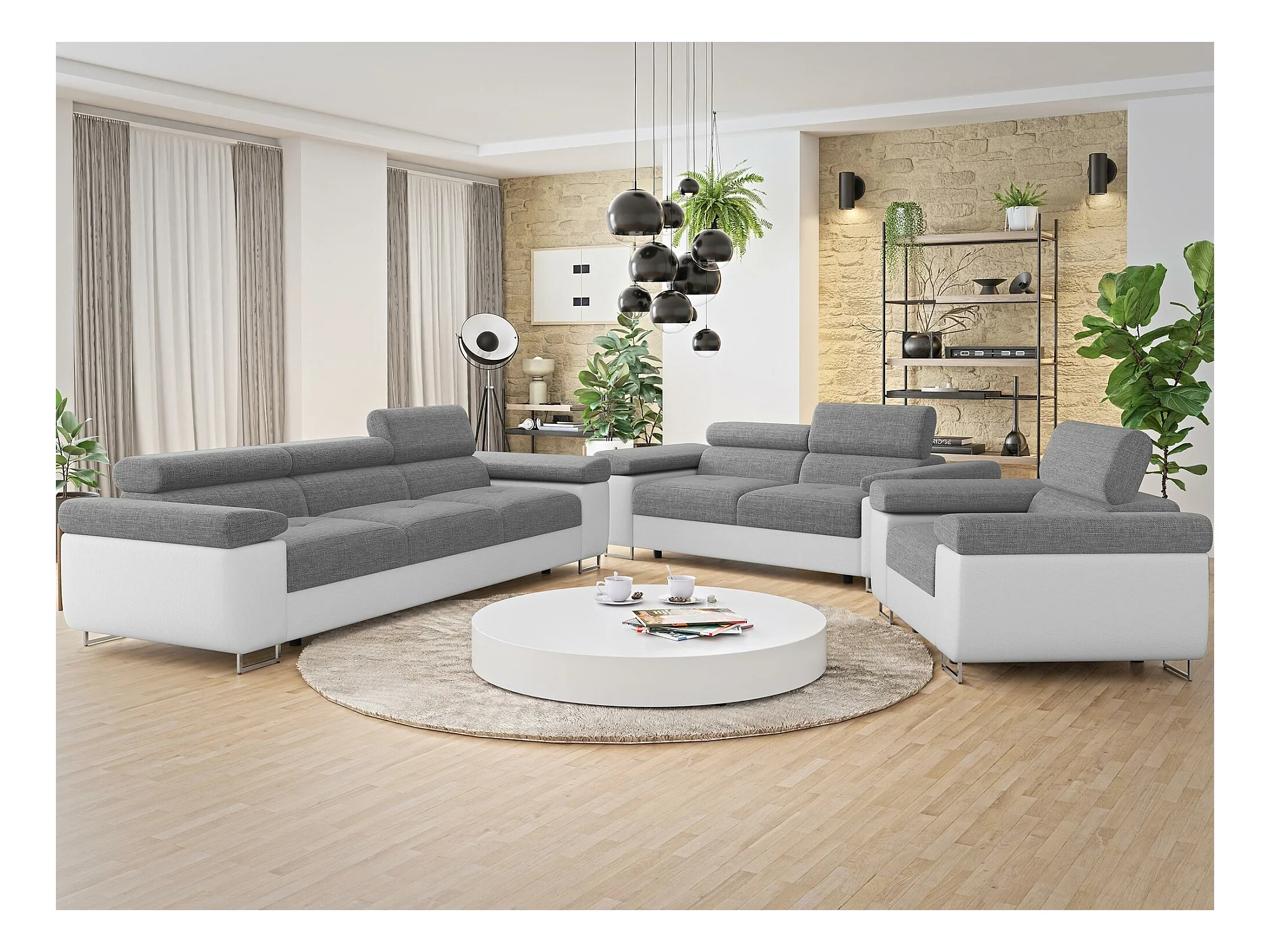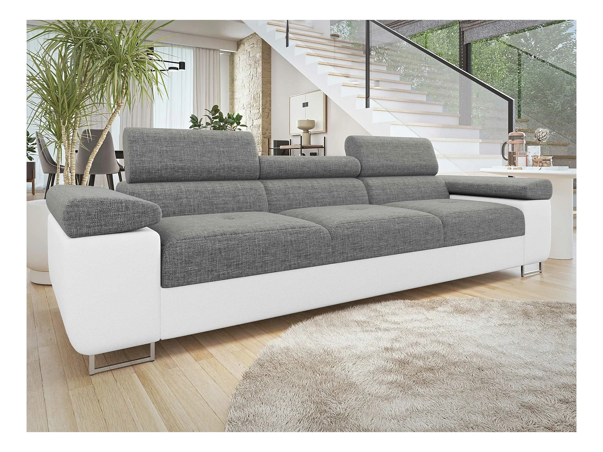 Canapé Comfivo Eliferu 104, Gris, 263x102x70cm, Faux cuir + Tissu, Pieds: Métal