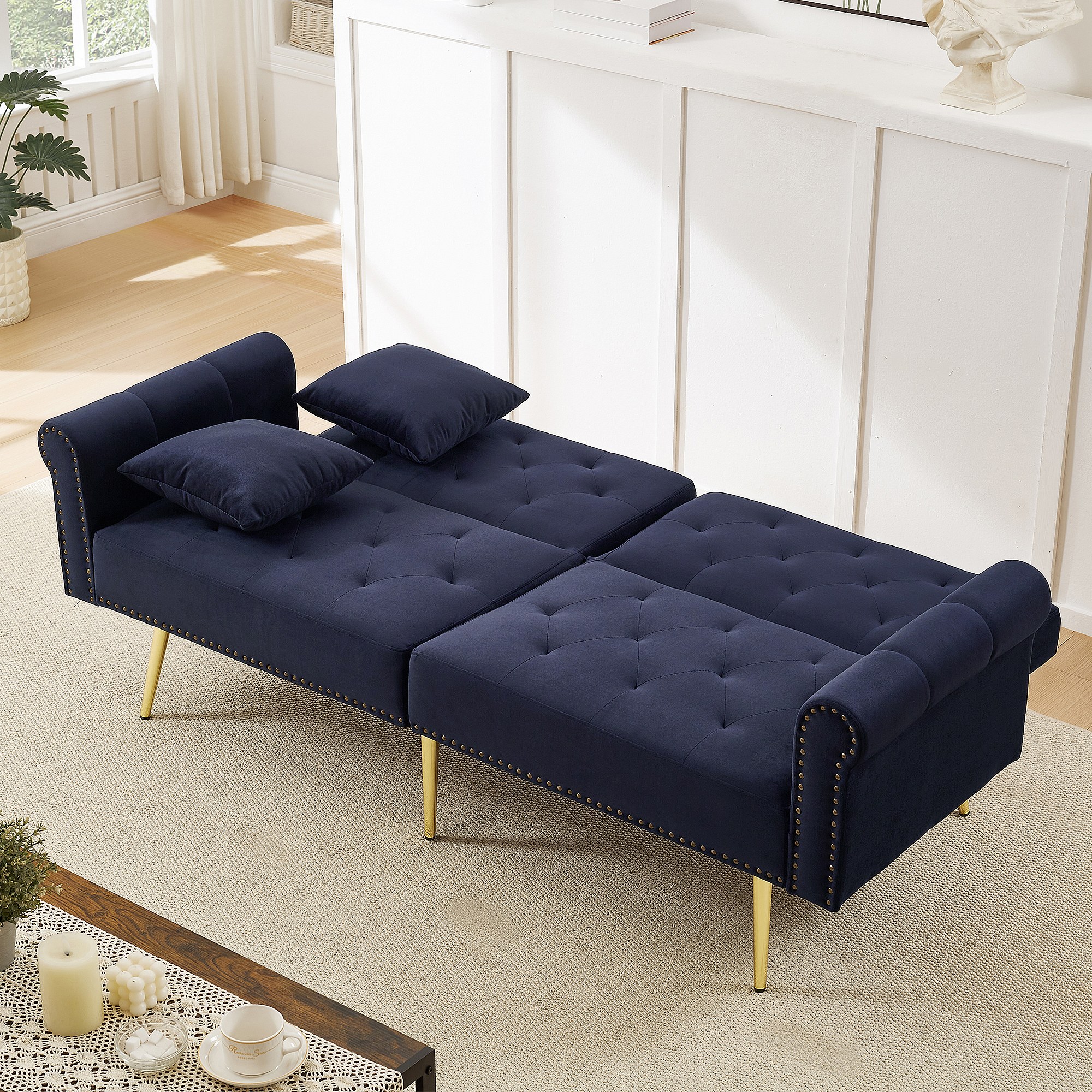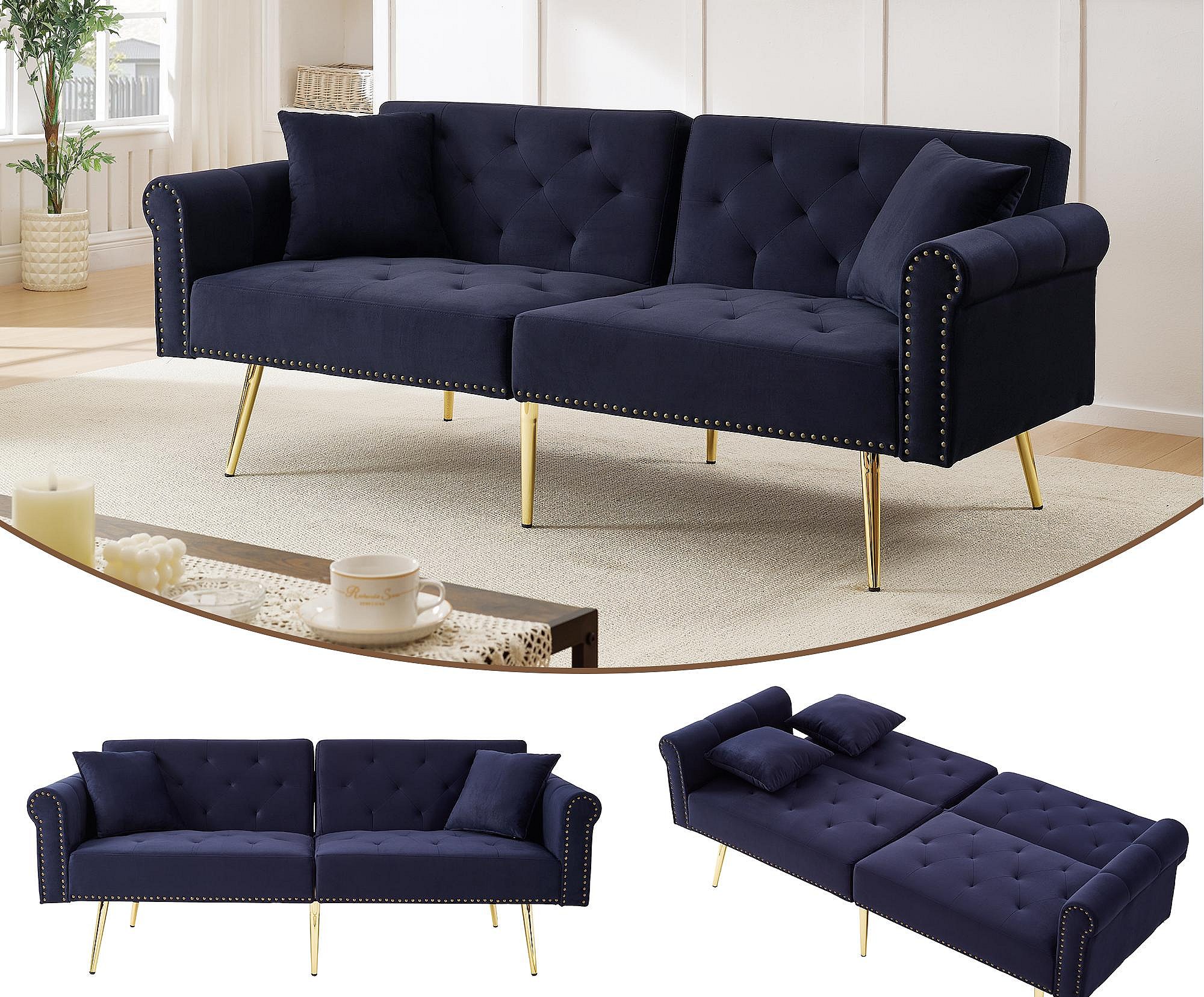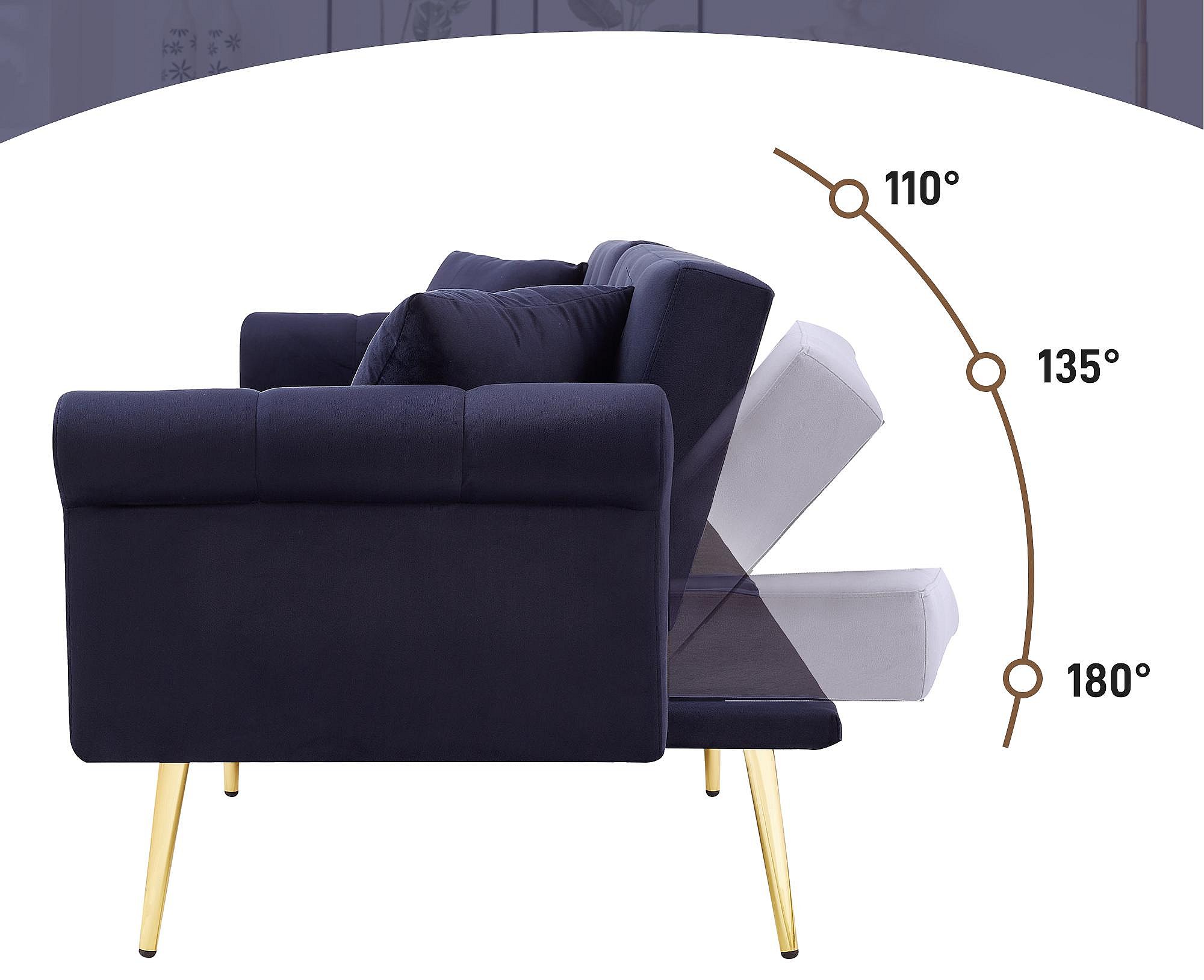 Canapé contemporain 2 places - Velours - Dossier réglable sur 3 niveaux - Bleu antique