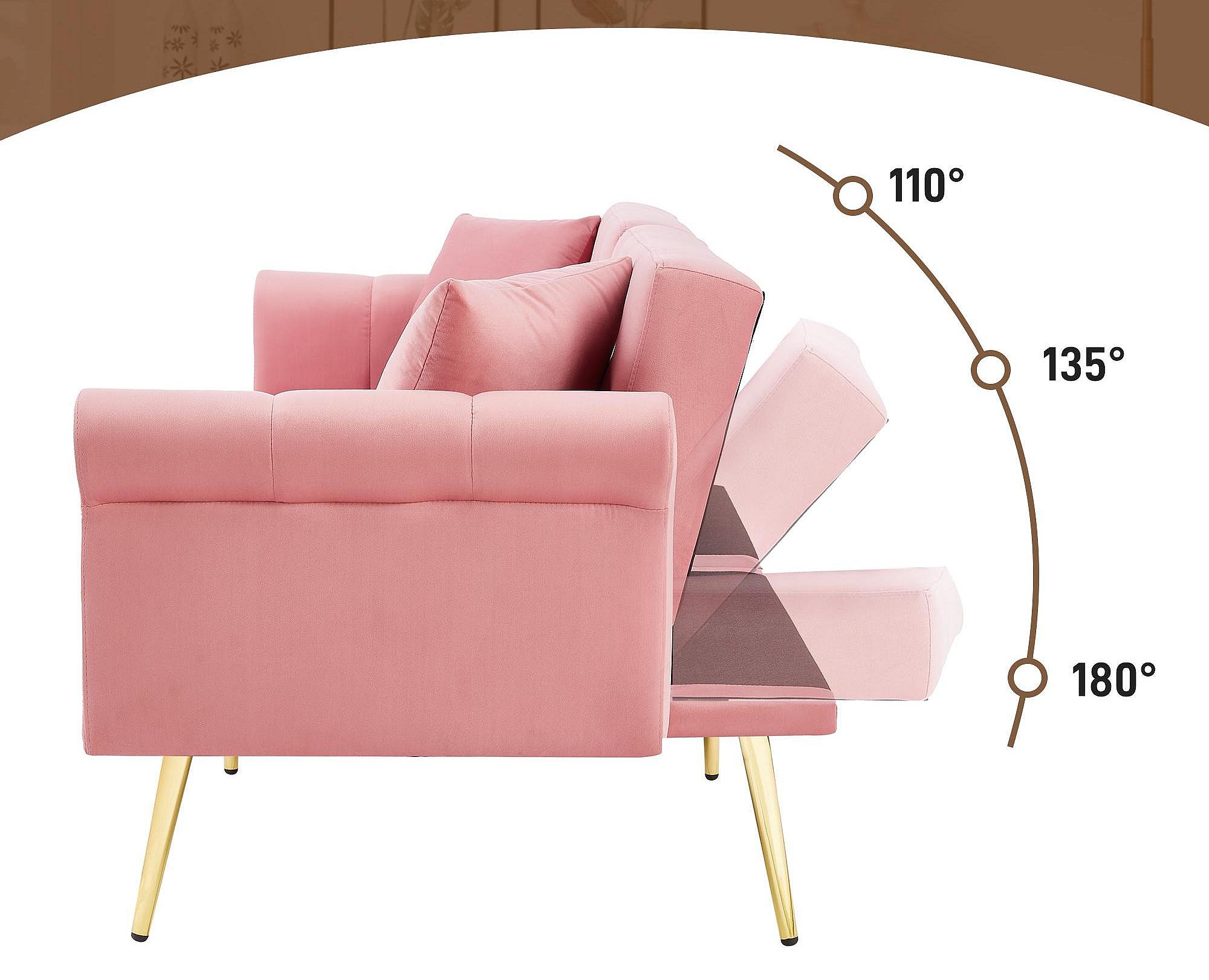 Canapé contemporain 2 places - Velours - Dossier réglable sur 3 niveaux - Rose