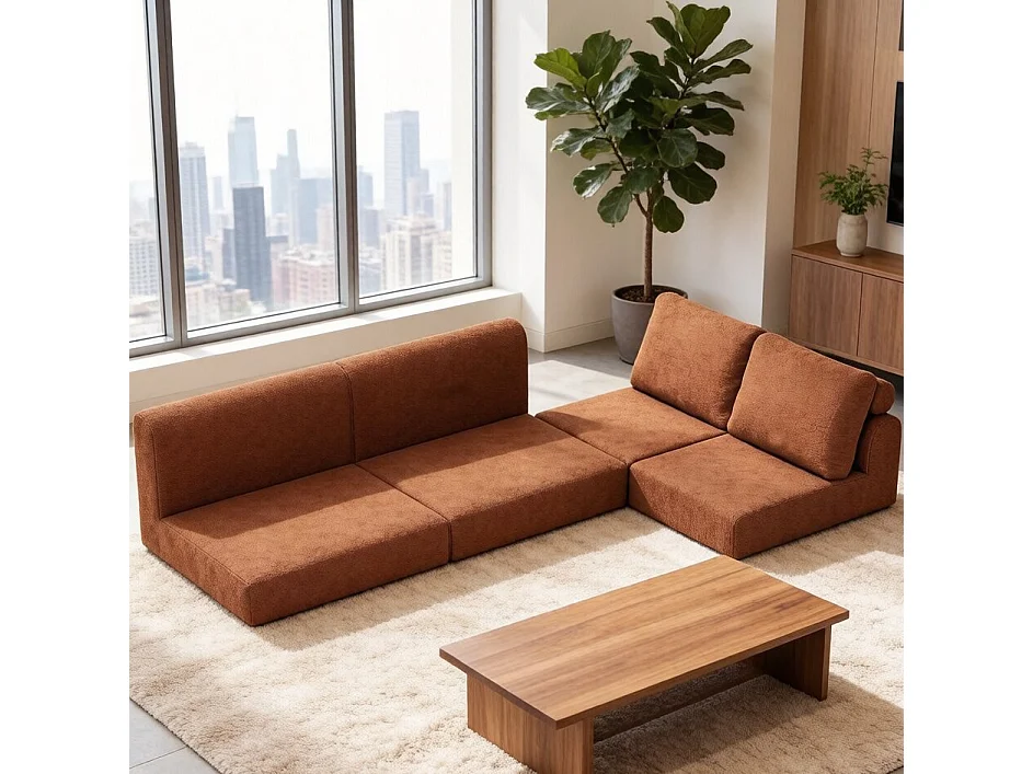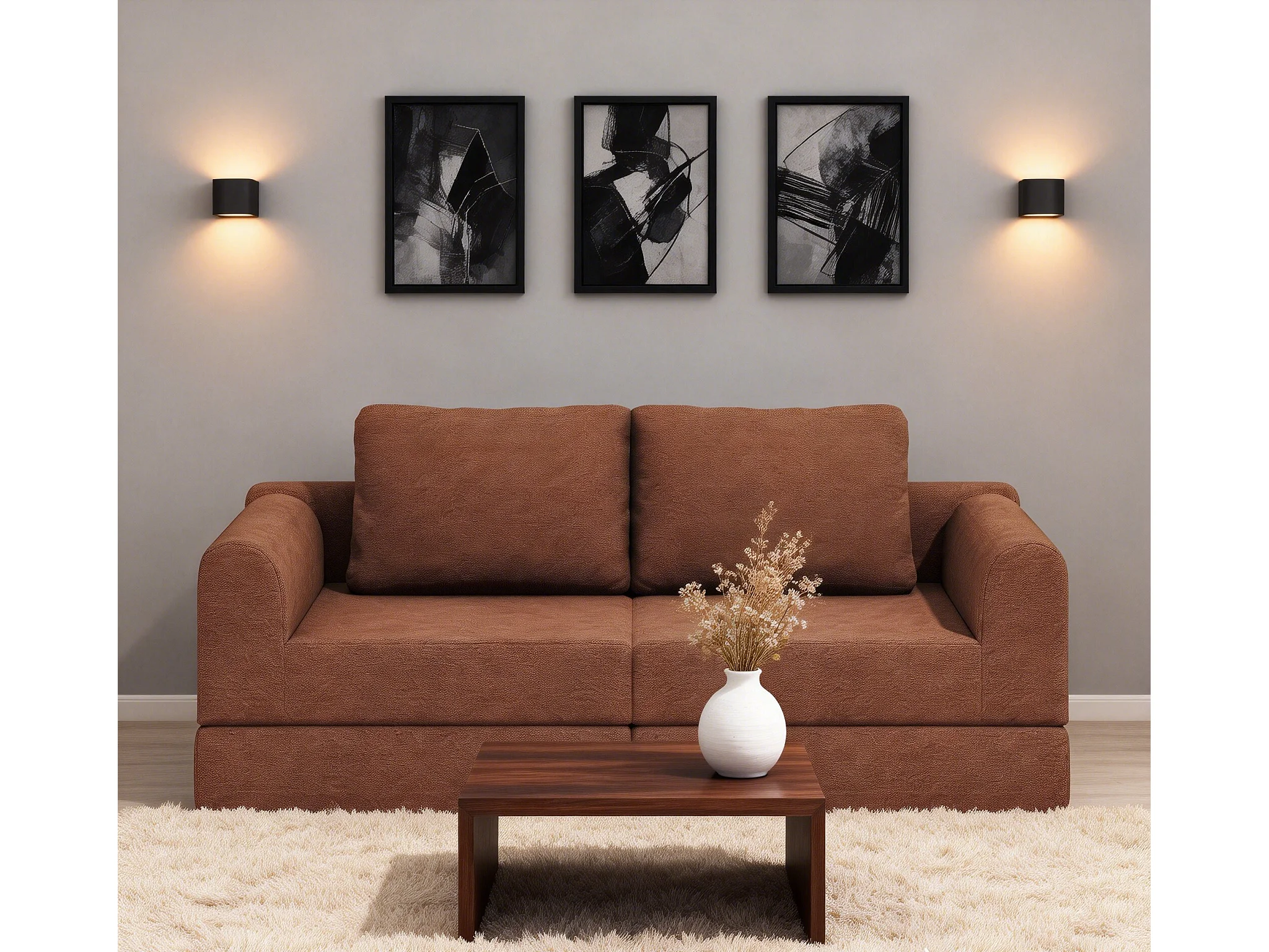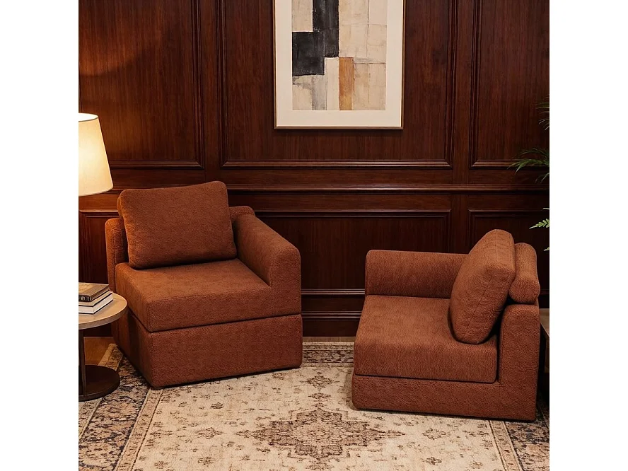 Canapé convertible 2 places 3-1 en flanelle marron - Pour salon et chambre