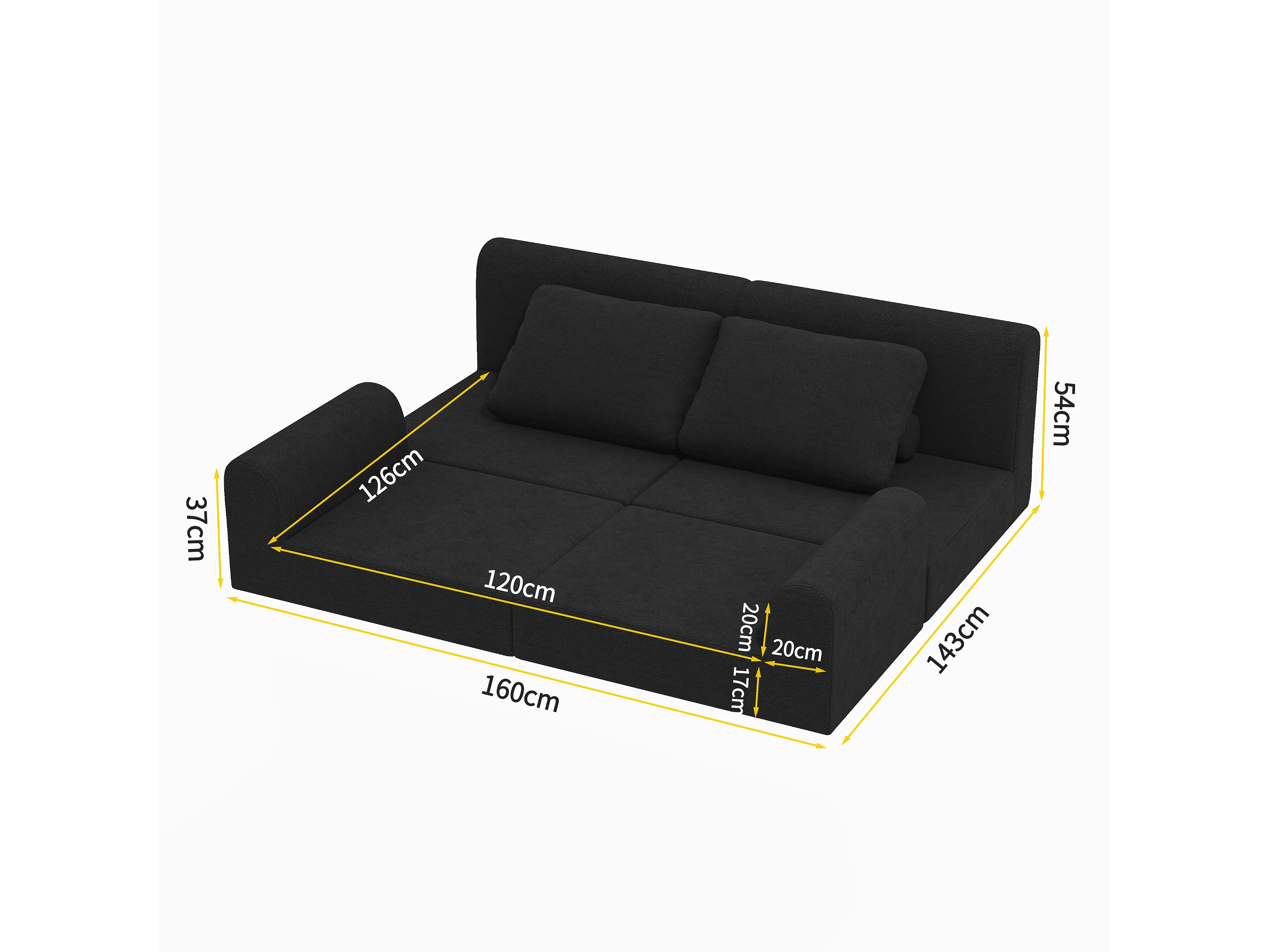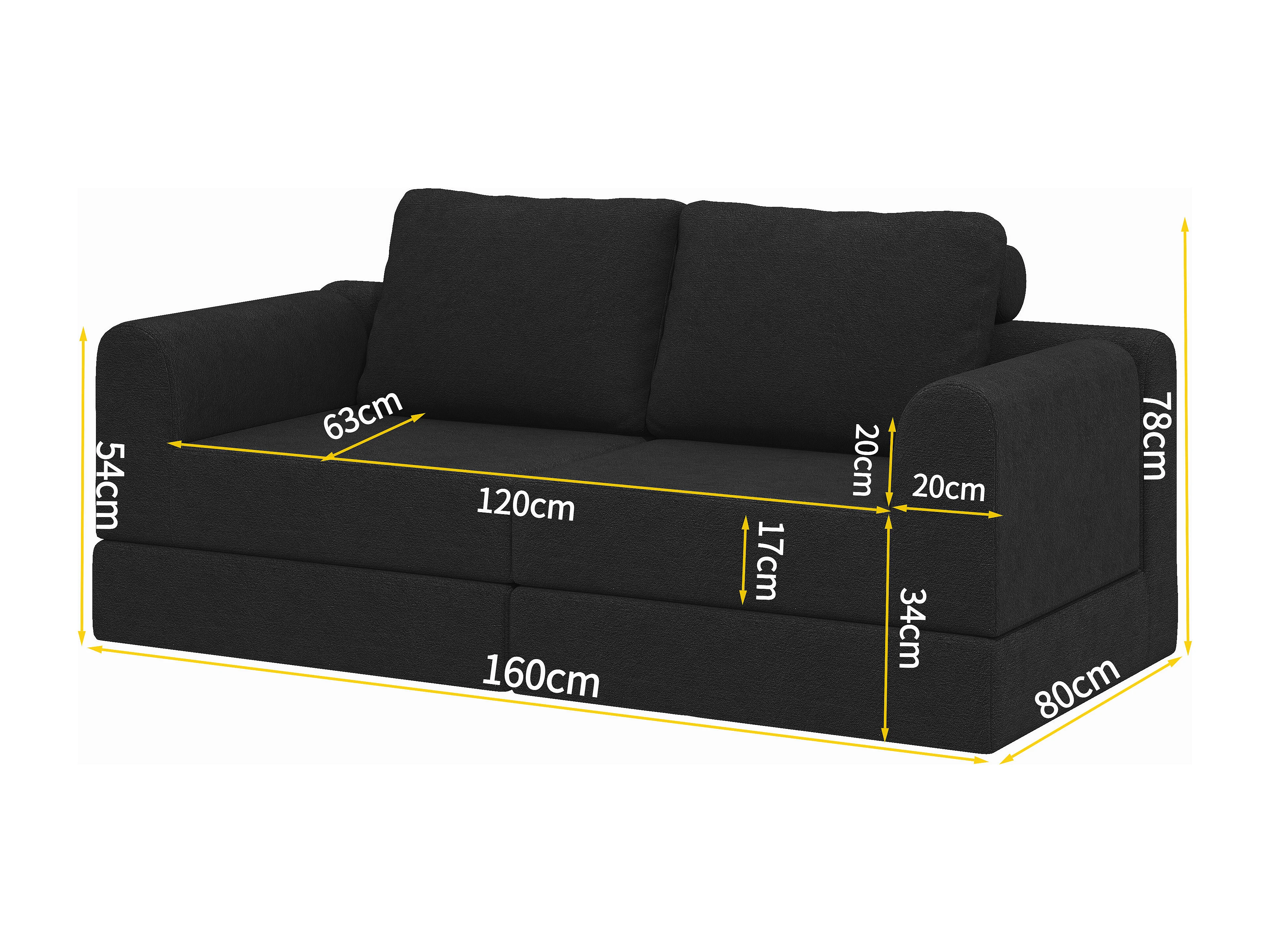 Canapé convertible 2 places 3-1 en flanelle noir - Pour salon et chambre