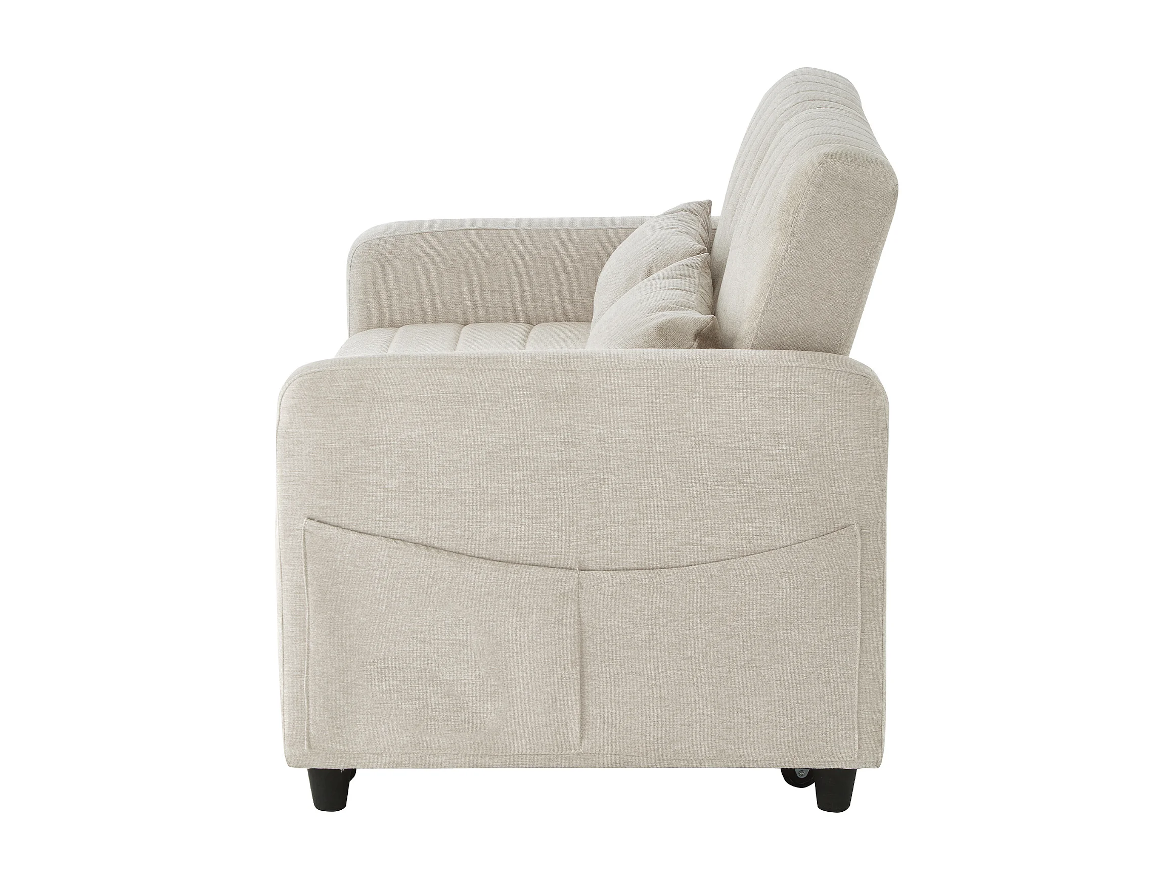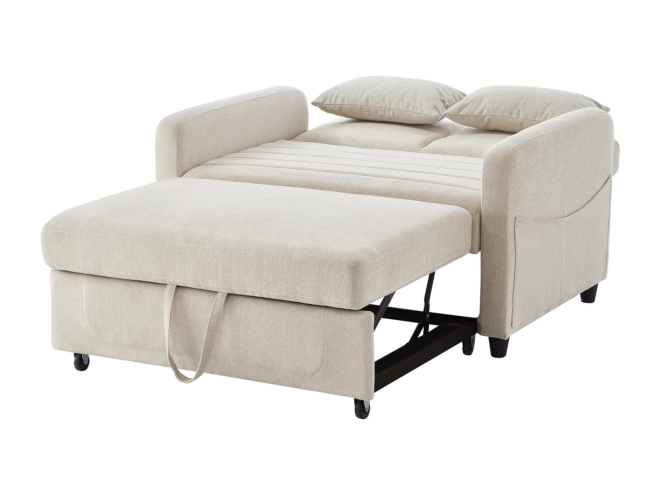 Canapé convertible 2 places beige - Dossier réglable en 3 positions - Canapé-lit en tissu coton-lin