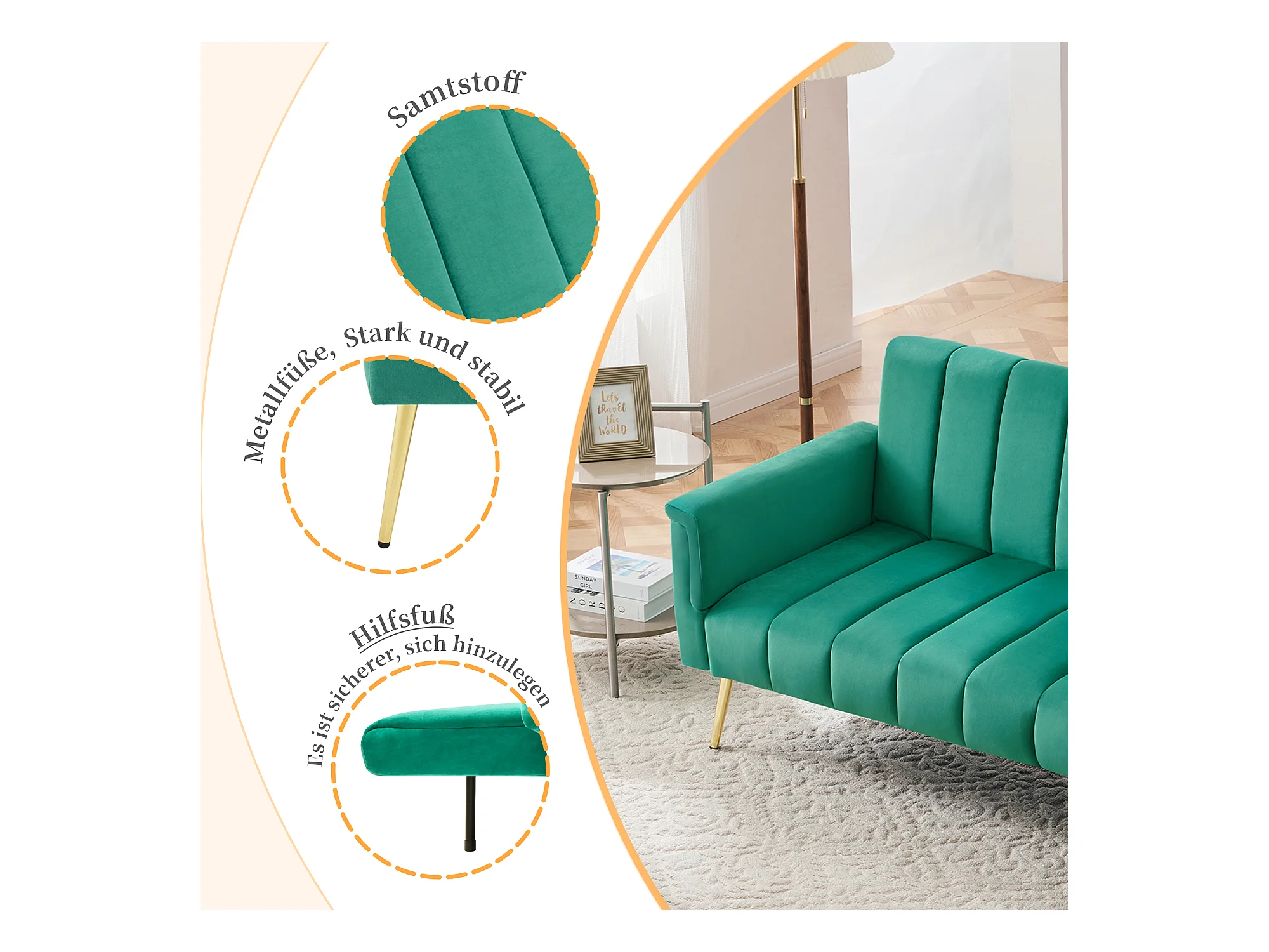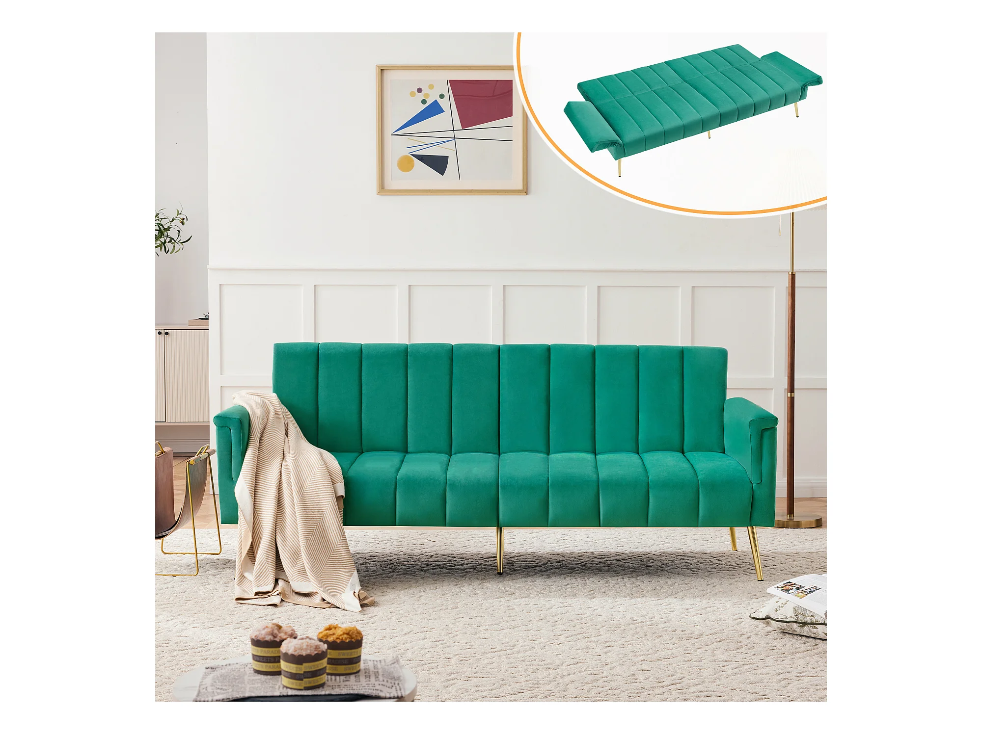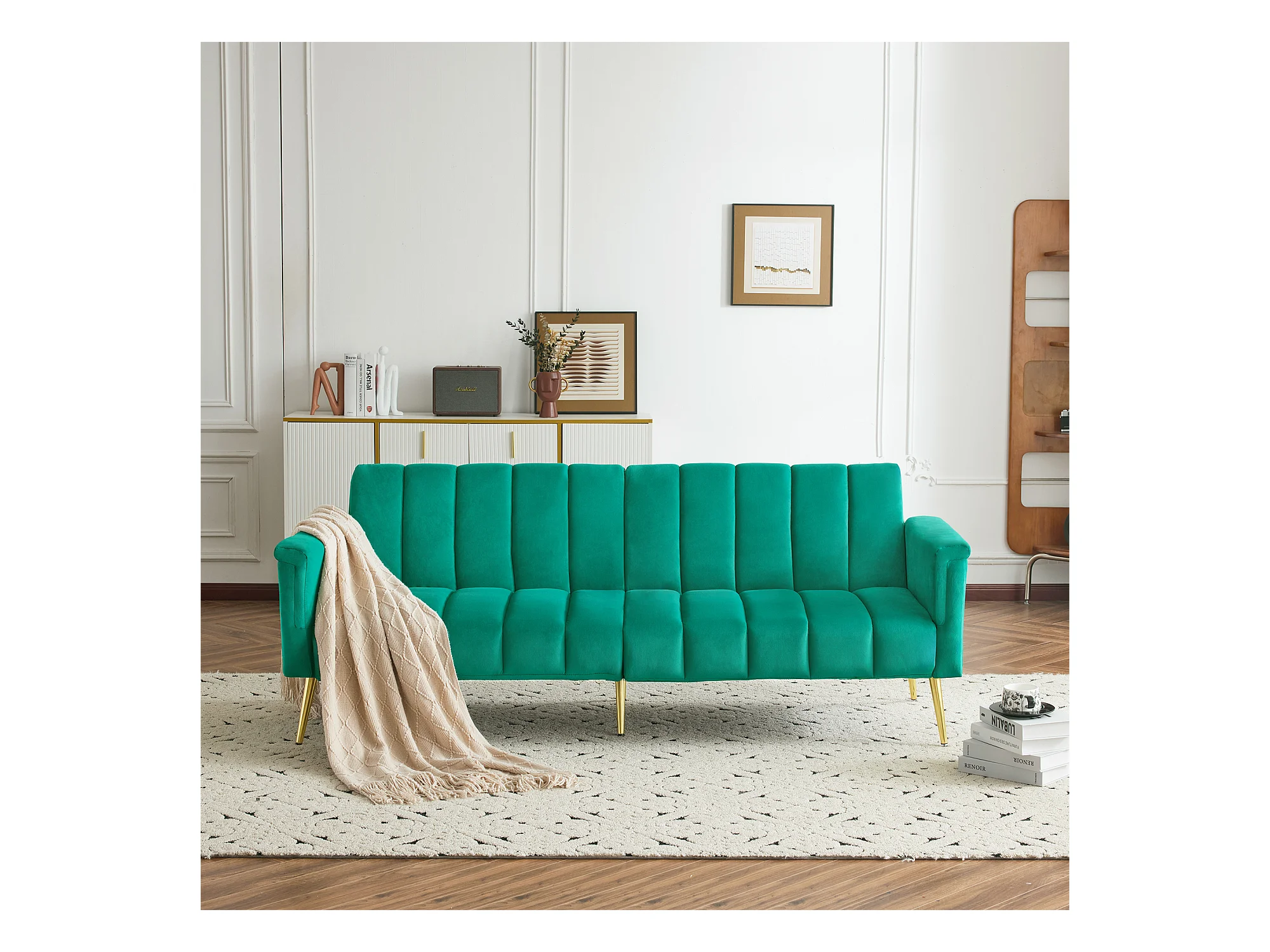 Canapé convertible 2 places clic-clac en velours - 183 x 76 x 75 cm - Pieds en métal doré - Vert