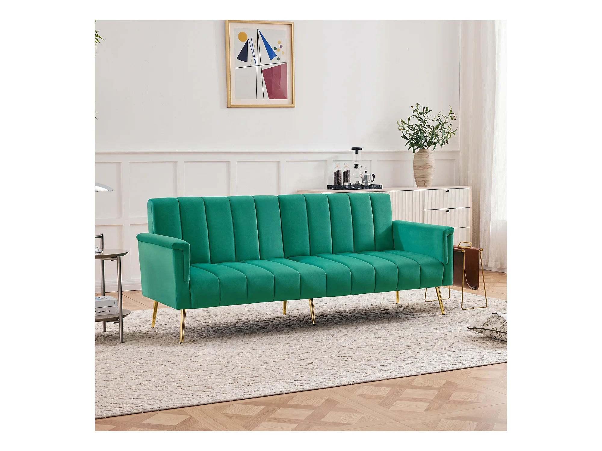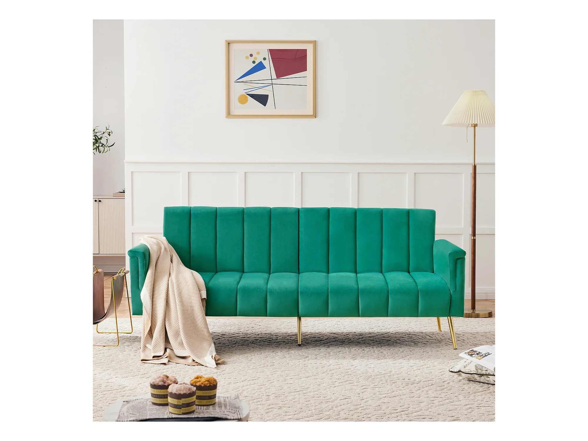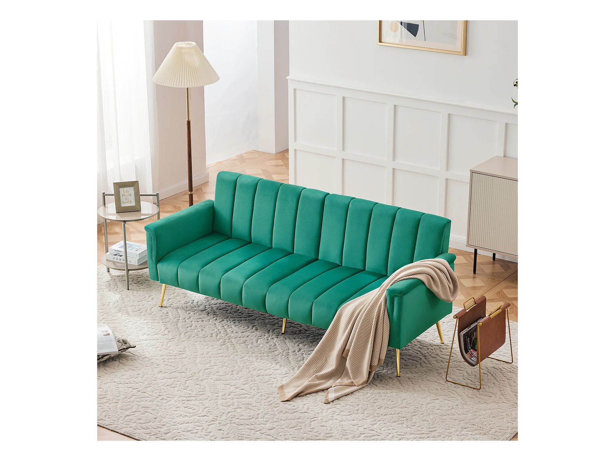 Canapé convertible 2 places clic-clac en velours - 183 x 76 x 75 cm - Pieds en métal doré - Vert