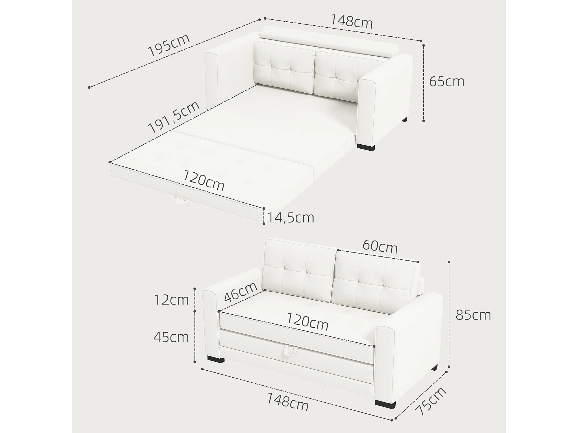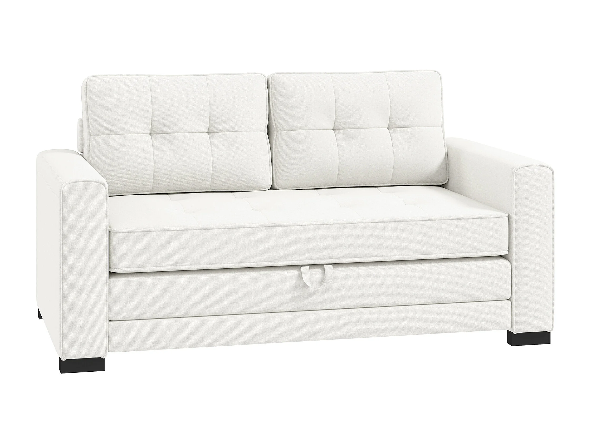Canapé convertible 2 places design contemporain assise dossier capitonnés polyester aspect lin blanc cassé