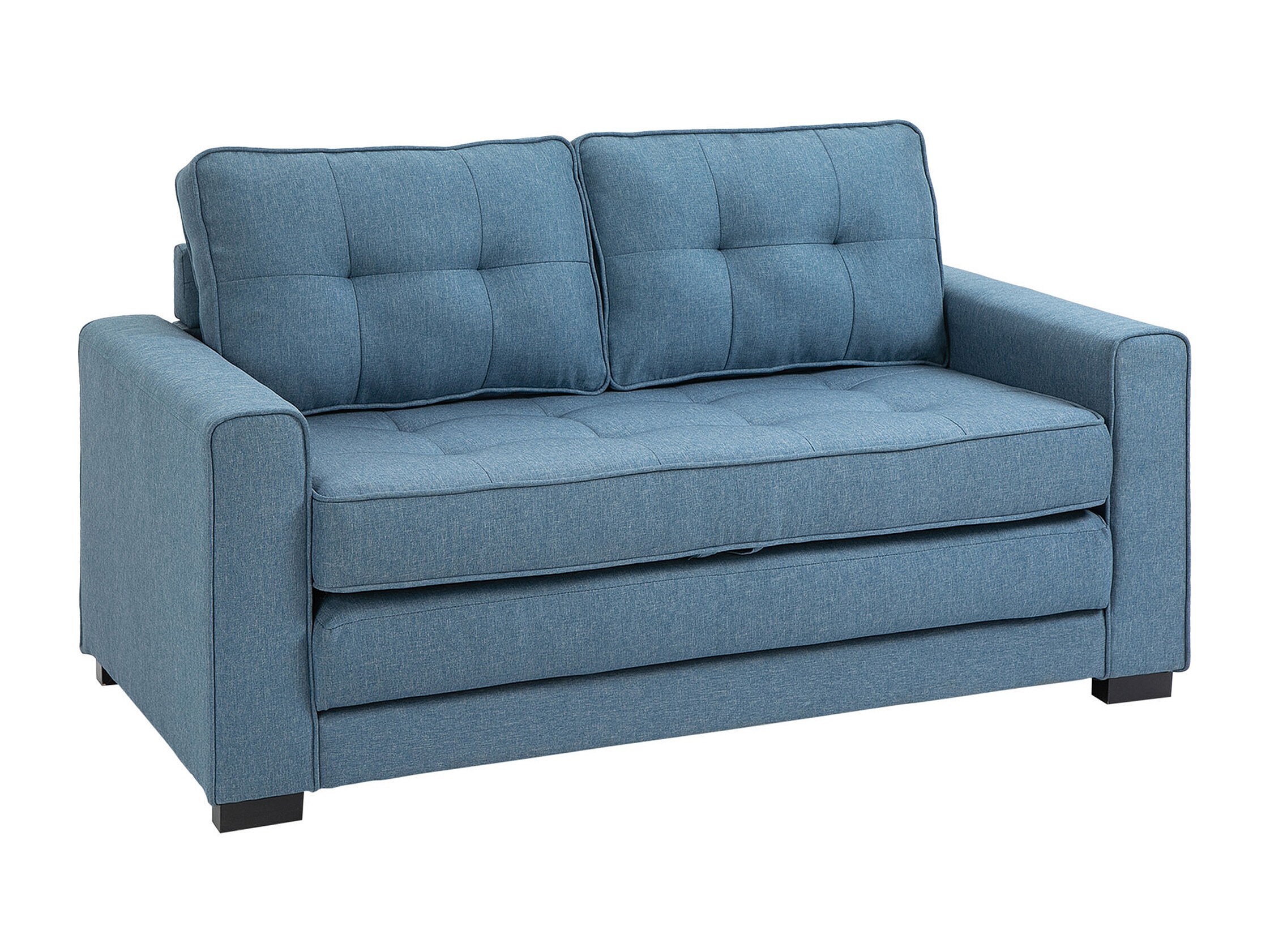 Canapé convertible 2 places design contemporain assise dossier capitonnés polyester aspect lin bleu