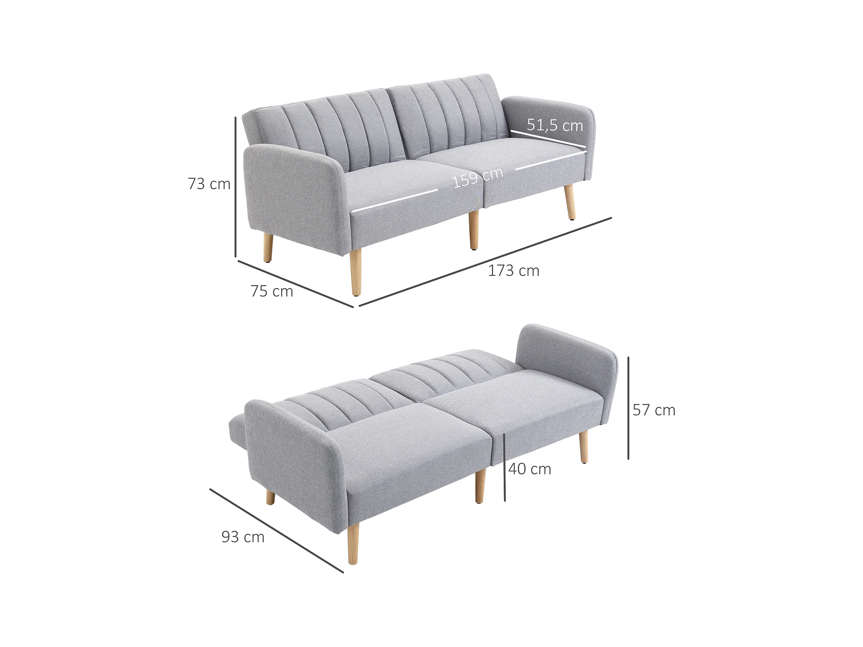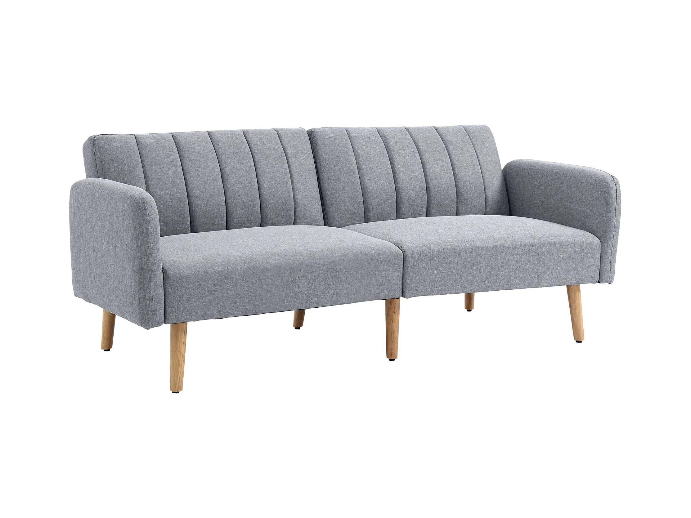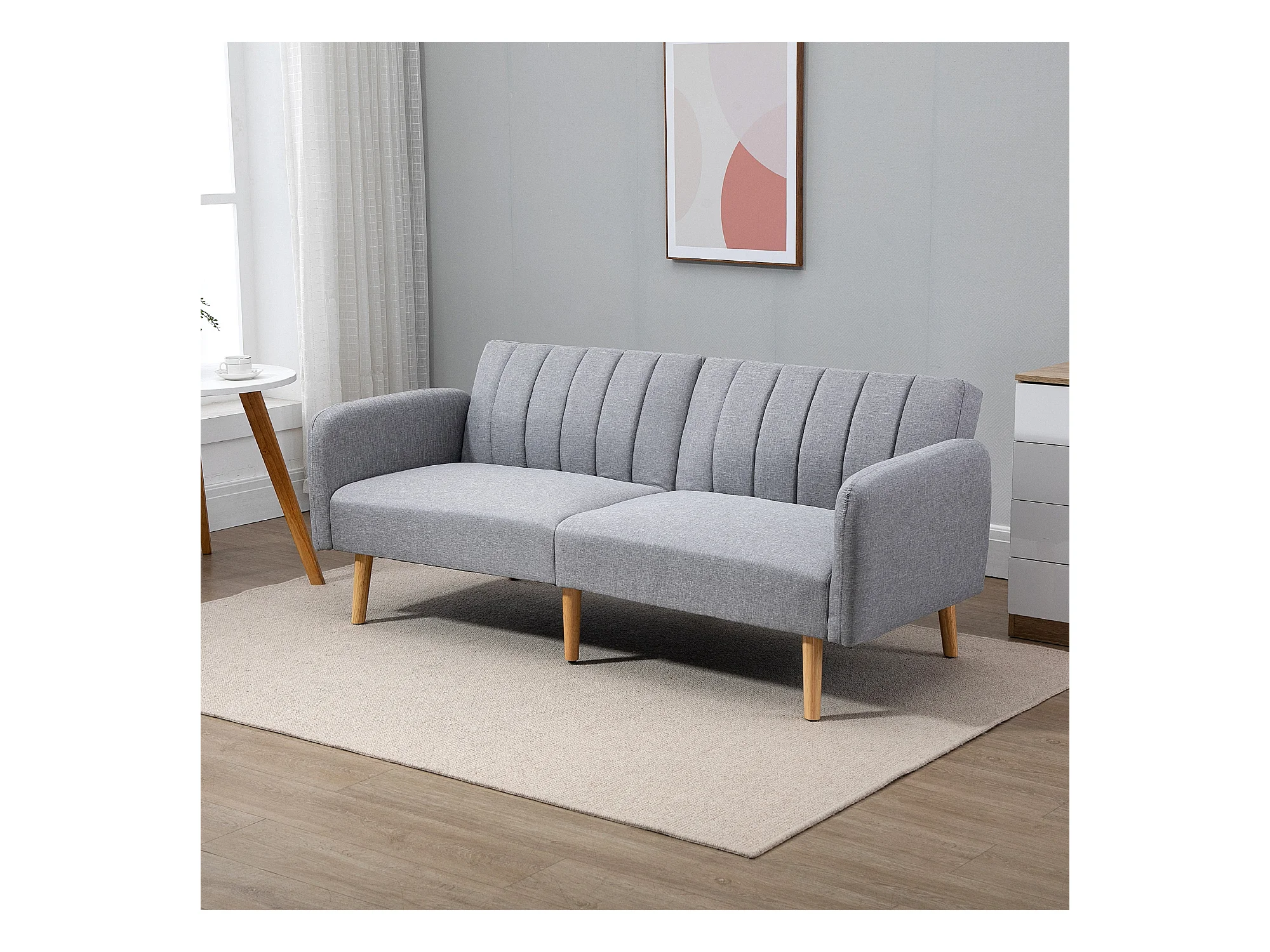 Canapé convertible 2 places design scandinave dossier inclinable 3 positions pieds bois tissu aspect lin gris