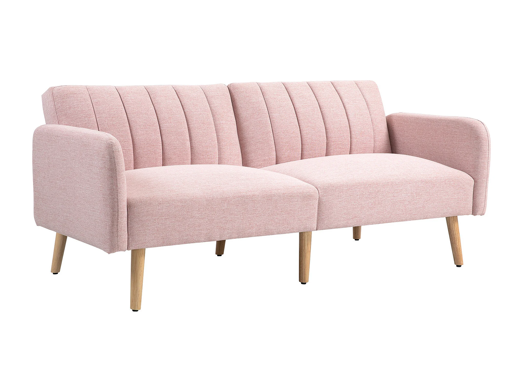 Canapé convertible 2 places design scandinave dossier inclinable 3 positions pieds bois tissu aspect lin rose