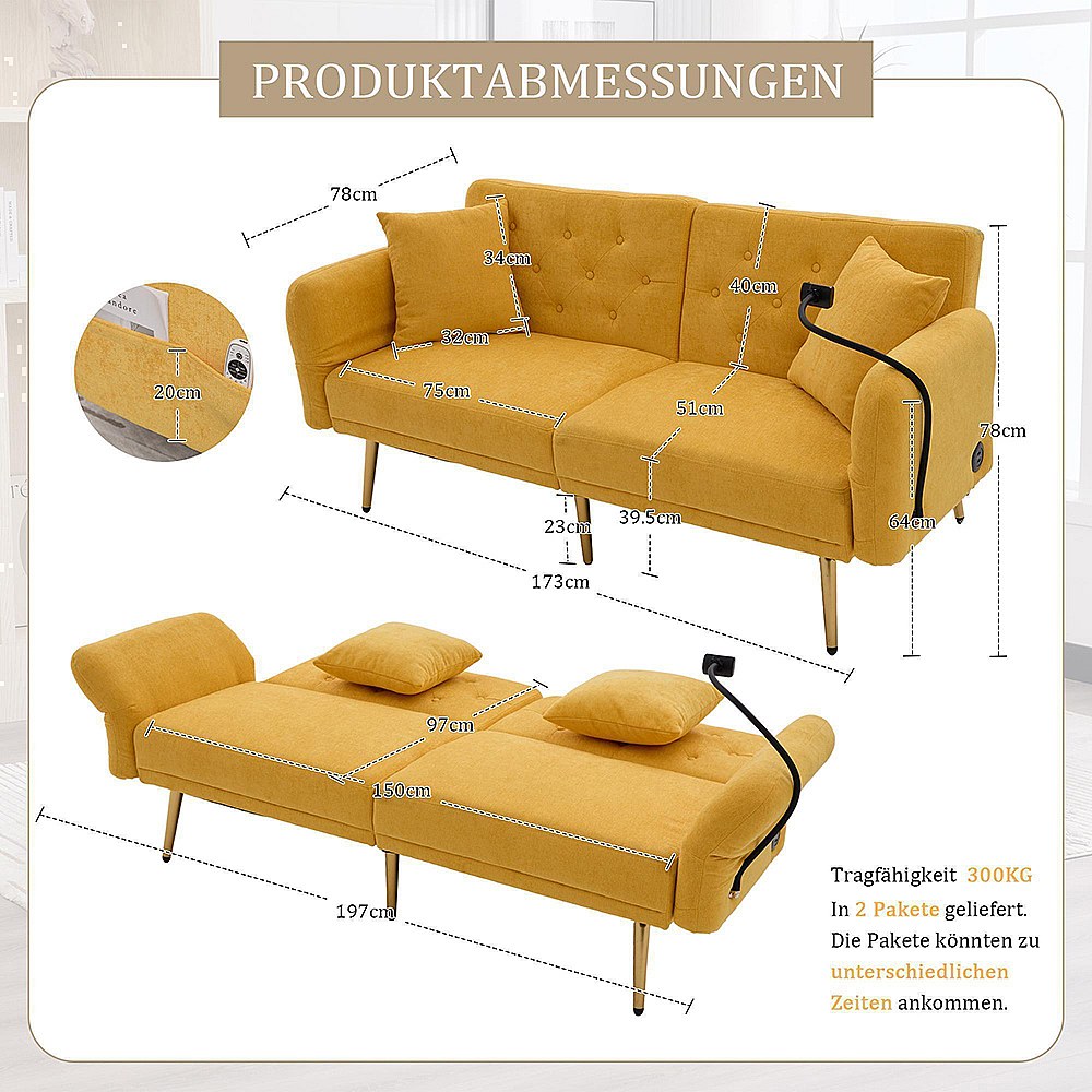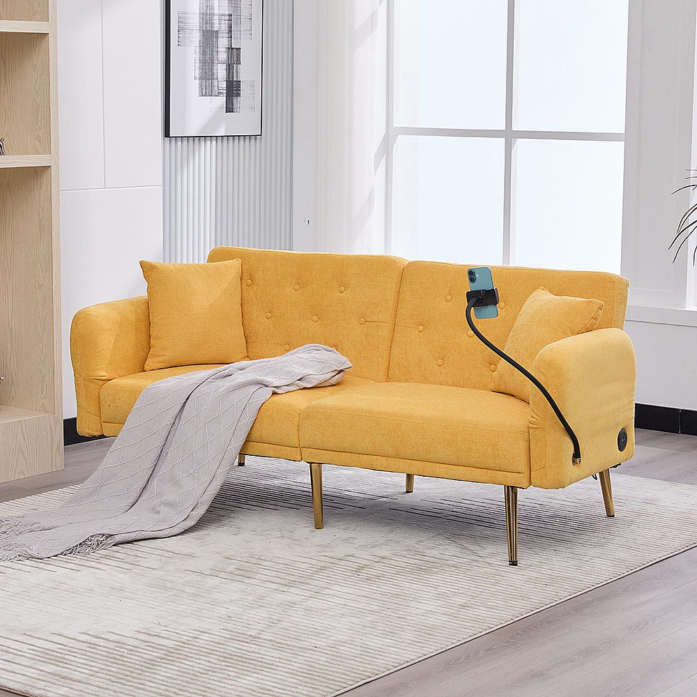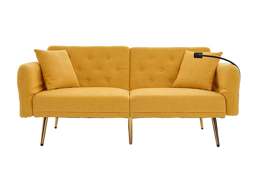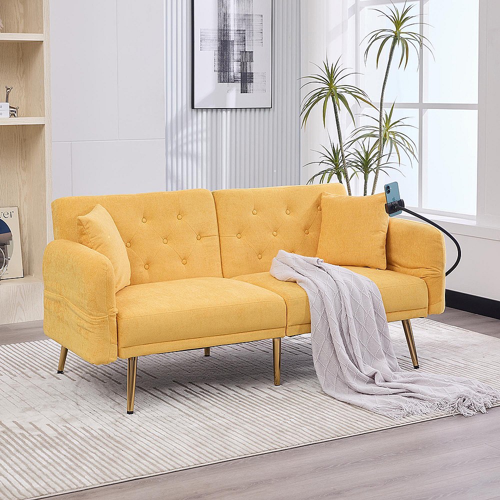 Canapé convertible 2 places dossier ajustable USB poche support téléphone pieds métal pliant siège lit dappoint jaune