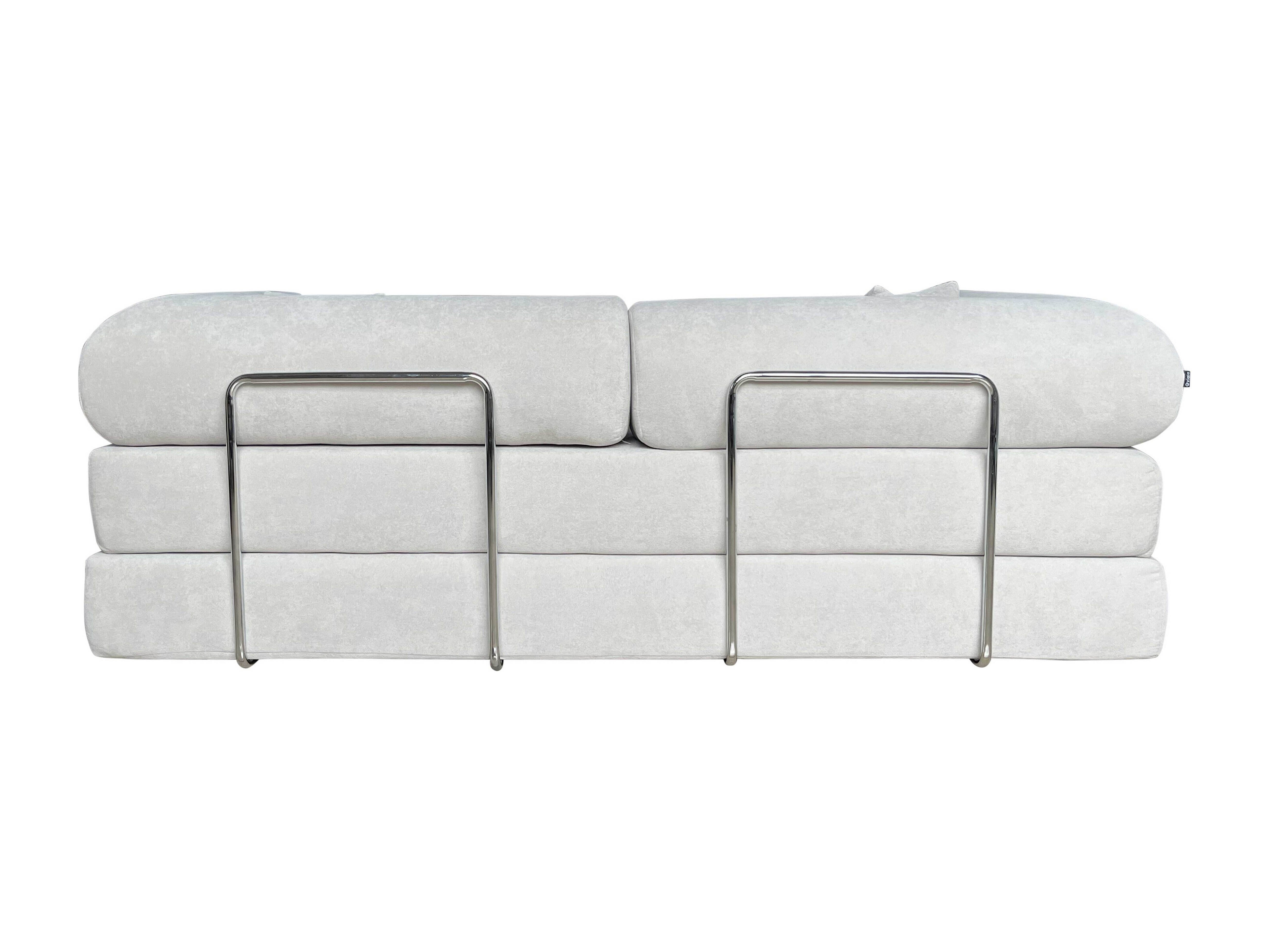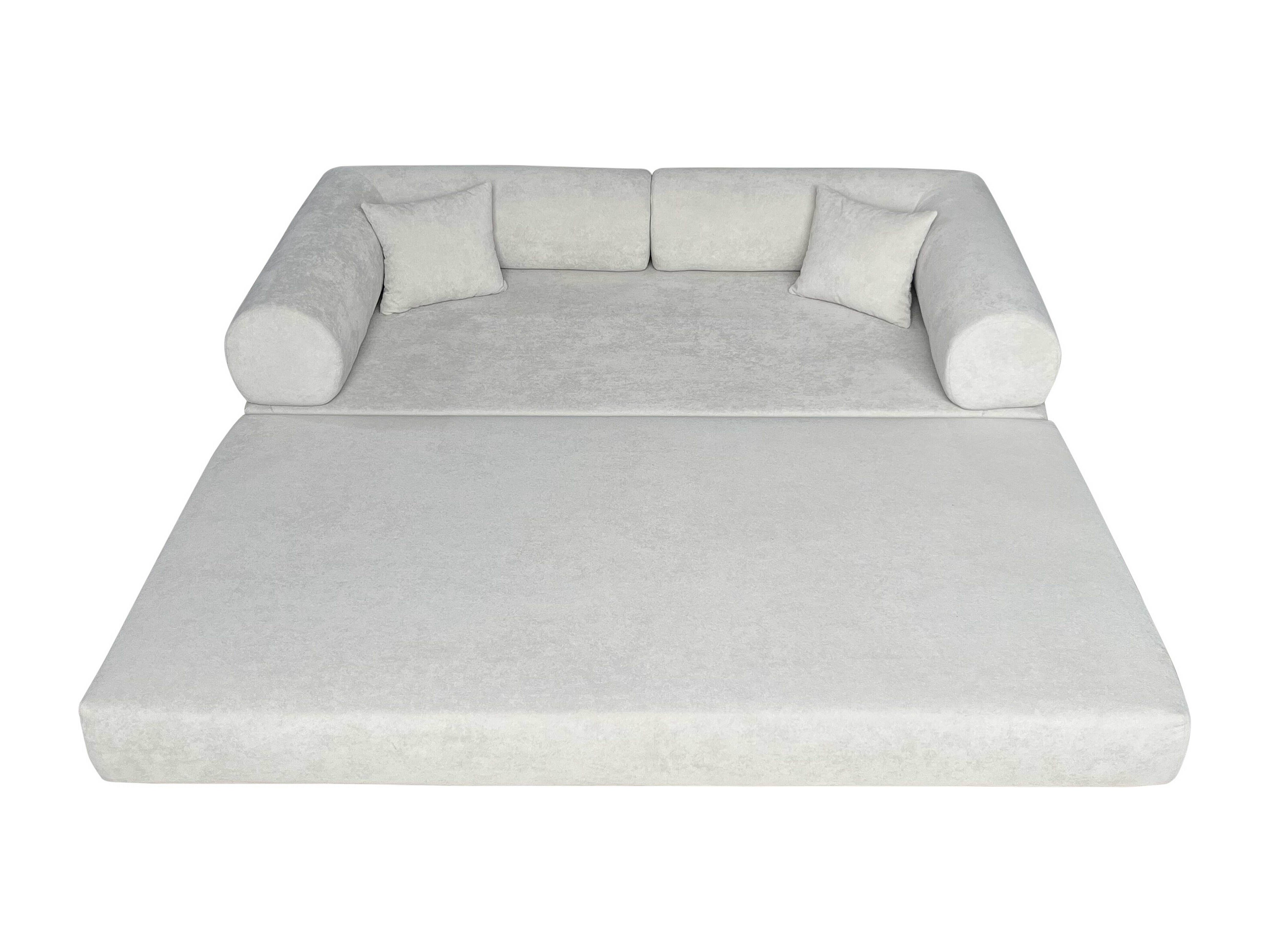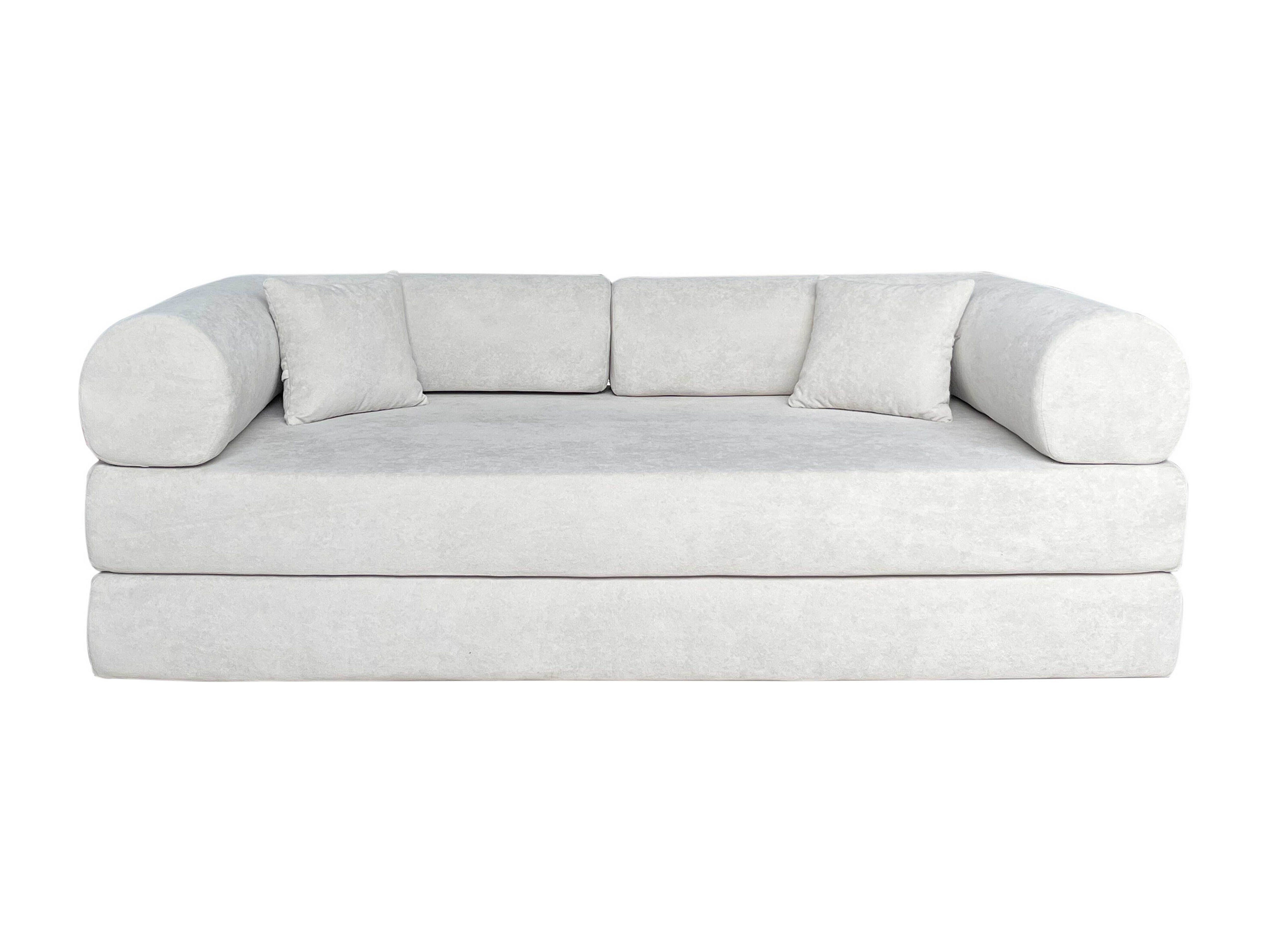 Canapé convertible 2 places en tissu avec coussins Ecru