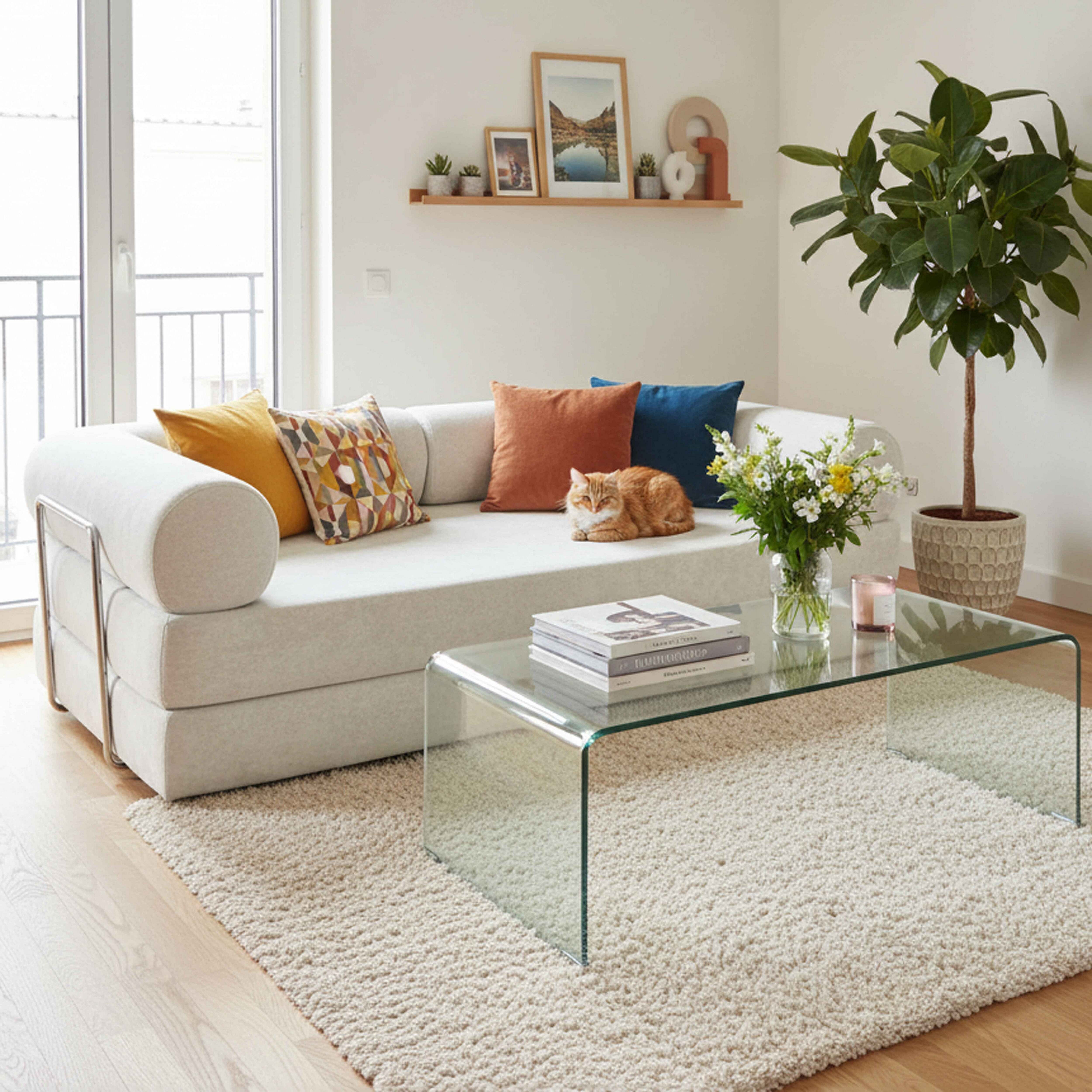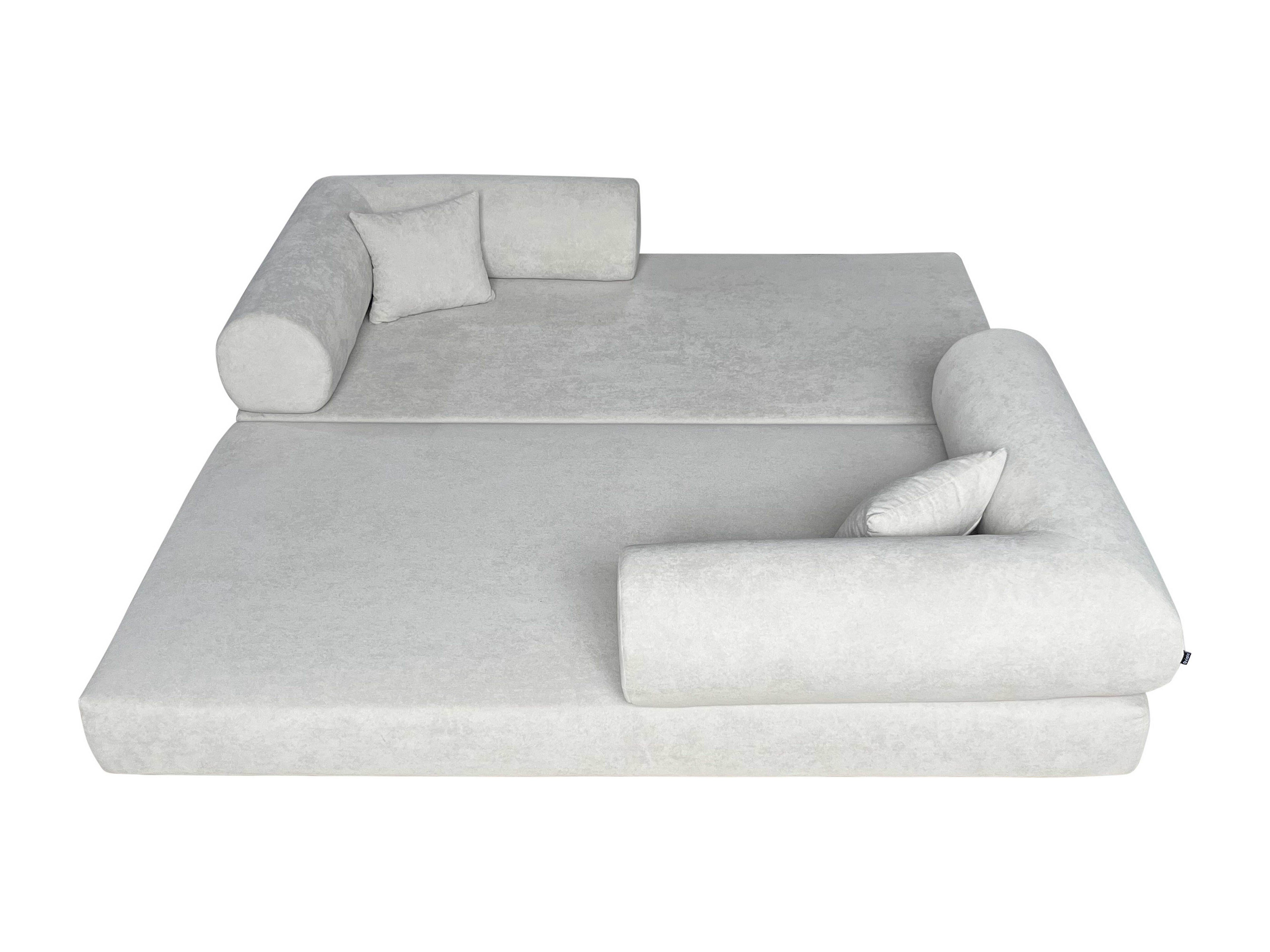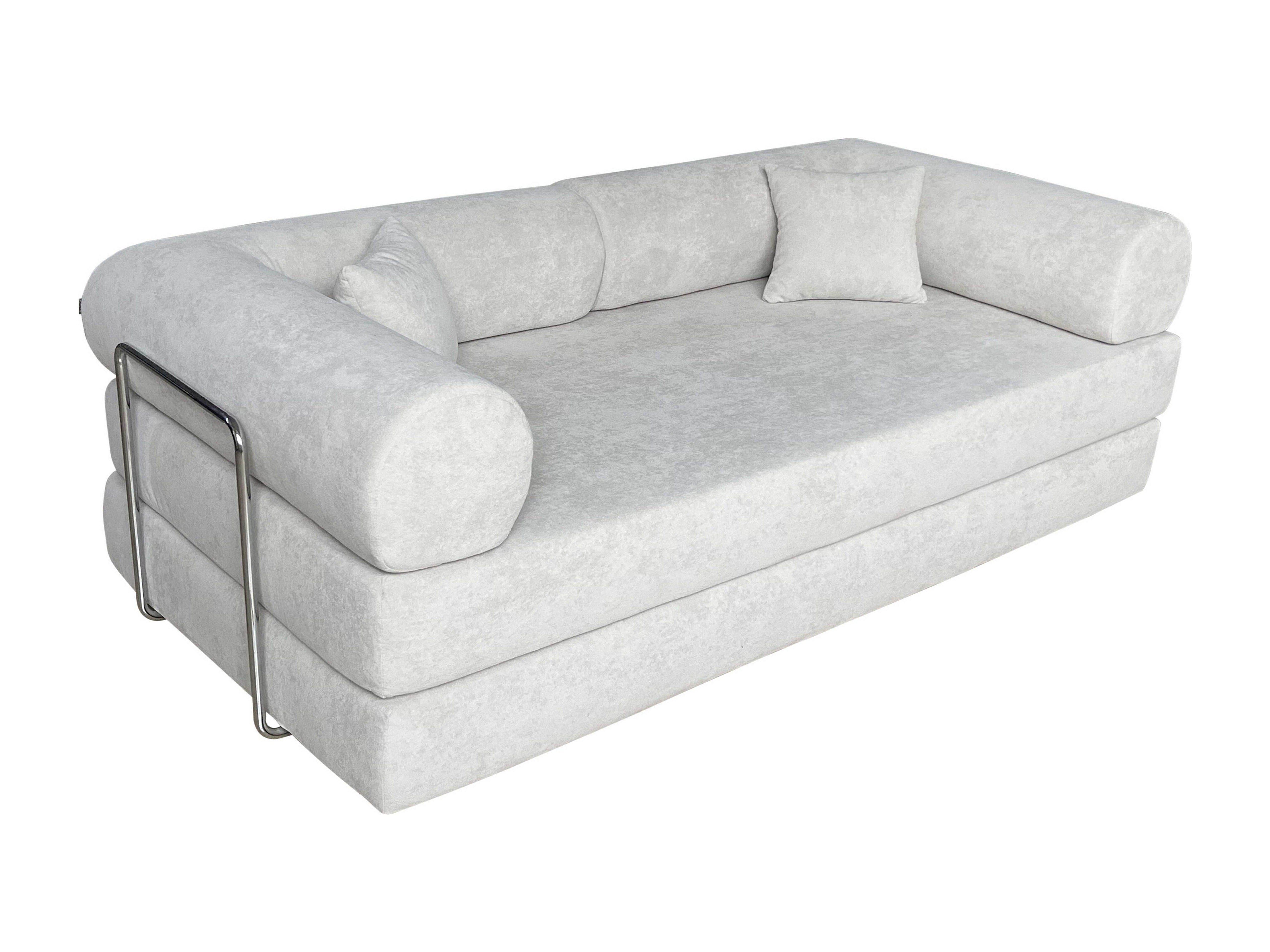 Canapé convertible 2 places en tissu avec coussins Ecru