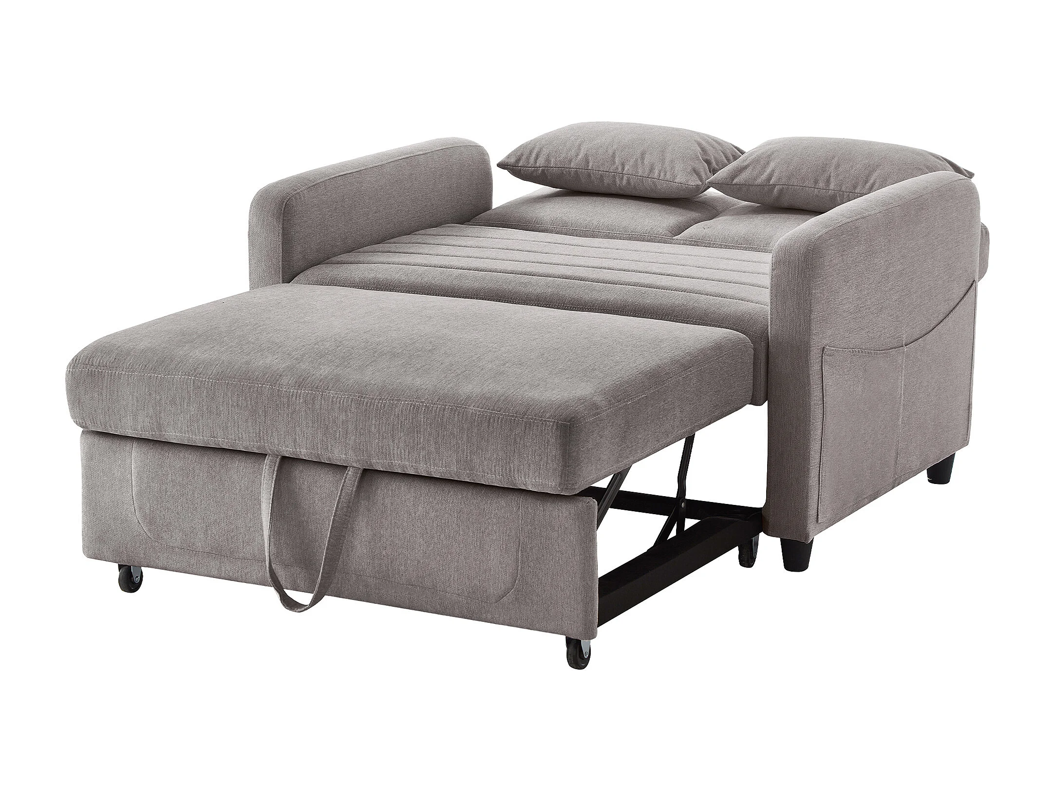 Canapé convertible 2 places gris - Dossier réglable en 3 positions - Canapé-lit en tissu coton-lin