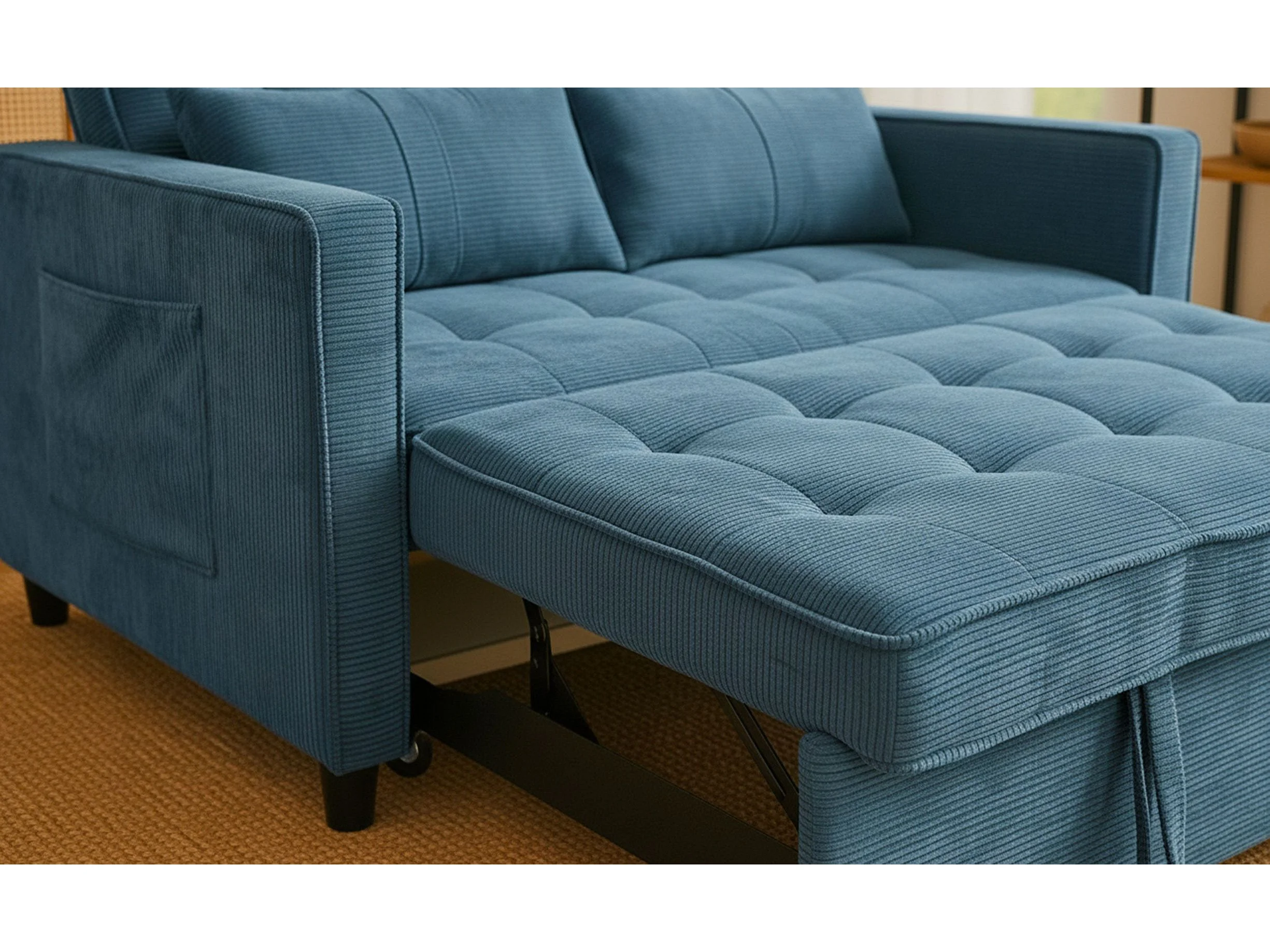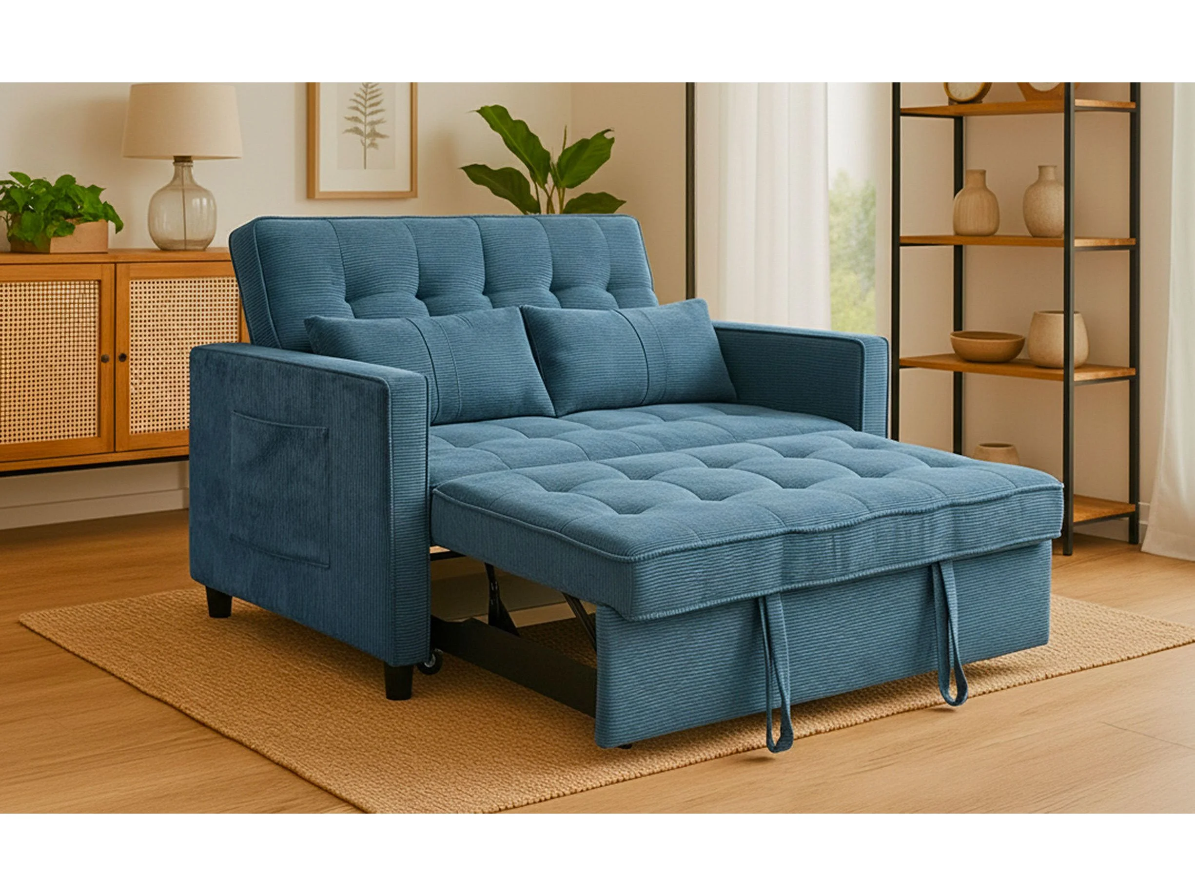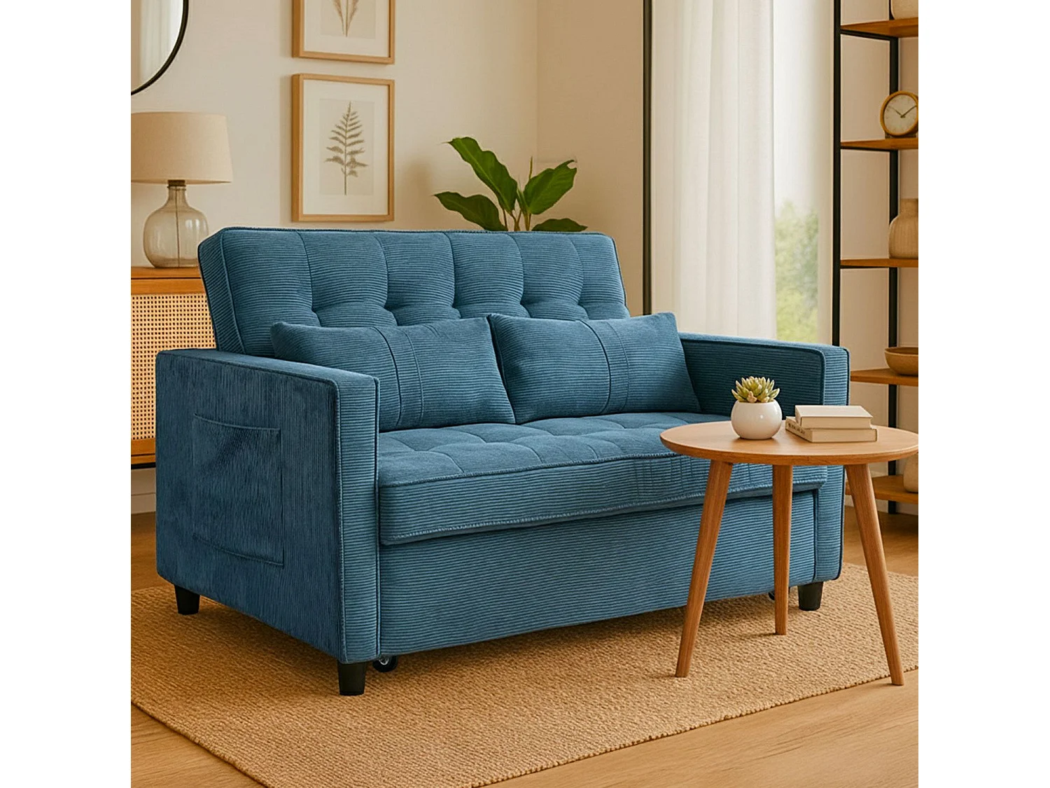 Canapé convertible 2 places Komaria Velours côtelé Bleu