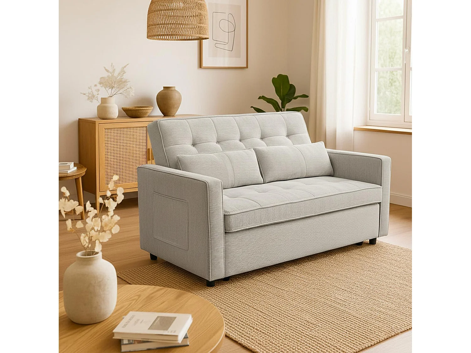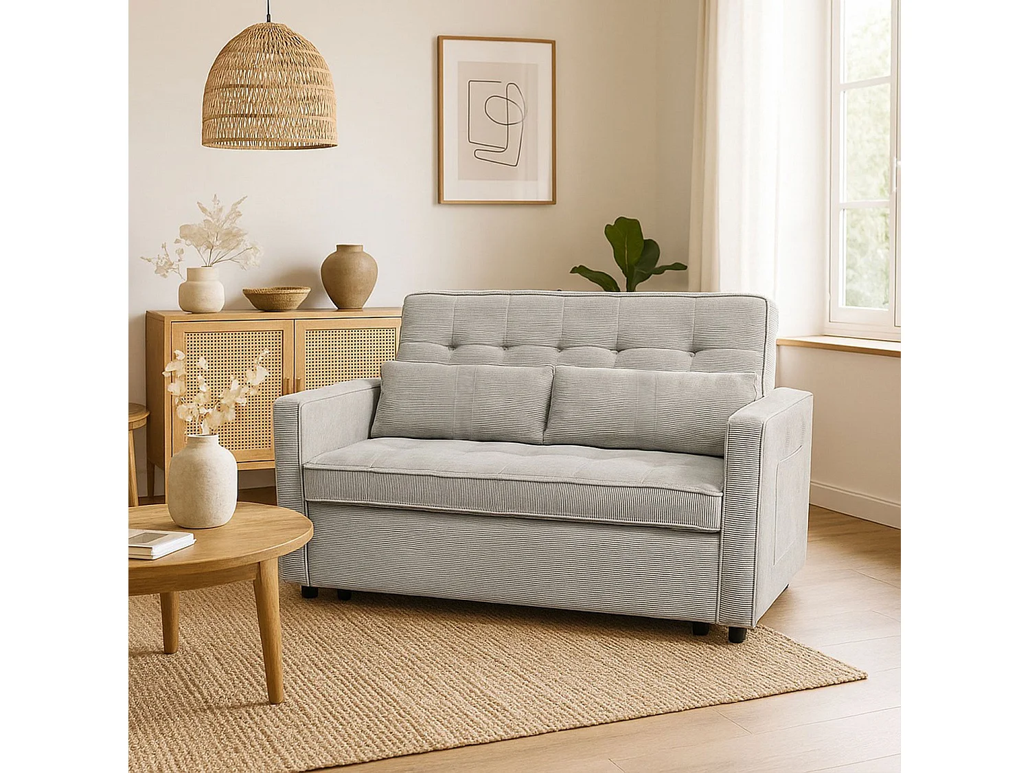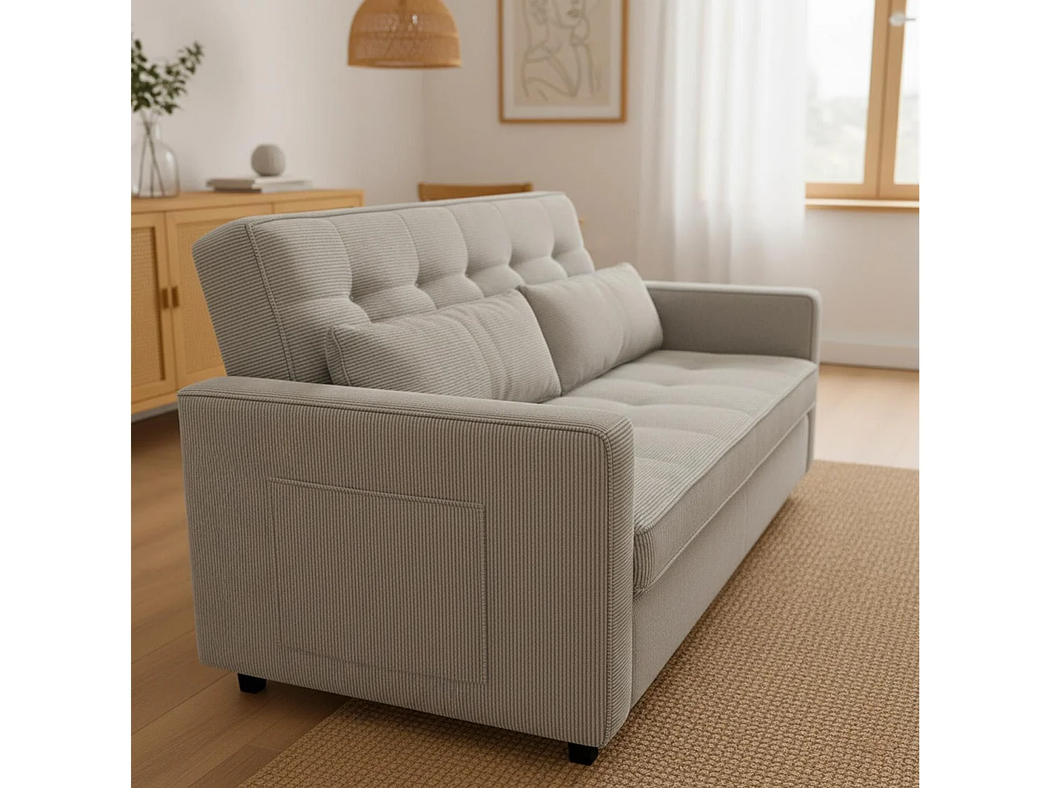 Canapé convertible 2 places Komaria Velours côtelé Taupe clair