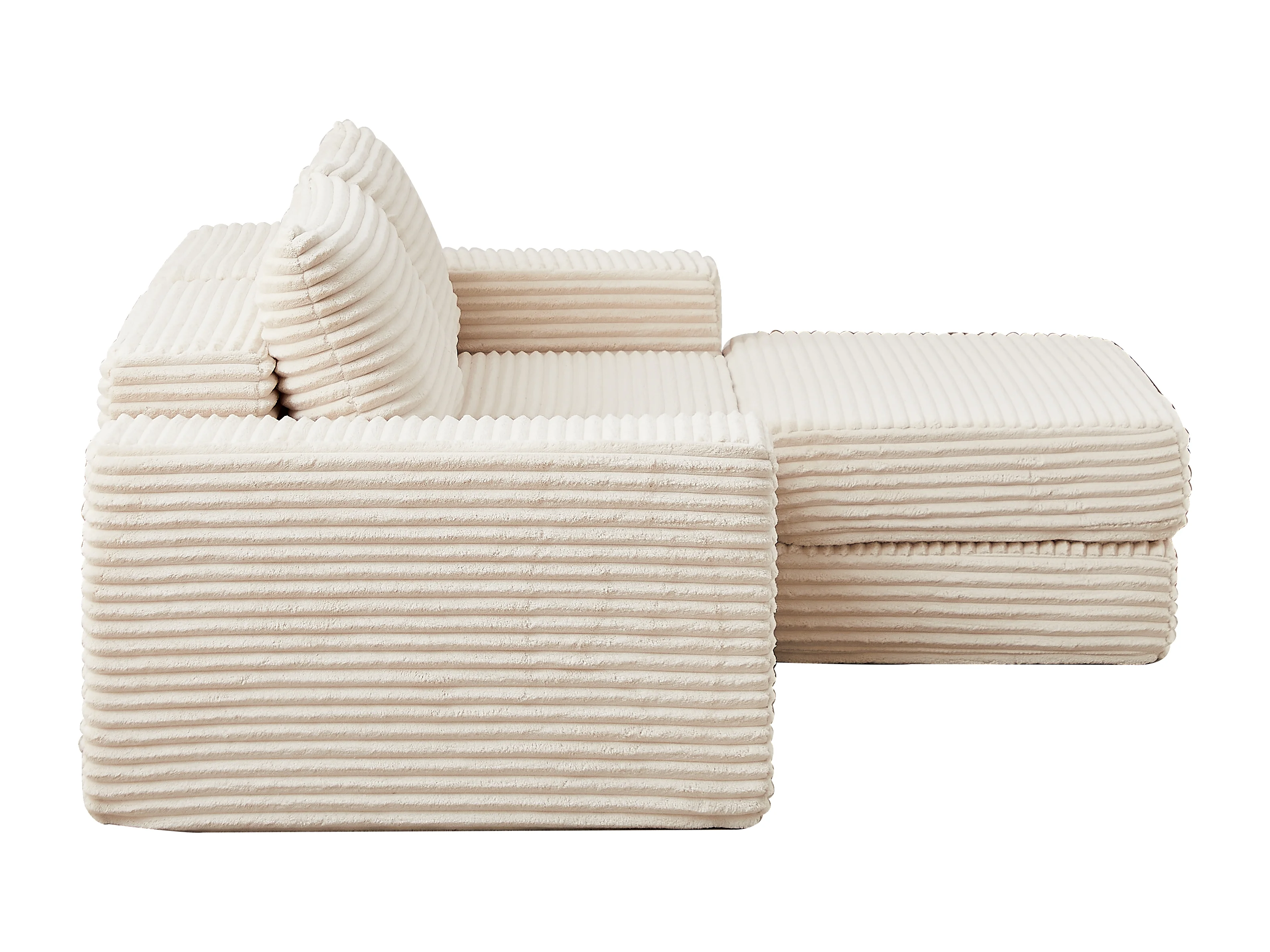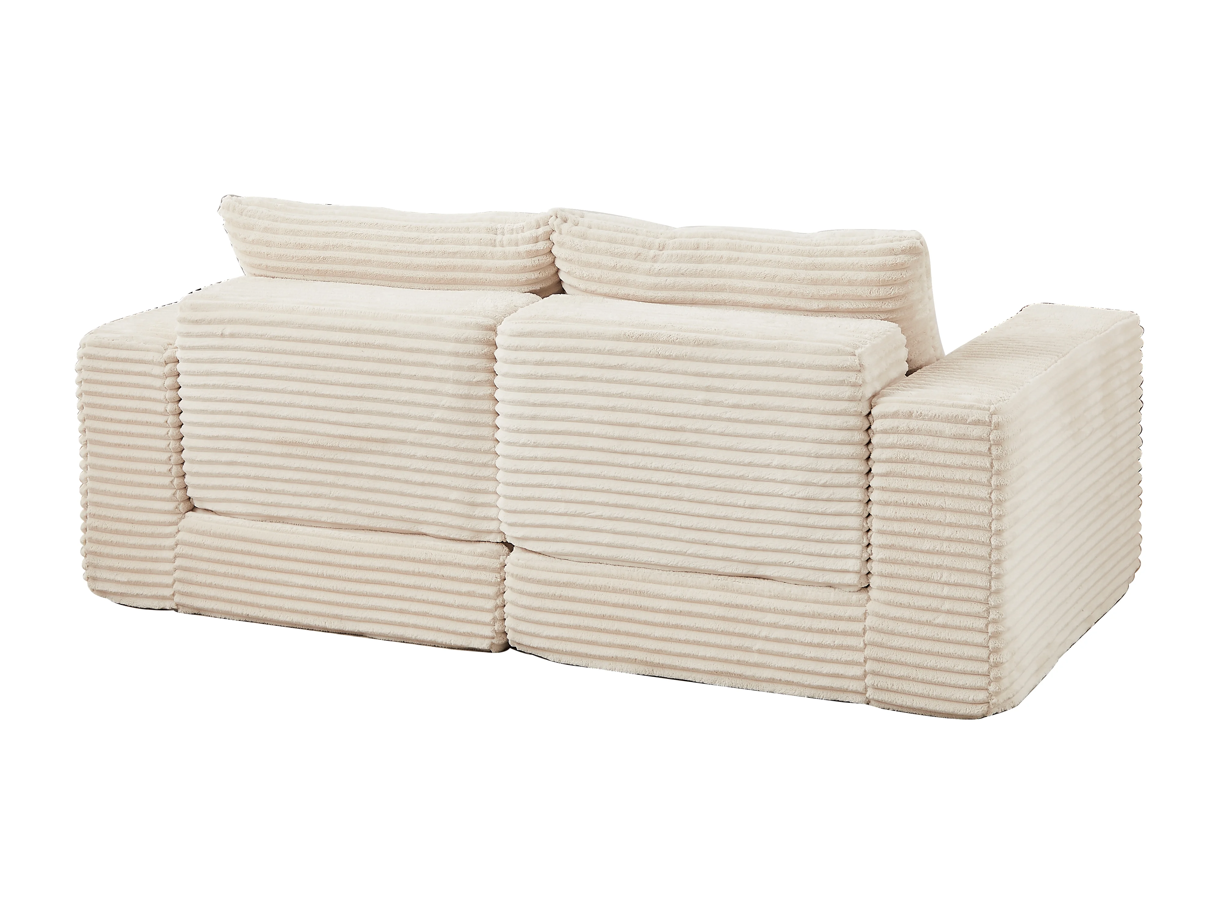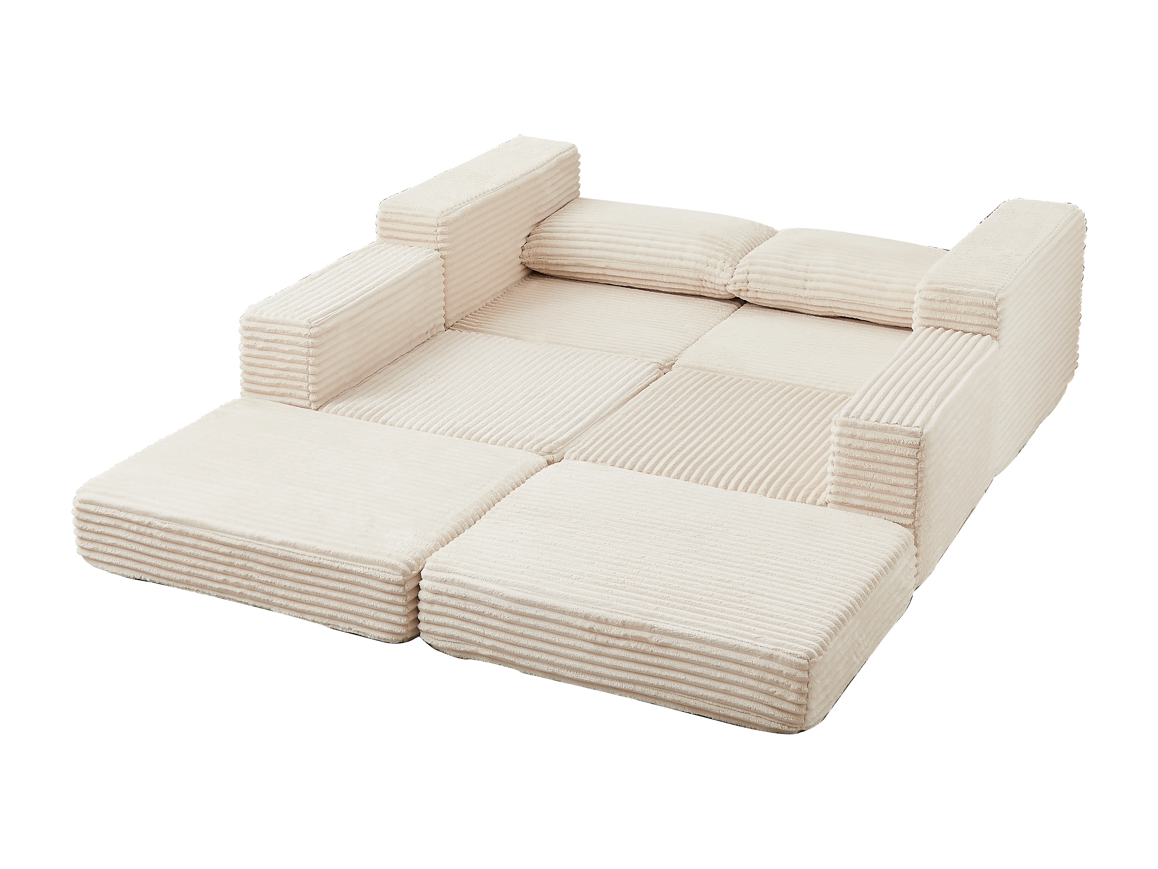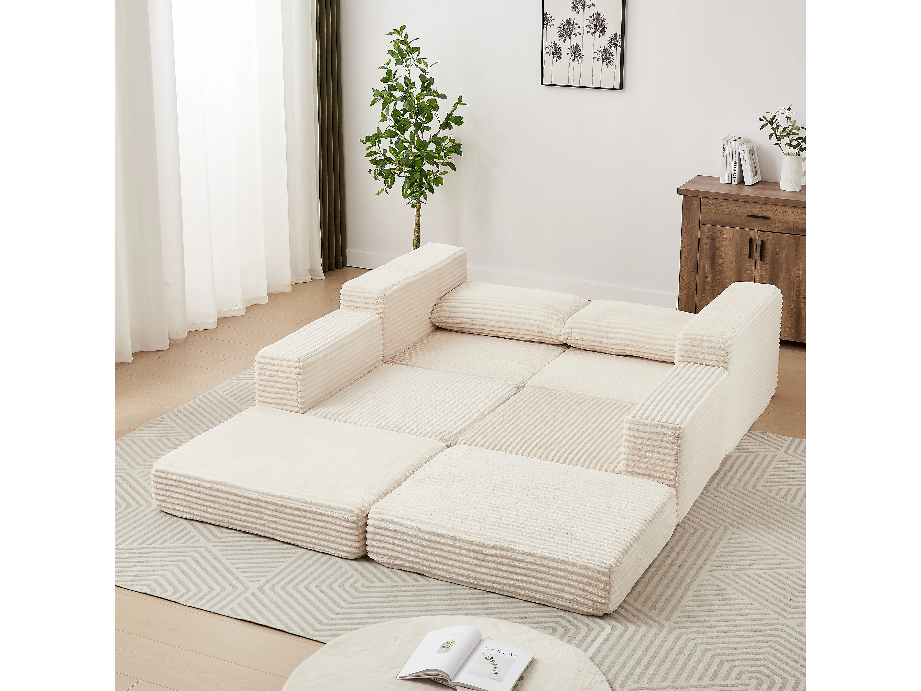 Canapé convertible 2 places modulable avec poufs amovible - Velours côtelé beige