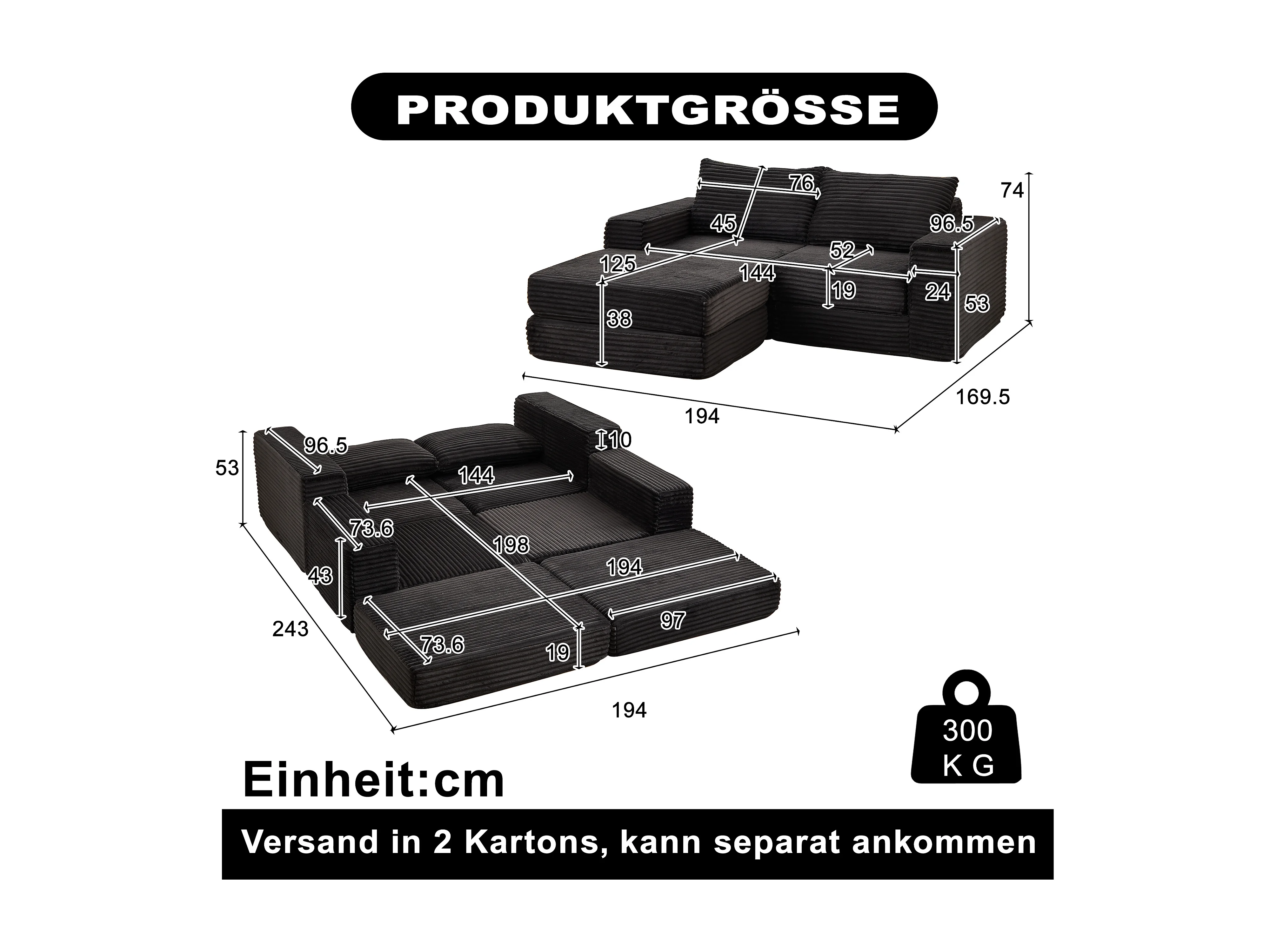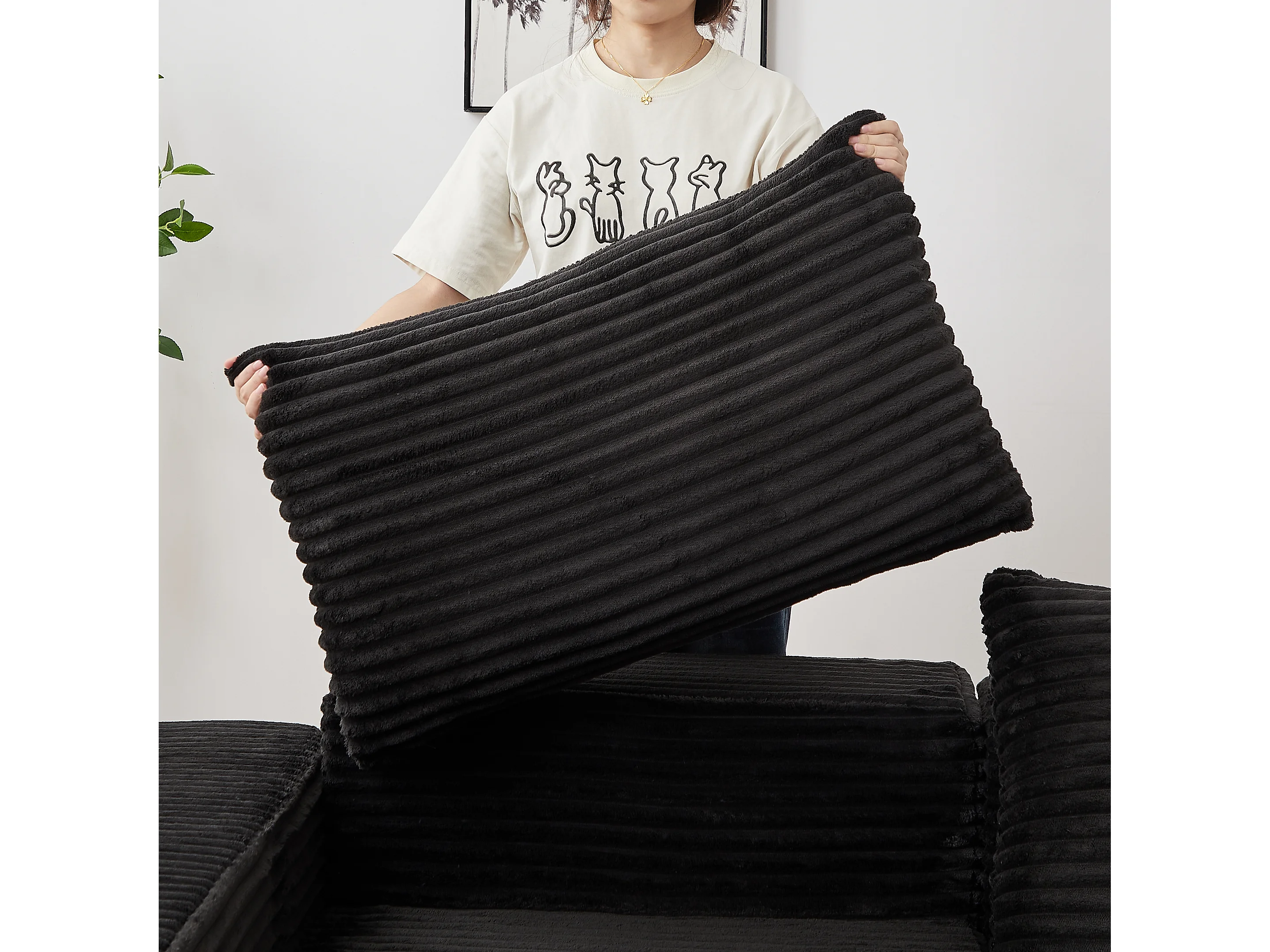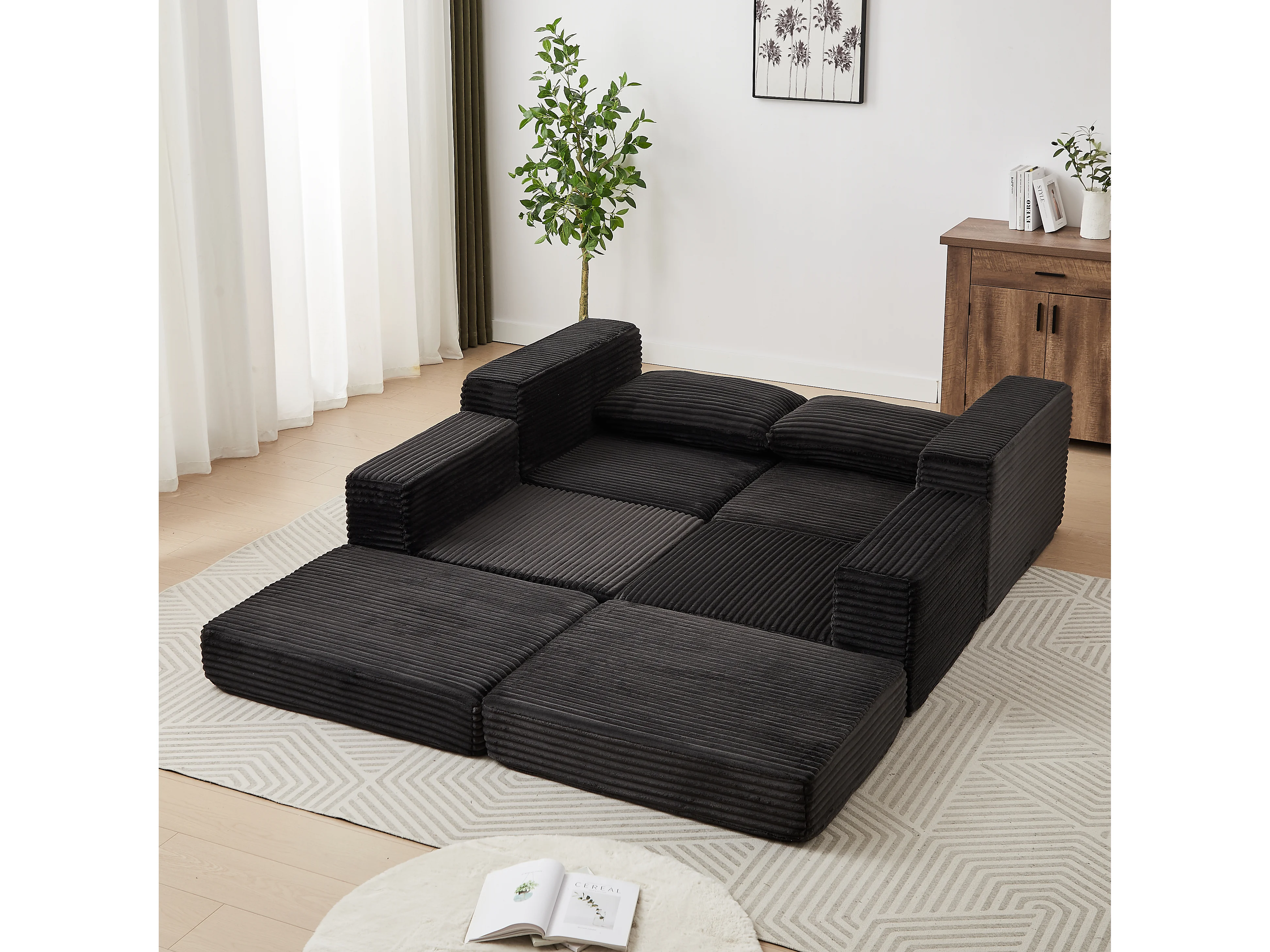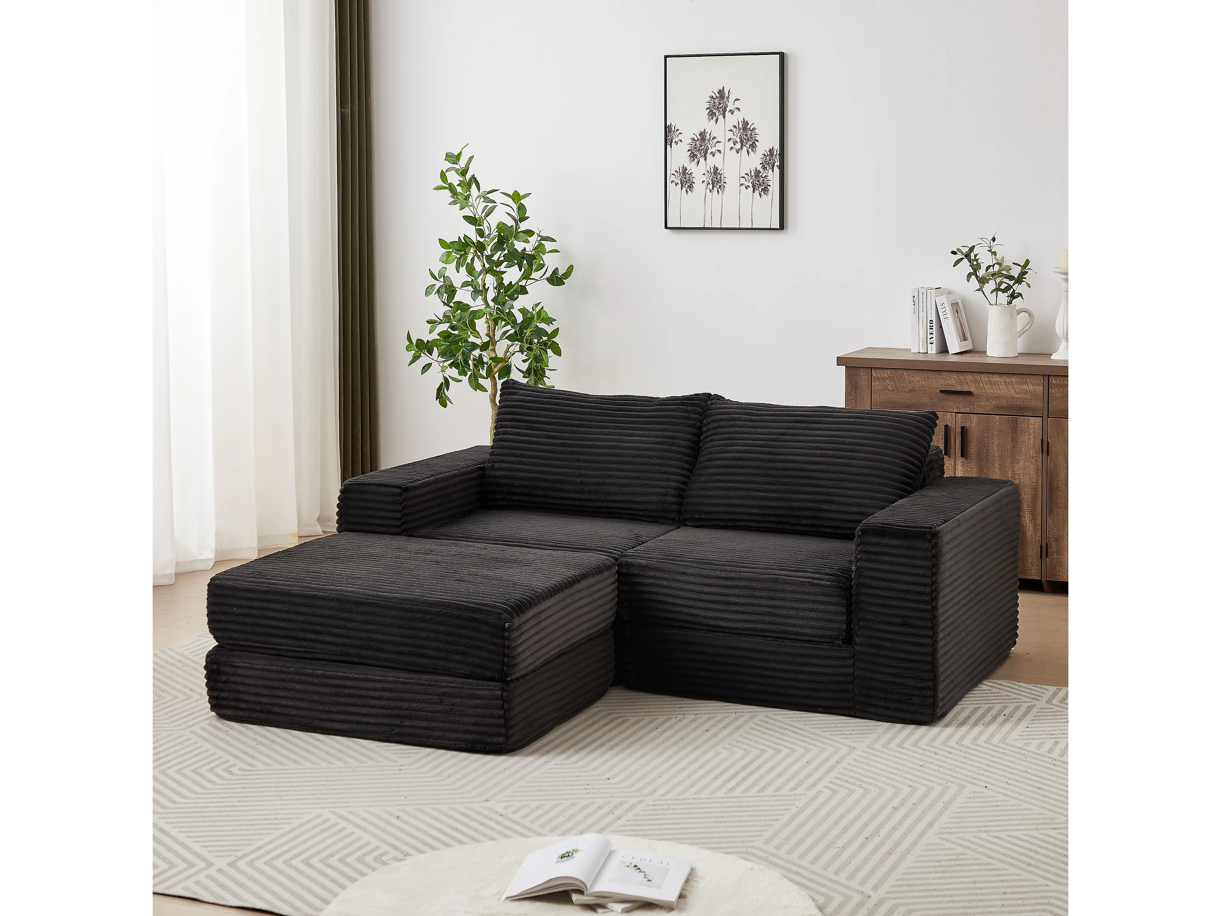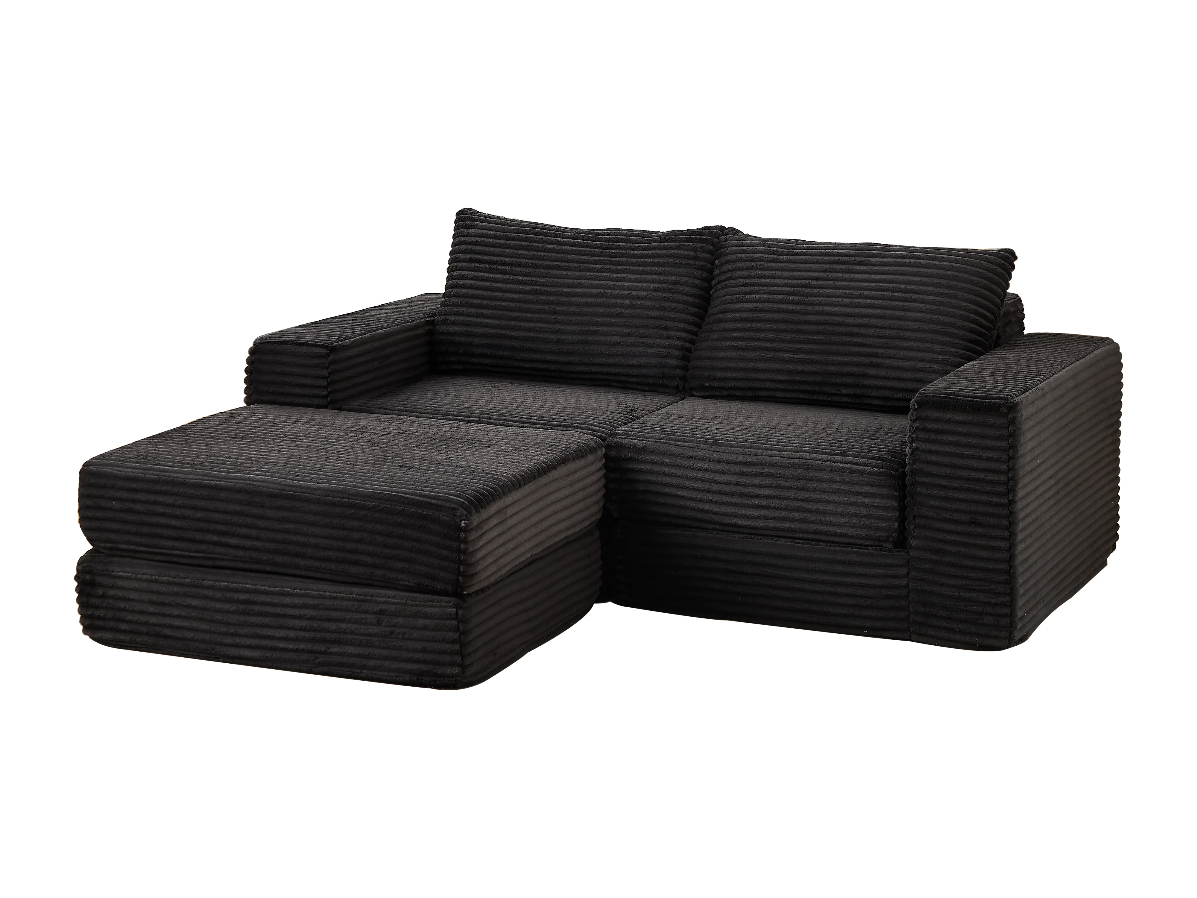 Canapé convertible 2 places modulable avec poufs amovible - Velours côtelé noir