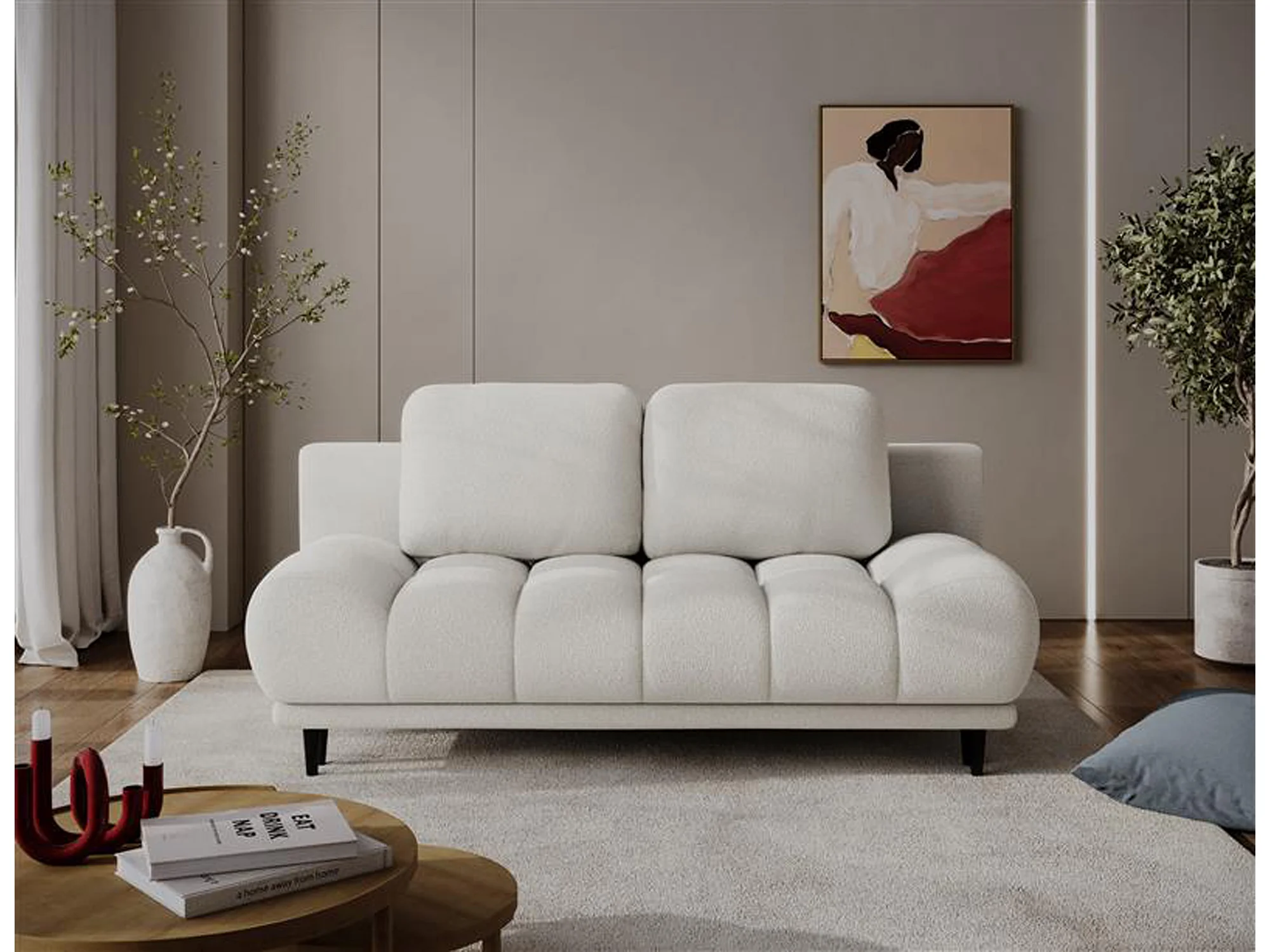 Canapé convertible 2 places NIVIO avec coffre et pieds en bois noir – 210cm-Blanc