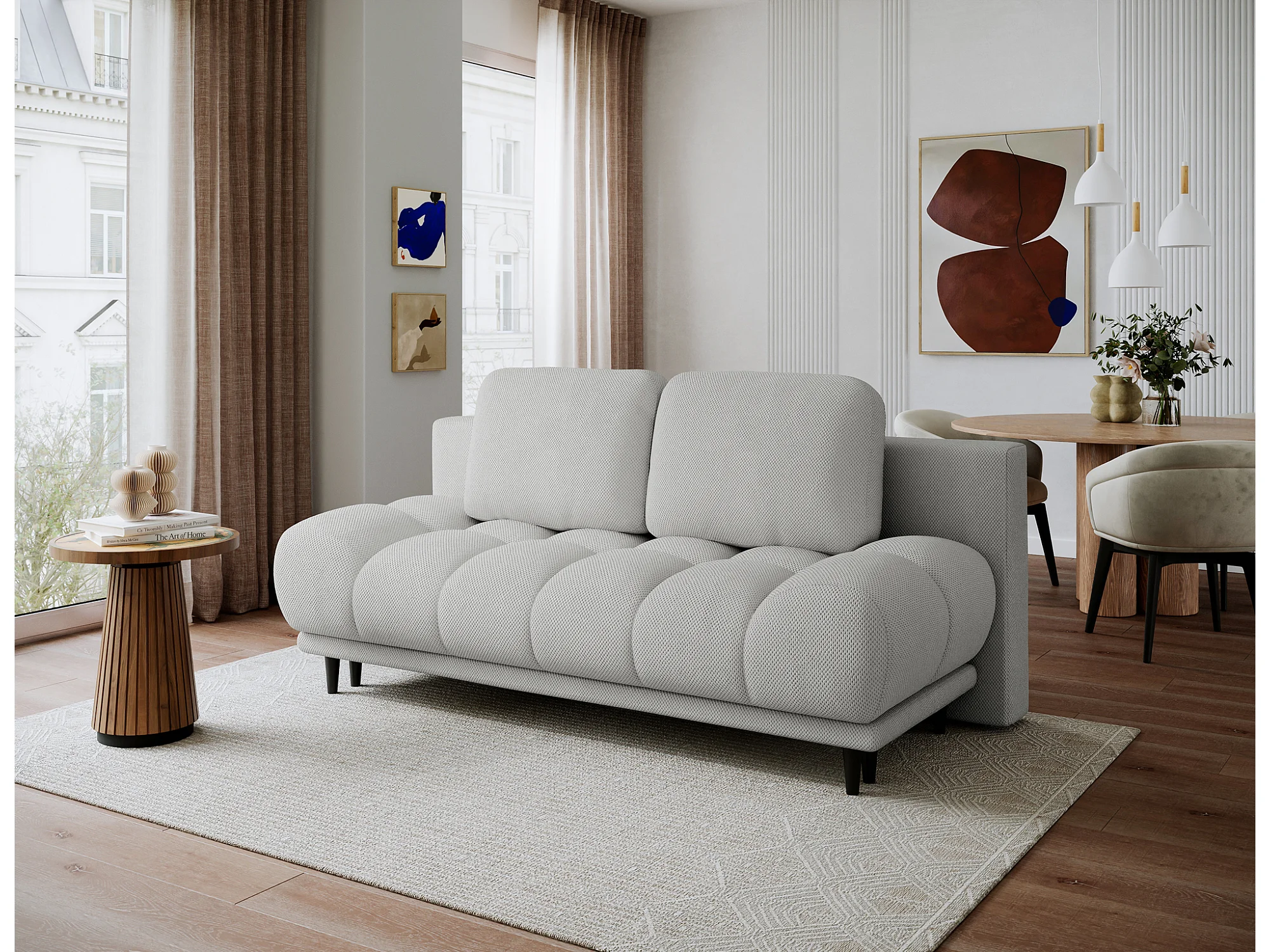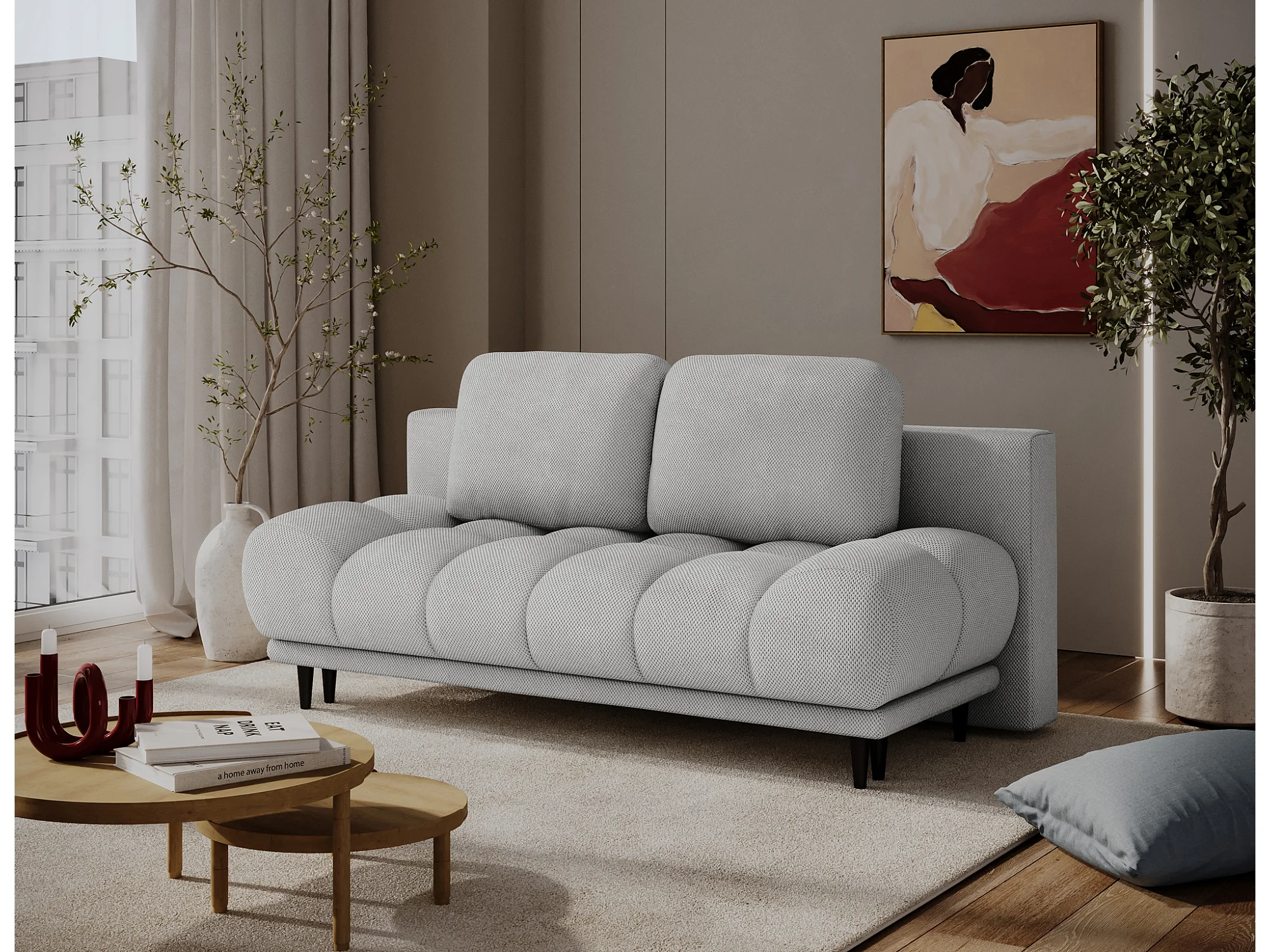 Canapé convertible 2 places NIVIO avec coffre et pieds en bois noir – 210cm-Gris clair