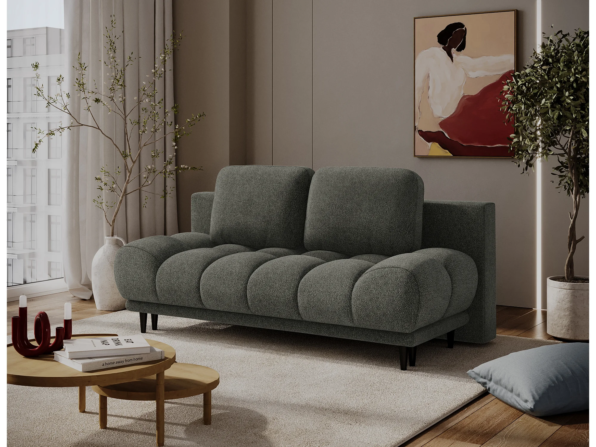 Canapé convertible 2 places NIVIO avec coffre et pieds en bois noir – 210cm-Vert