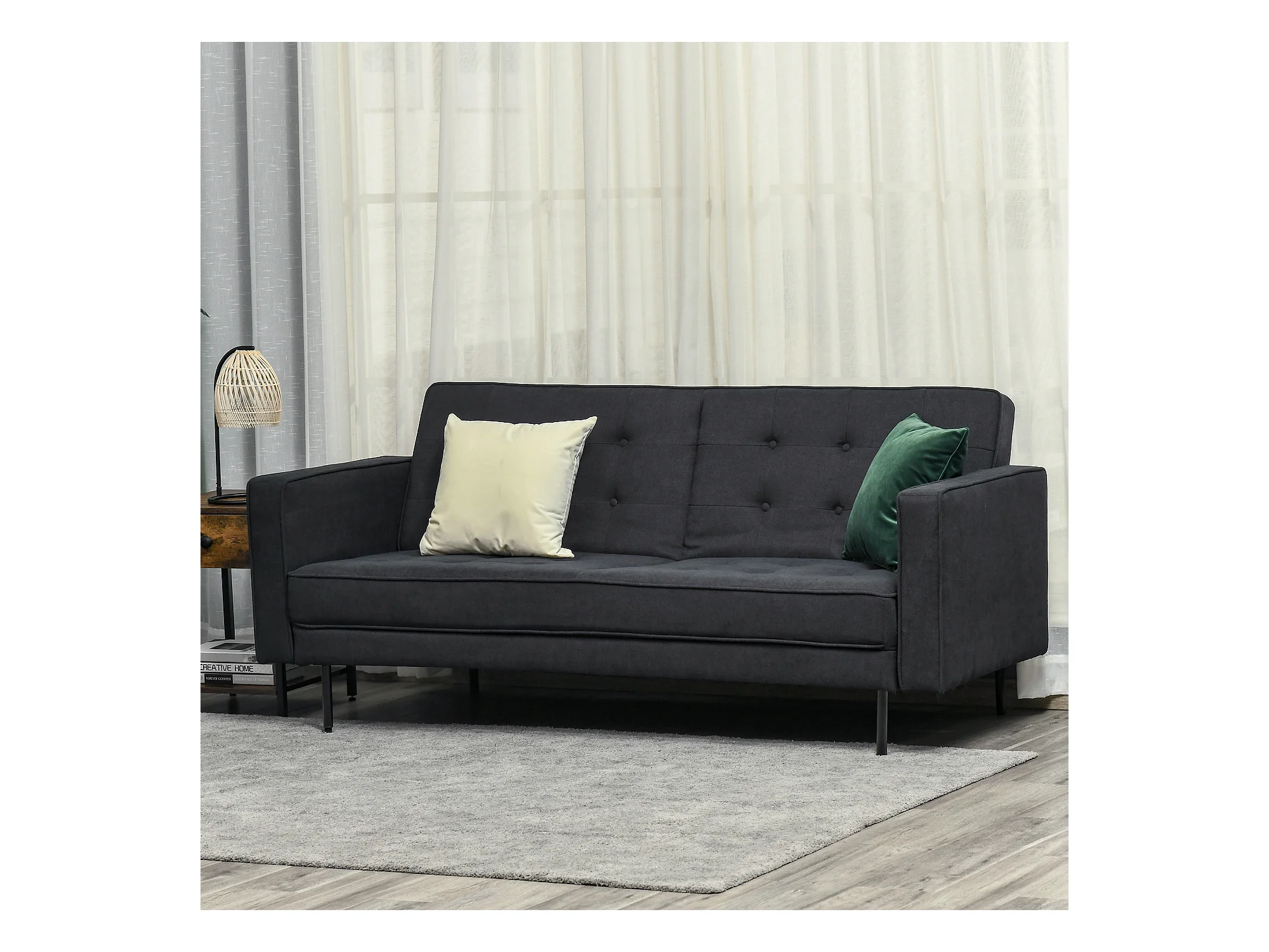 Canapé convertible 2 places style Chesterfield capitonné dossier inclinable 3 positions tissu gris foncé
