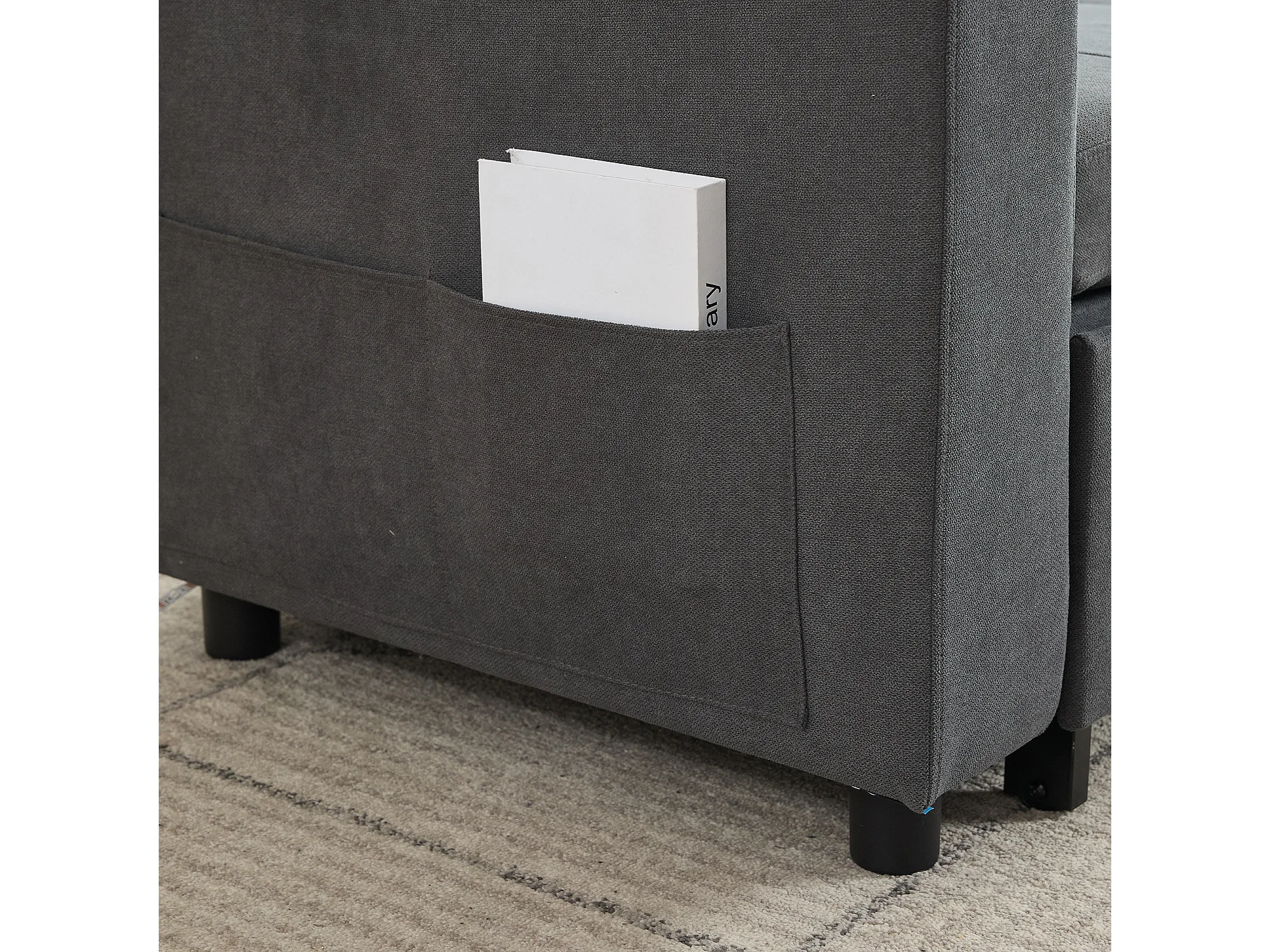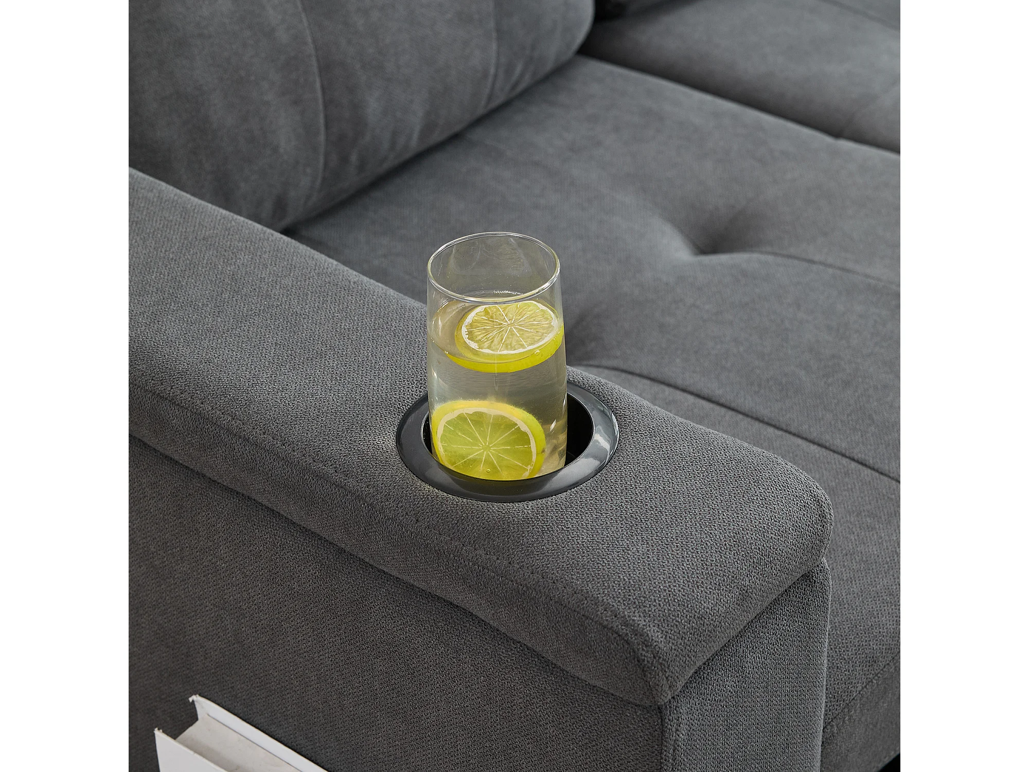 Canapé convertible 3 places - 208 x 146 x 89.5 cm - avec rangement intégré + Leds - Tissu - gris