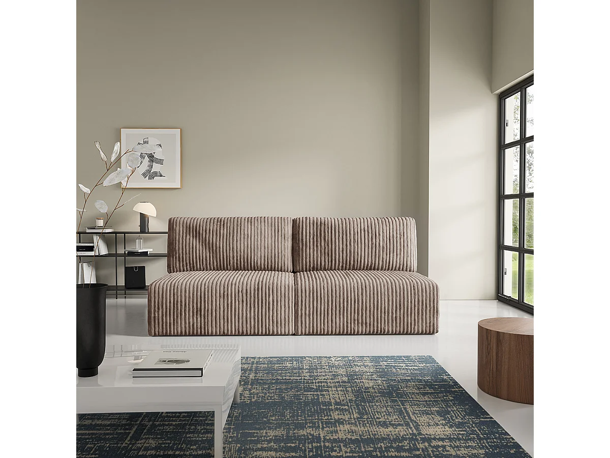 Canapé convertible 3 places avec coffre Angela Marron clair