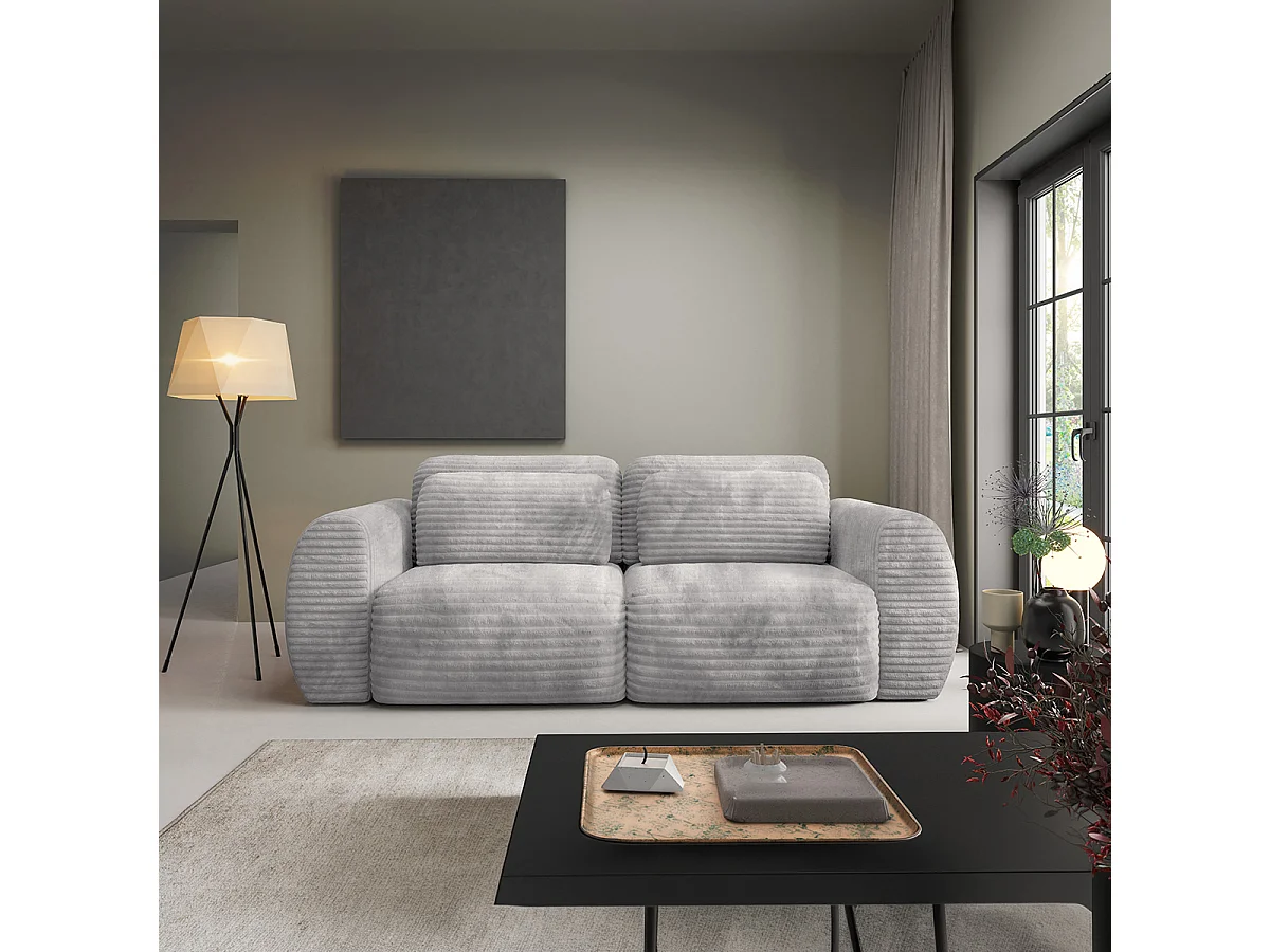 Canapé convertible 3 places avec coffre Camilla Gris clair