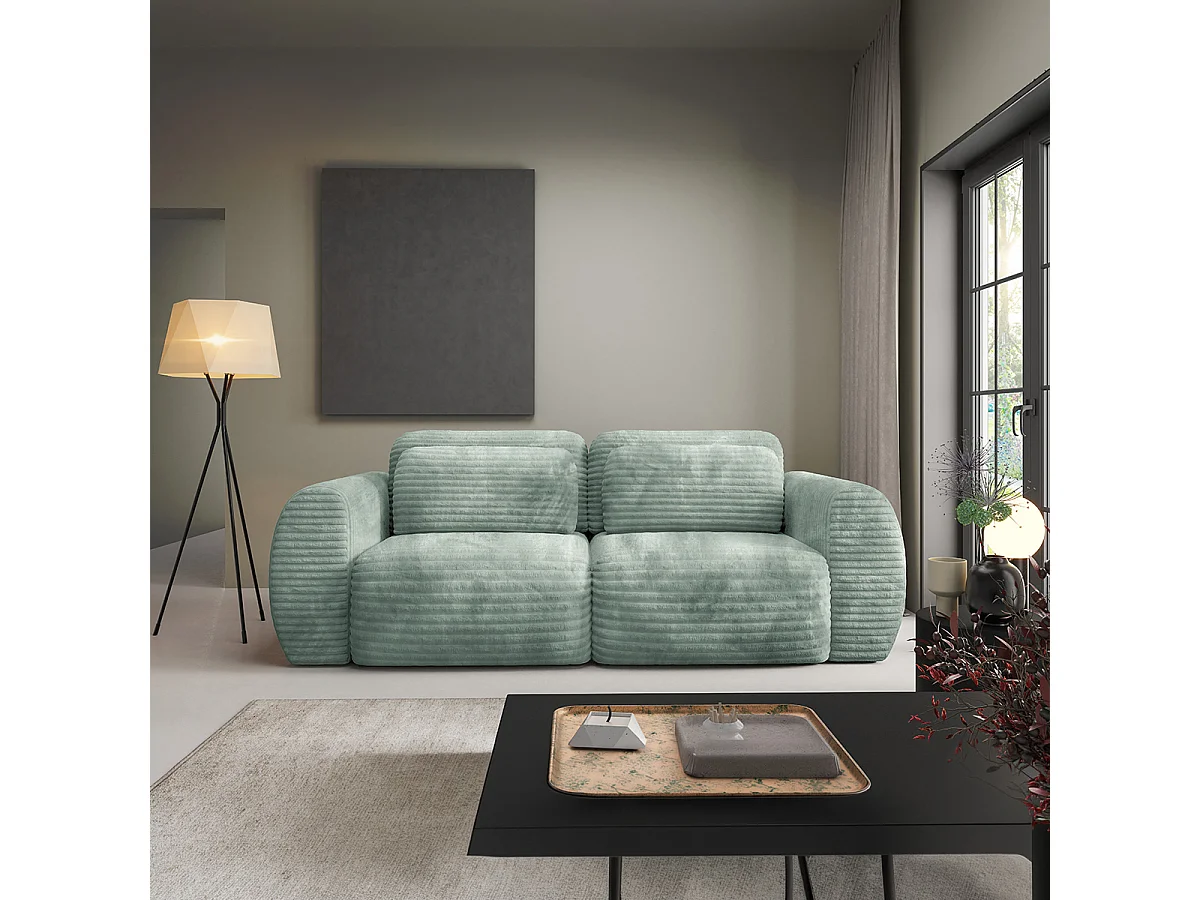 Canapé convertible 3 places avec coffre Camilla Vert d'eau