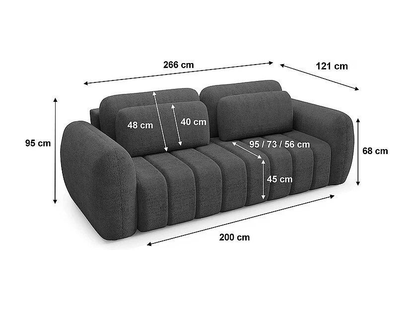 Canapé convertible 3 places avec coffre Cesar Gris foncé