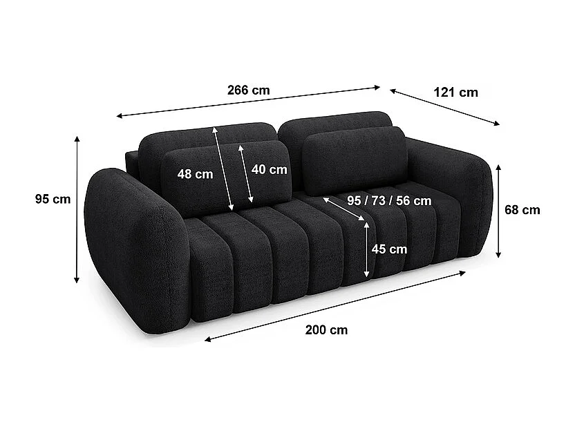 Canapé convertible 3 places avec coffre Cesar Noir