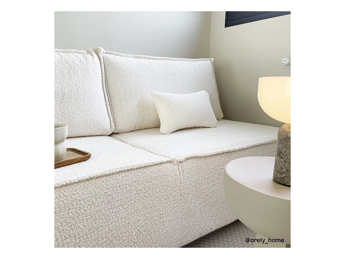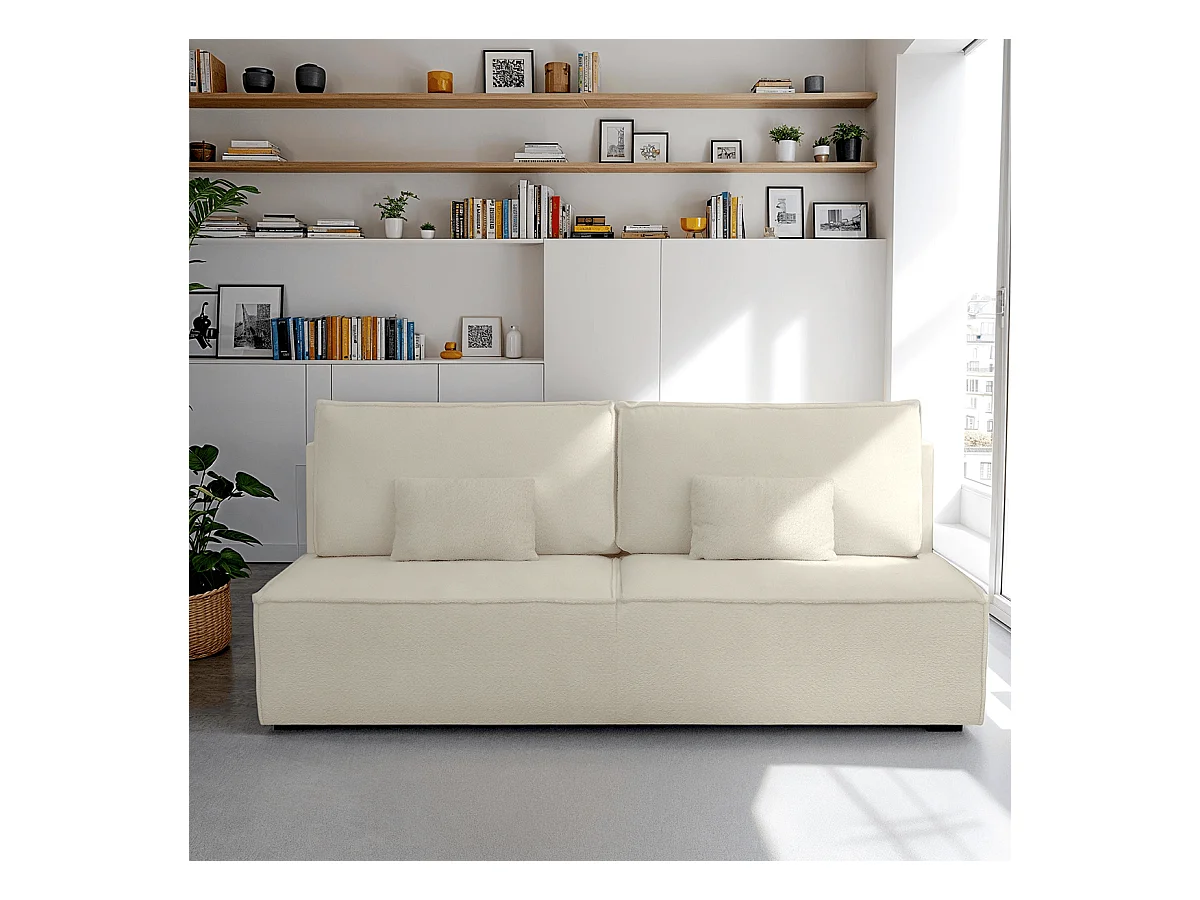 Canapé convertible 3 places avec coffre de rangement en tissu bouclé beige - Milla