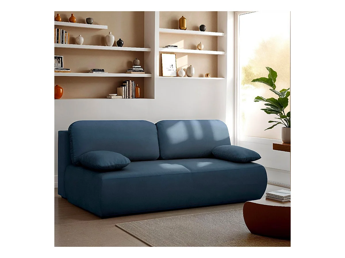 Canapé convertible 3 places avec coffre de rangement en velours bleu nuit - Gemma