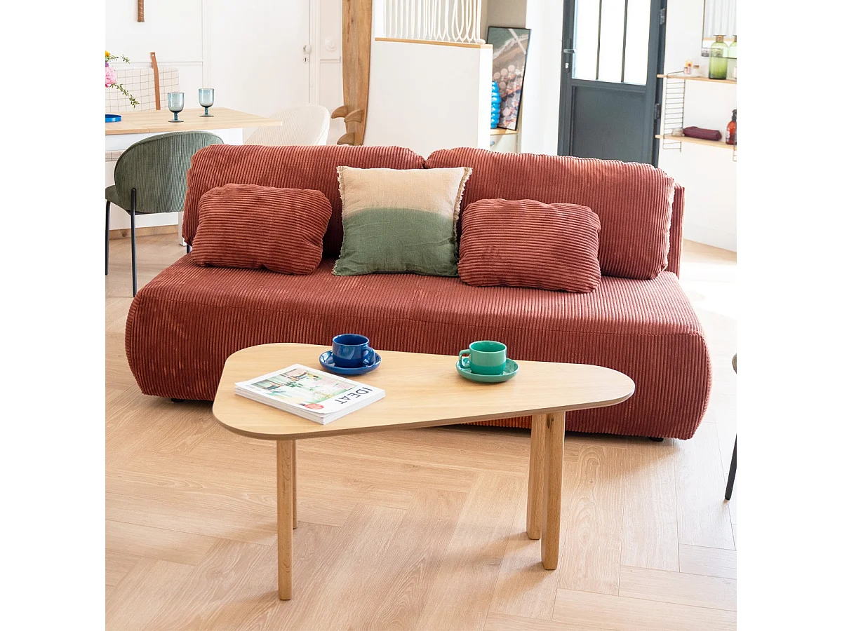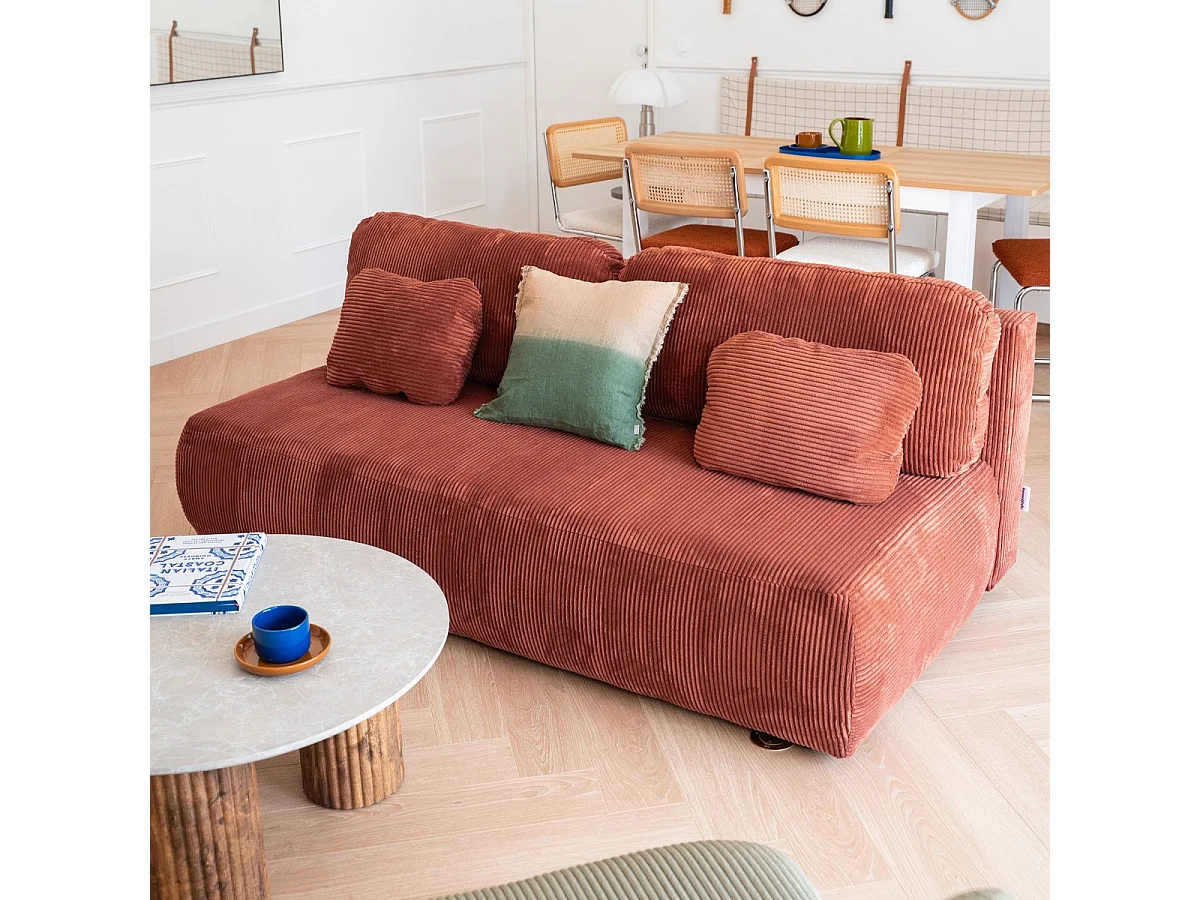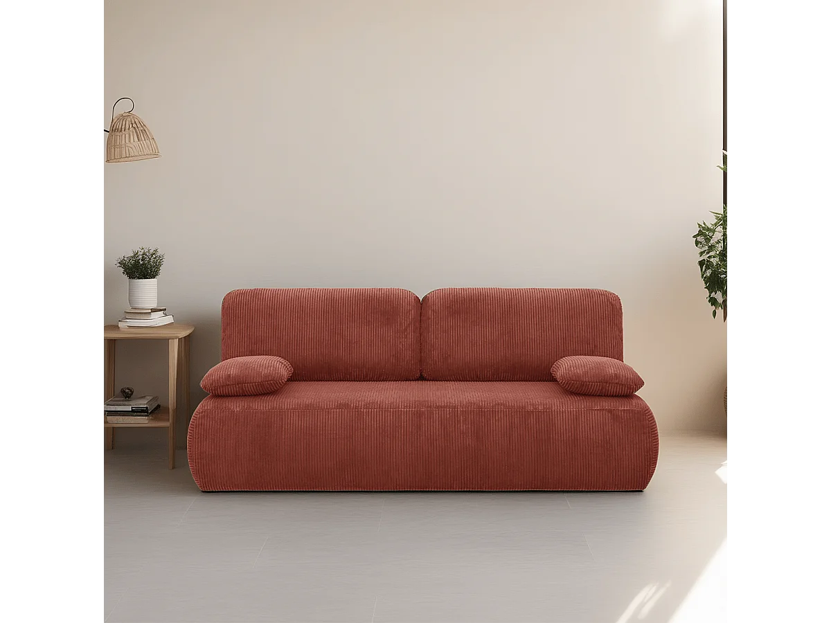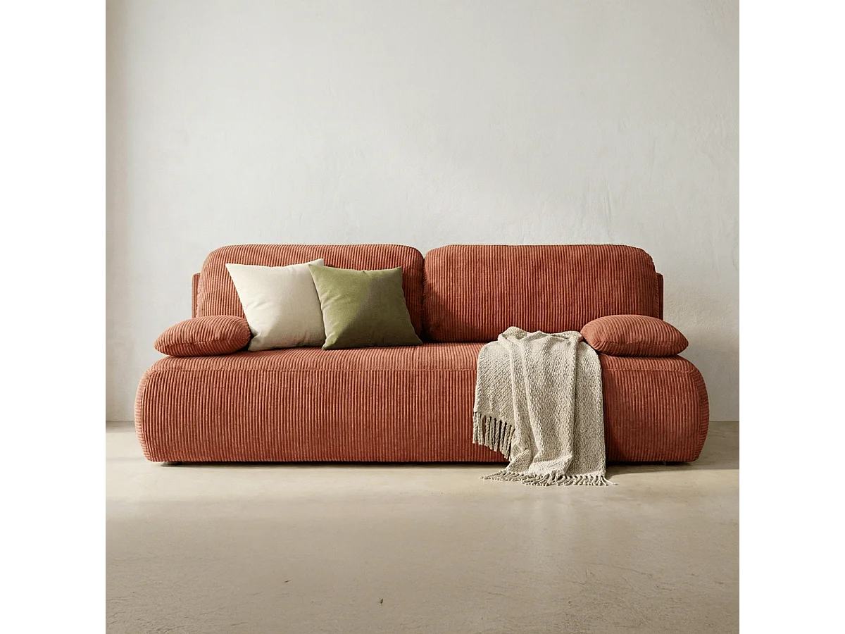 Canapé convertible 3 places avec coffre de rangement en velours côtelé rouille - Gemma