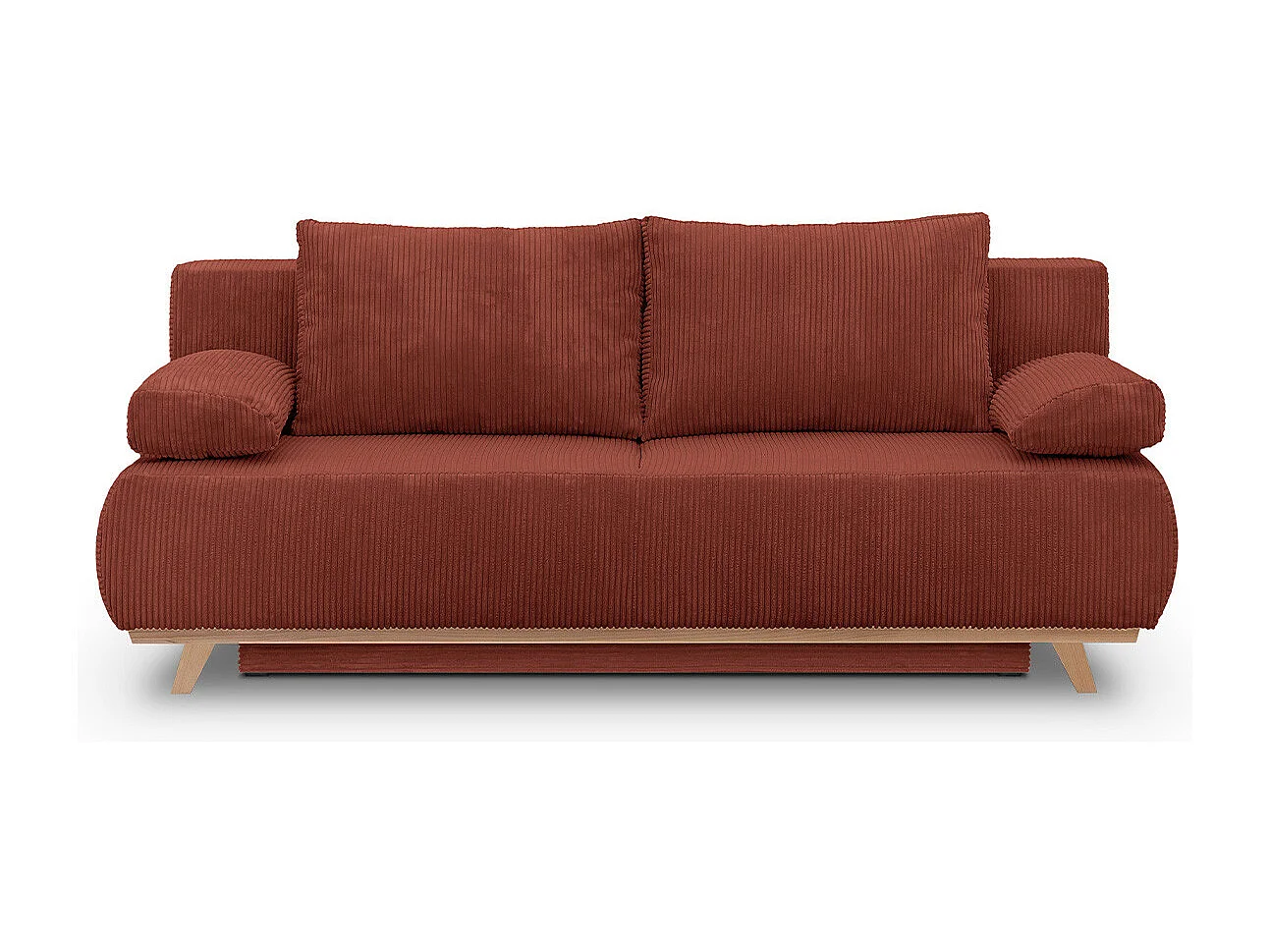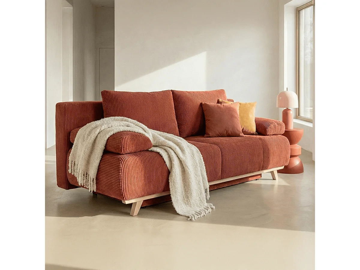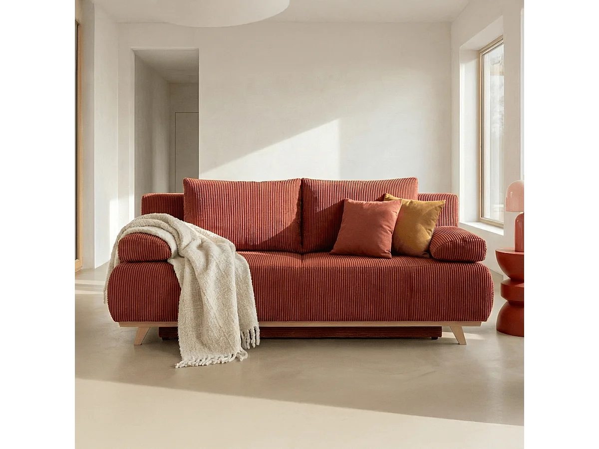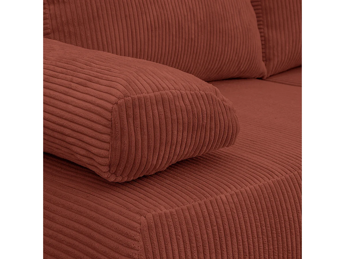 Canapé convertible 3 places avec coffre de rangement en velours côtelé rouille - Laria